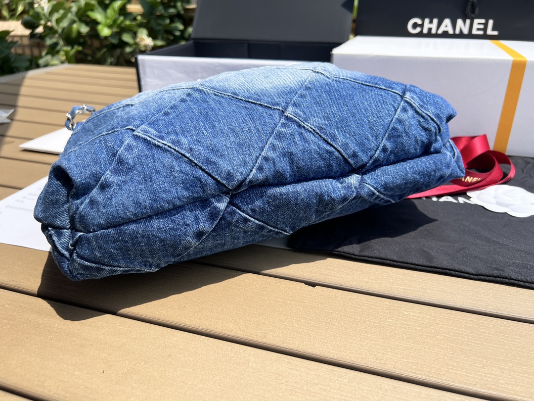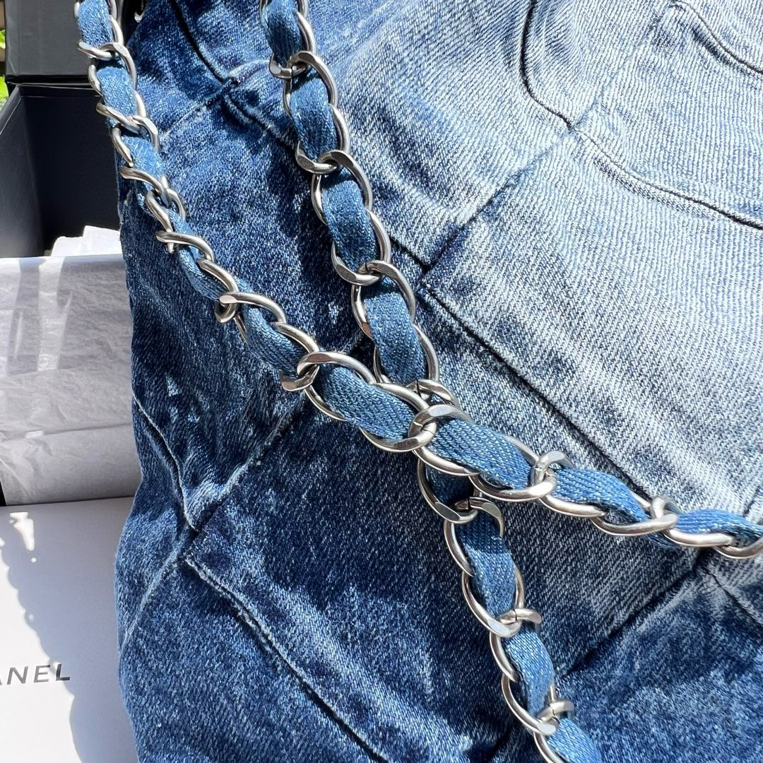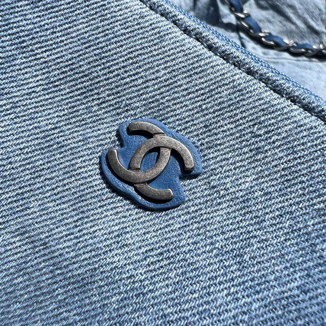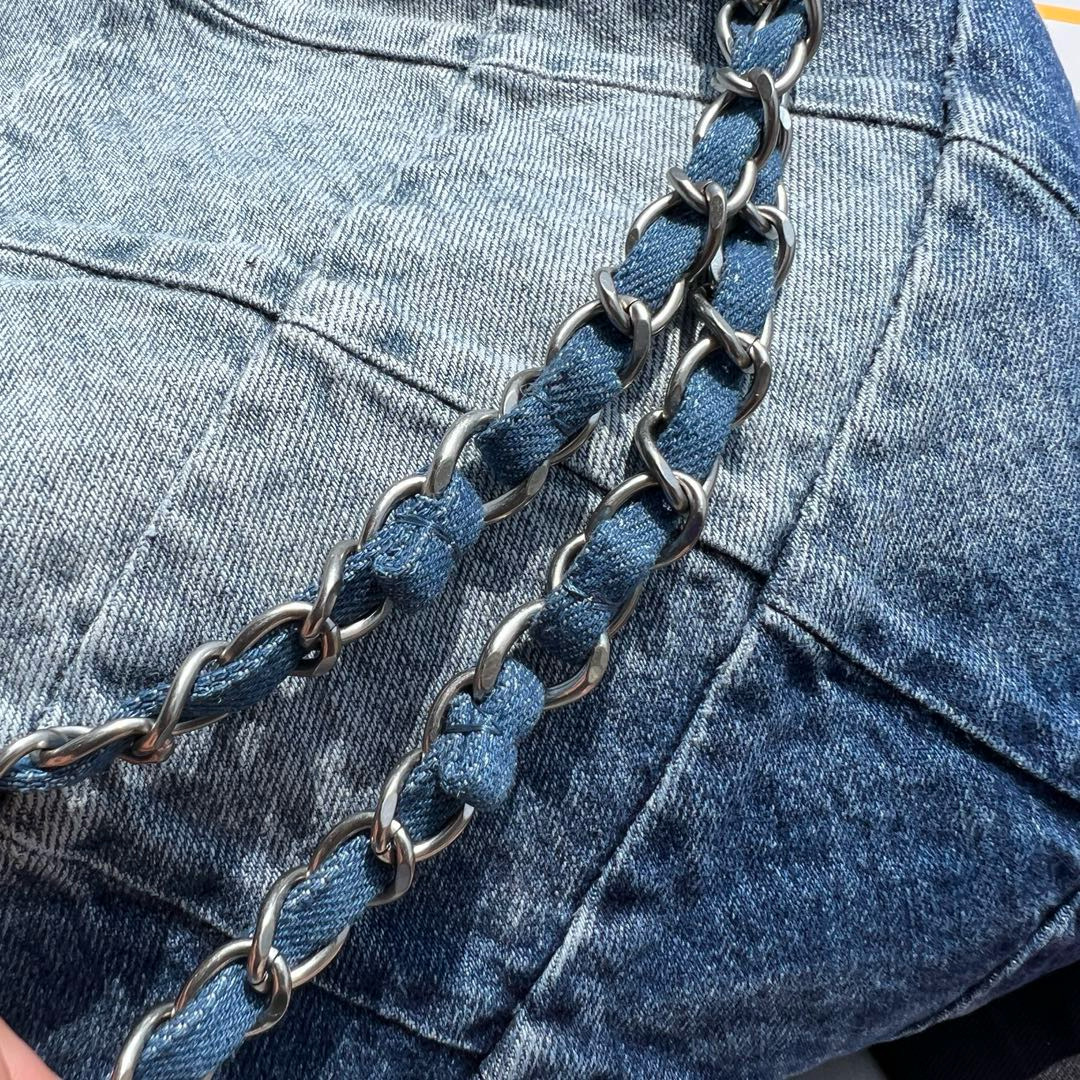 NIGO Chanel Women's Small Checkered Large Capacity Chain Denim Shoulder Bag Washed Denim Blue Medium Tote Bag Bags AS3260-B10439-NM981 #nigo81555