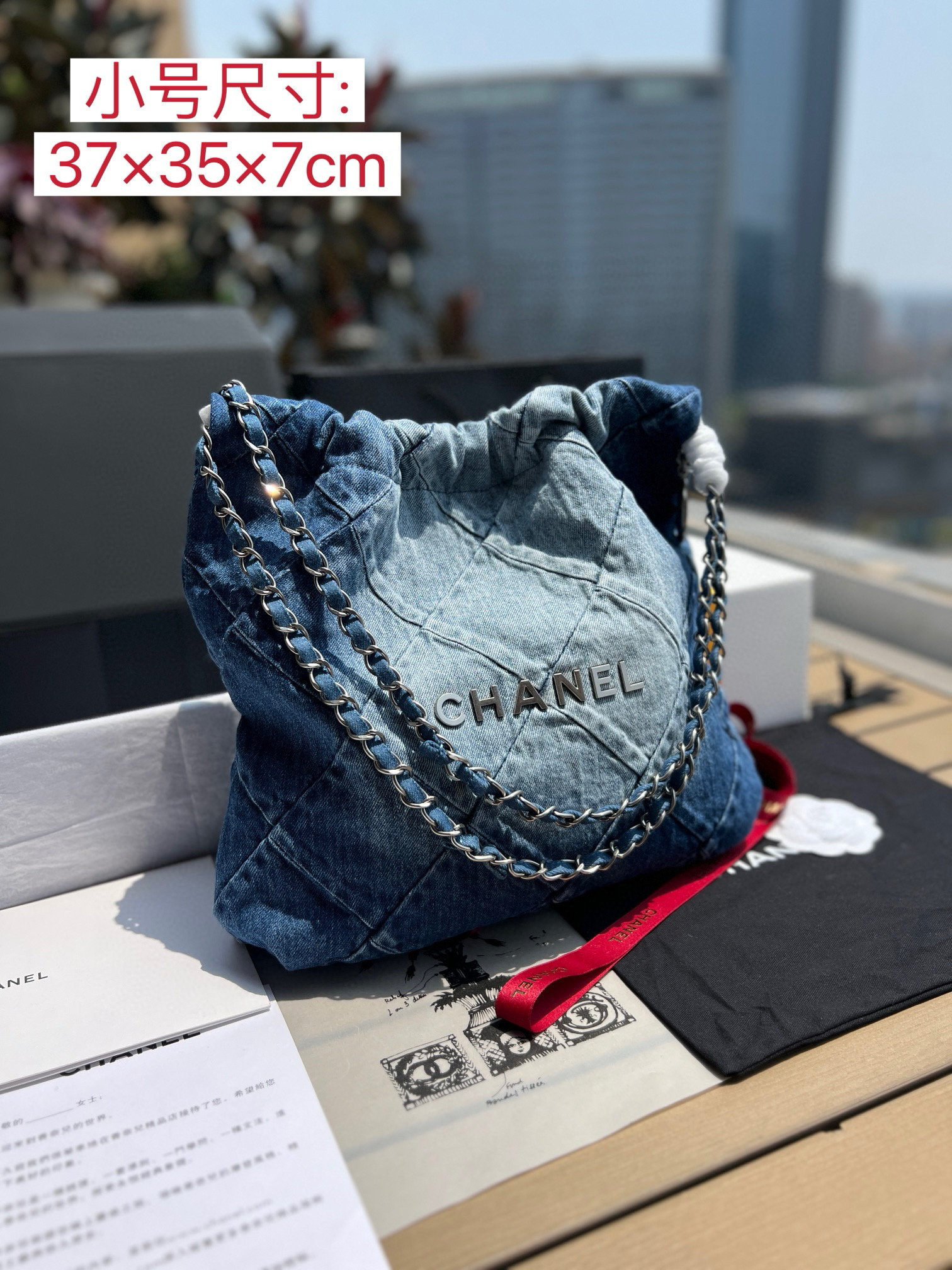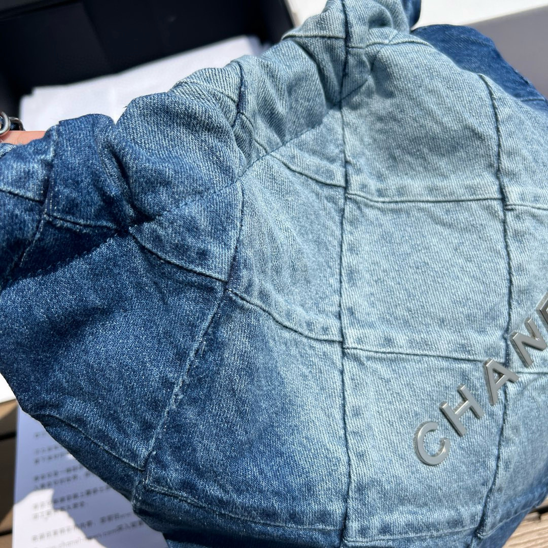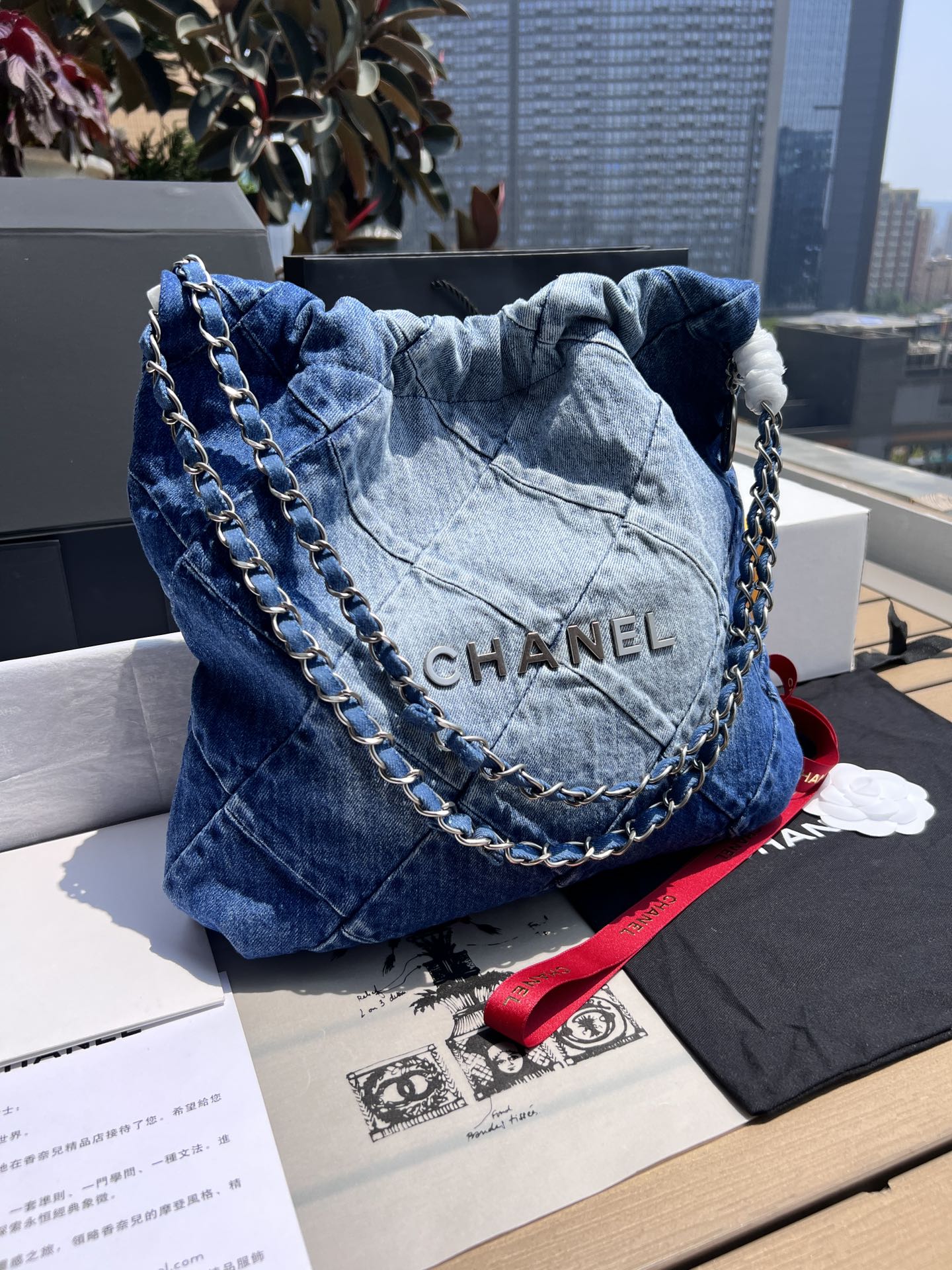NIGO Chanel Women's Small Checkered Large Capacity Chain Denim Shoulder Bag Washed Denim Blue Medium Tote Bag Bags AS3260-B10439-NM981 #nigo81555