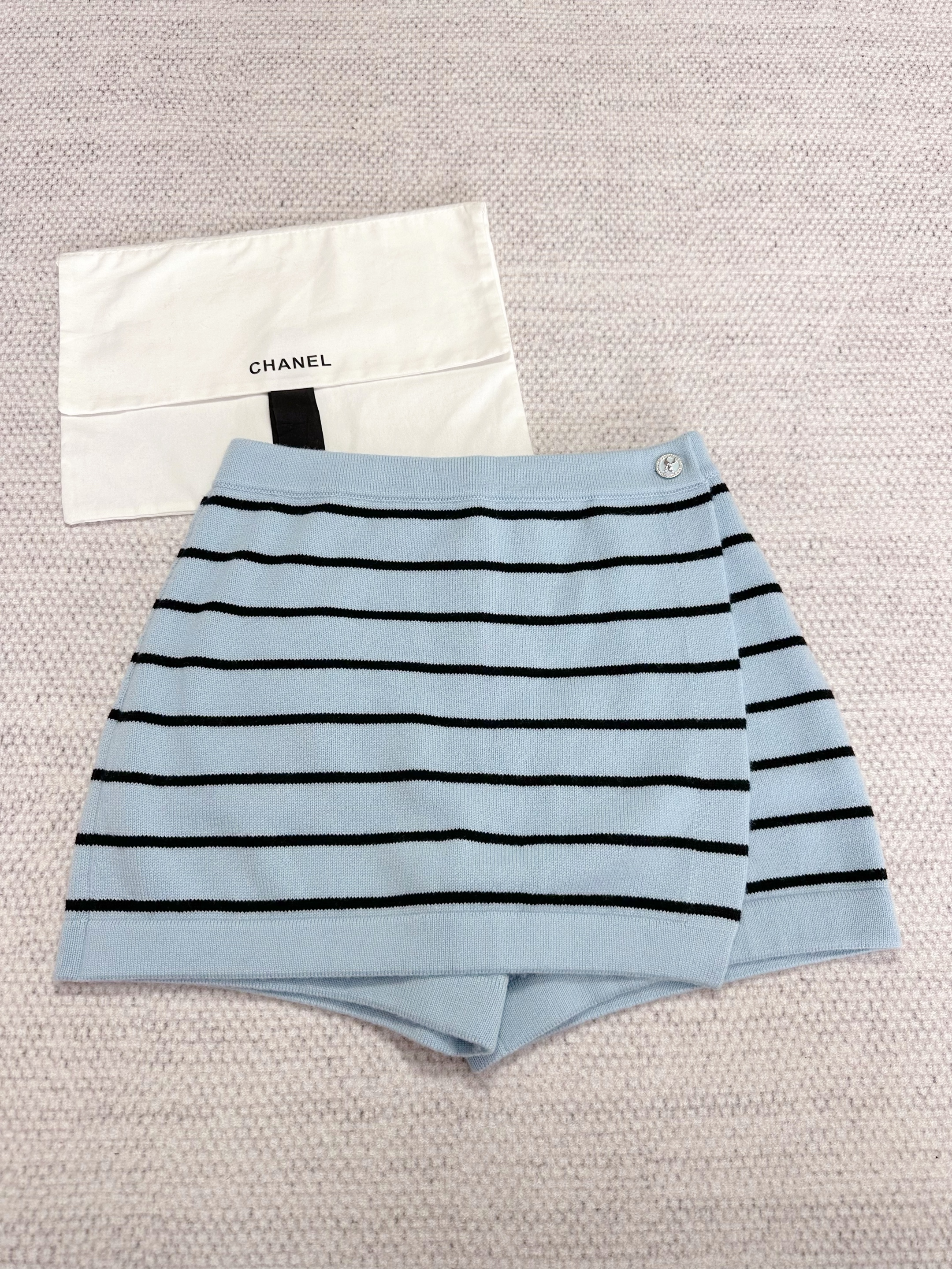 NIGO Chanel Women's Spring And Summer Blue Striped Knitted Trouser Skirt Fashion Short Slim Thin Comfortable Shorts Ngvp #nigo1982
