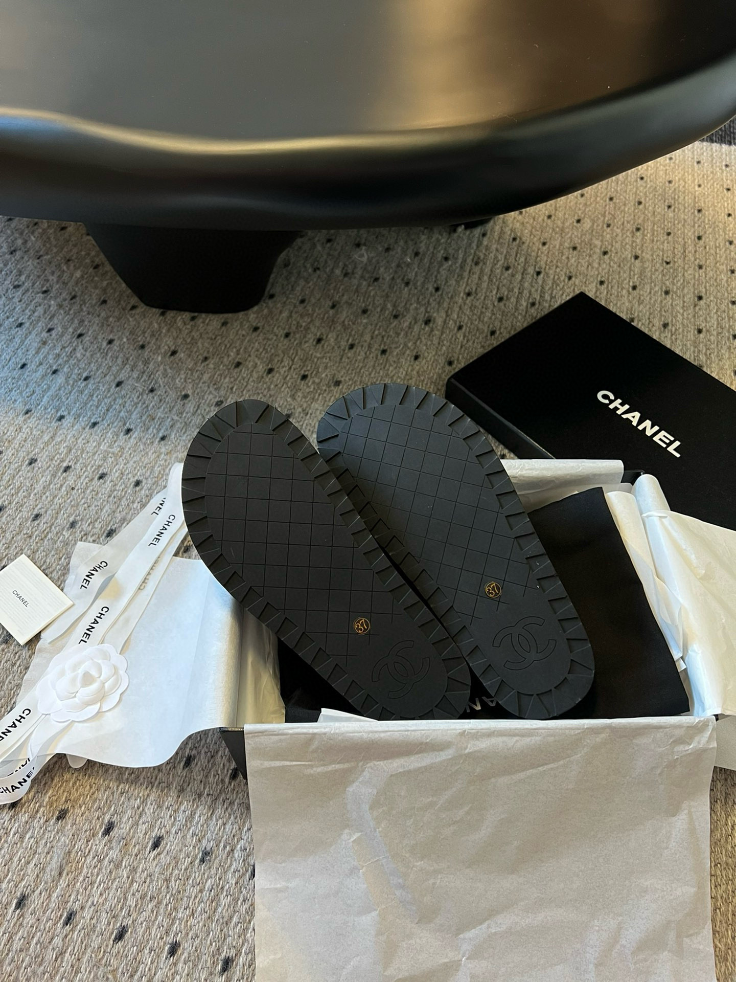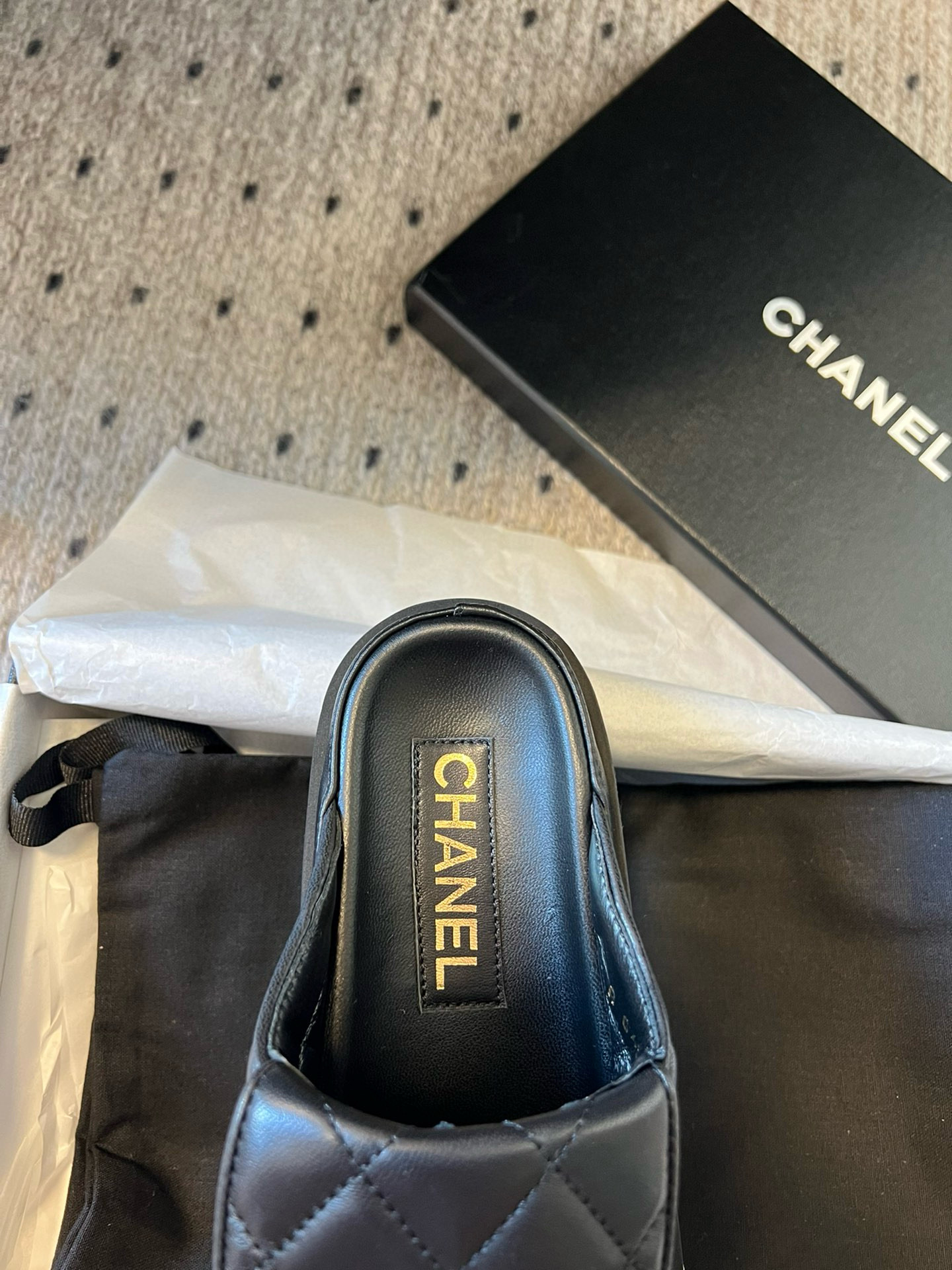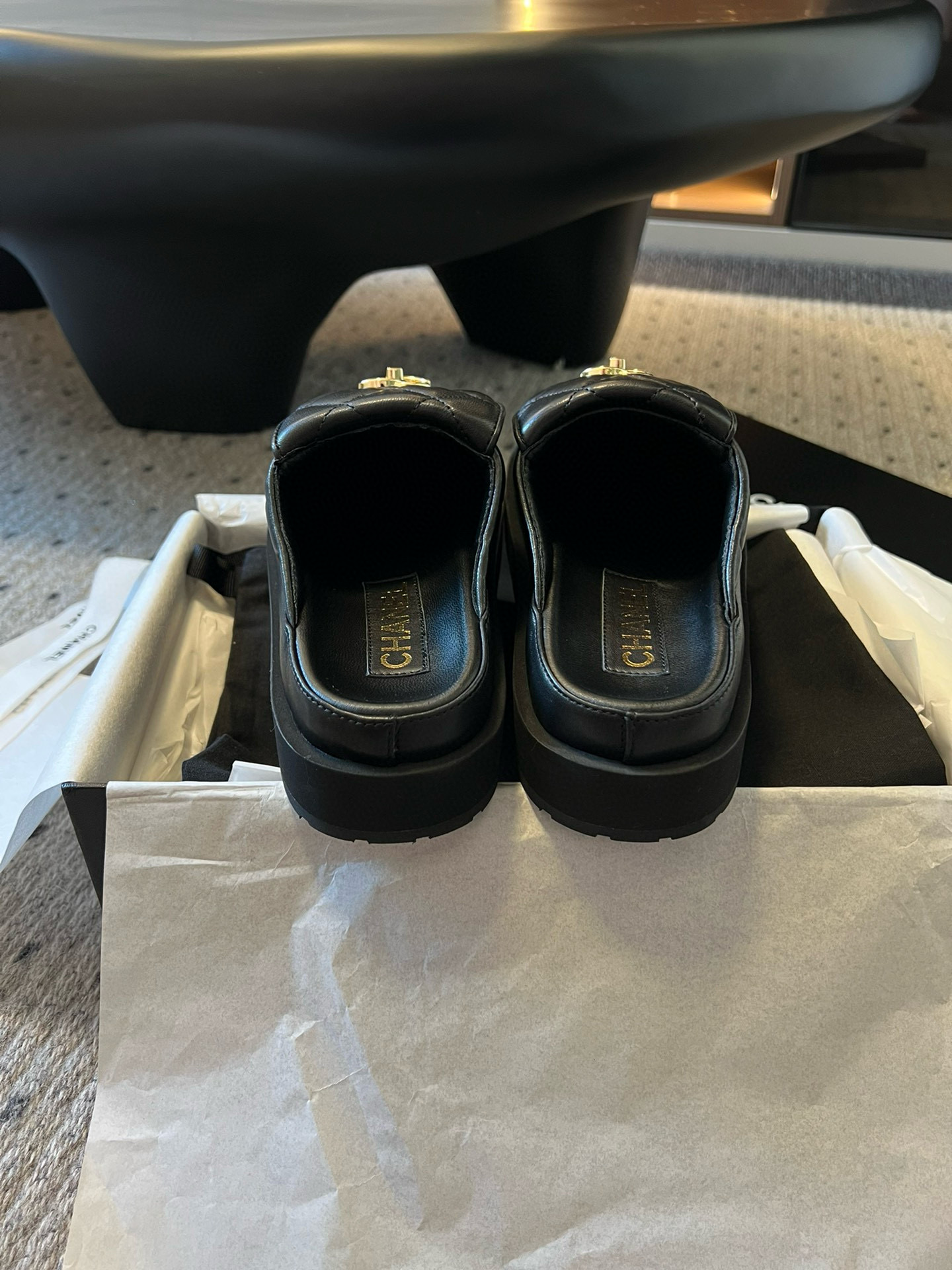 NIGO Chanel Women's Summer Black Leather Thick Sole Bread Slippers Shoes #nigo97563