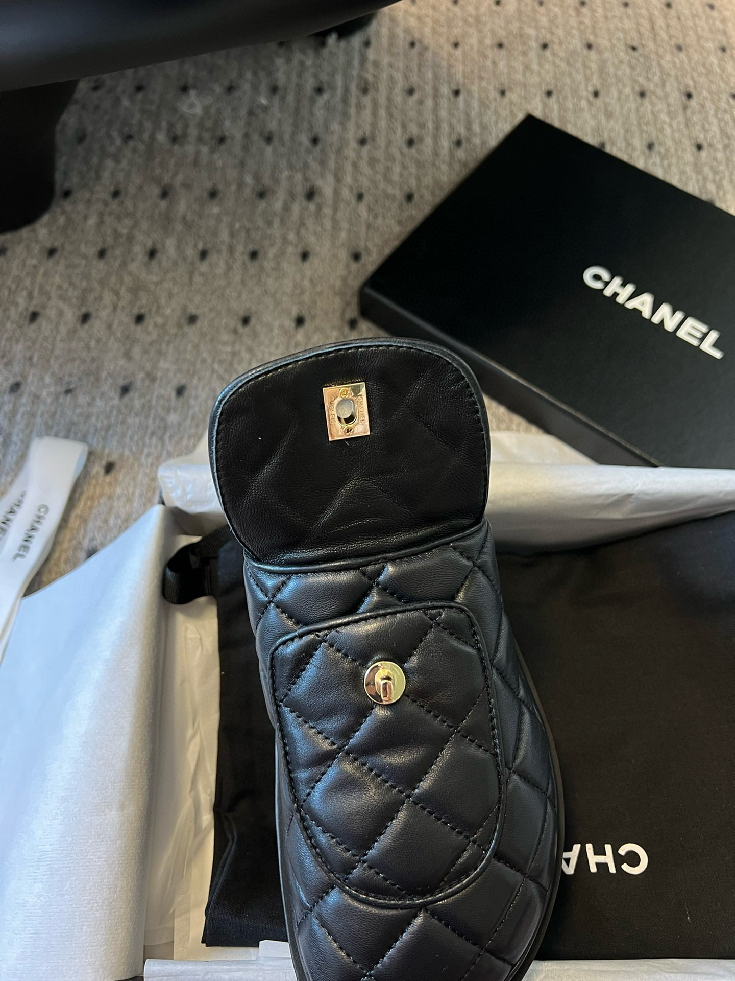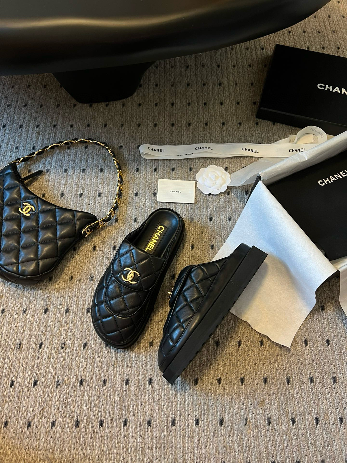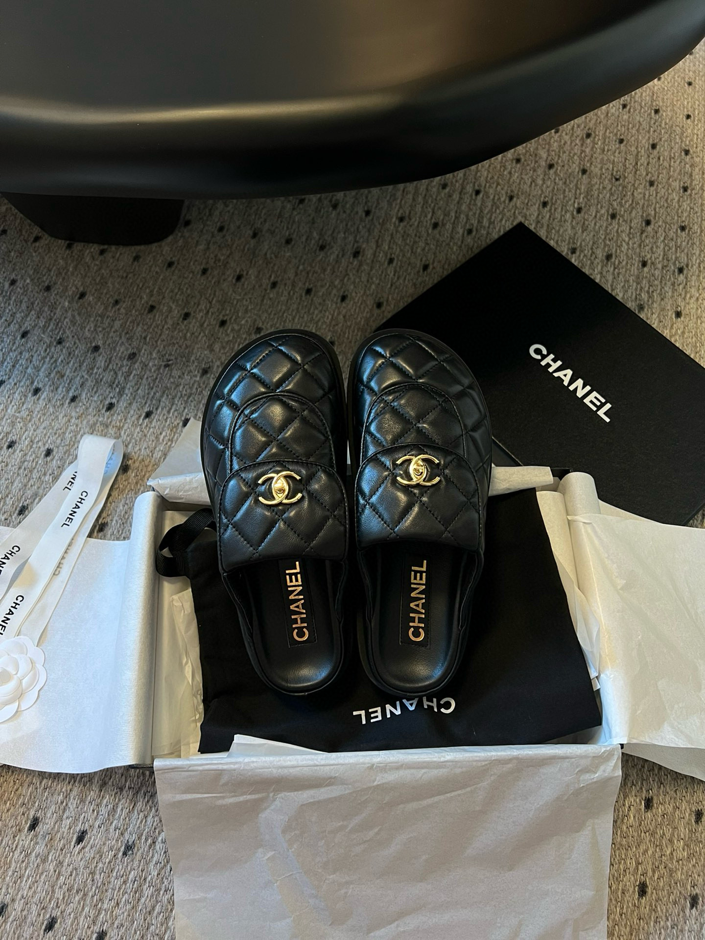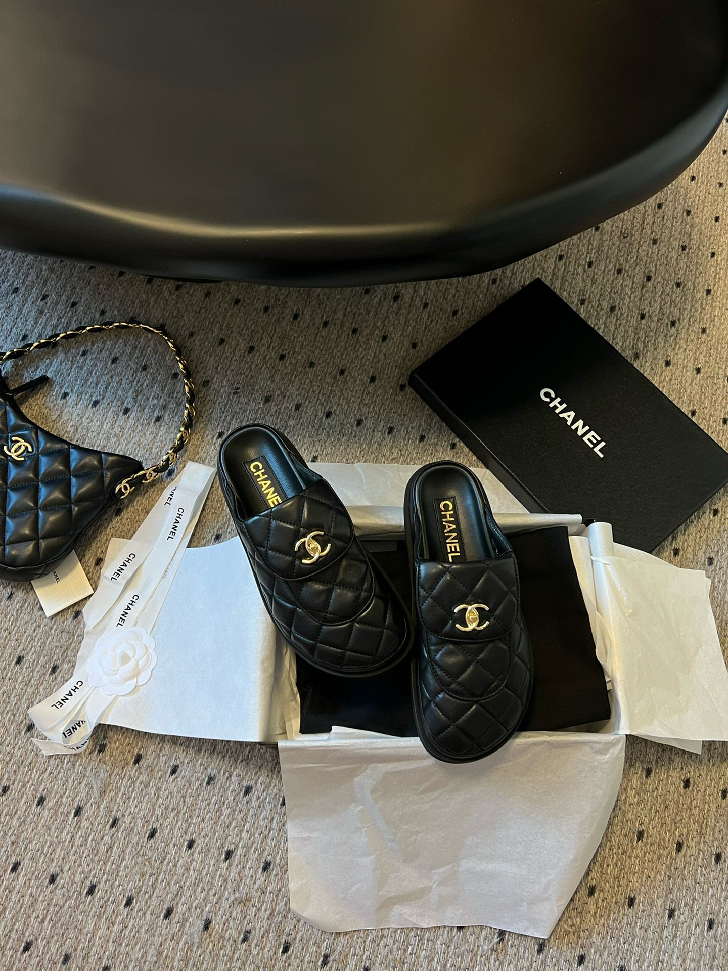 NIGO Chanel Women's Summer Black Leather Thick Sole Bread Slippers Shoes #nigo97563