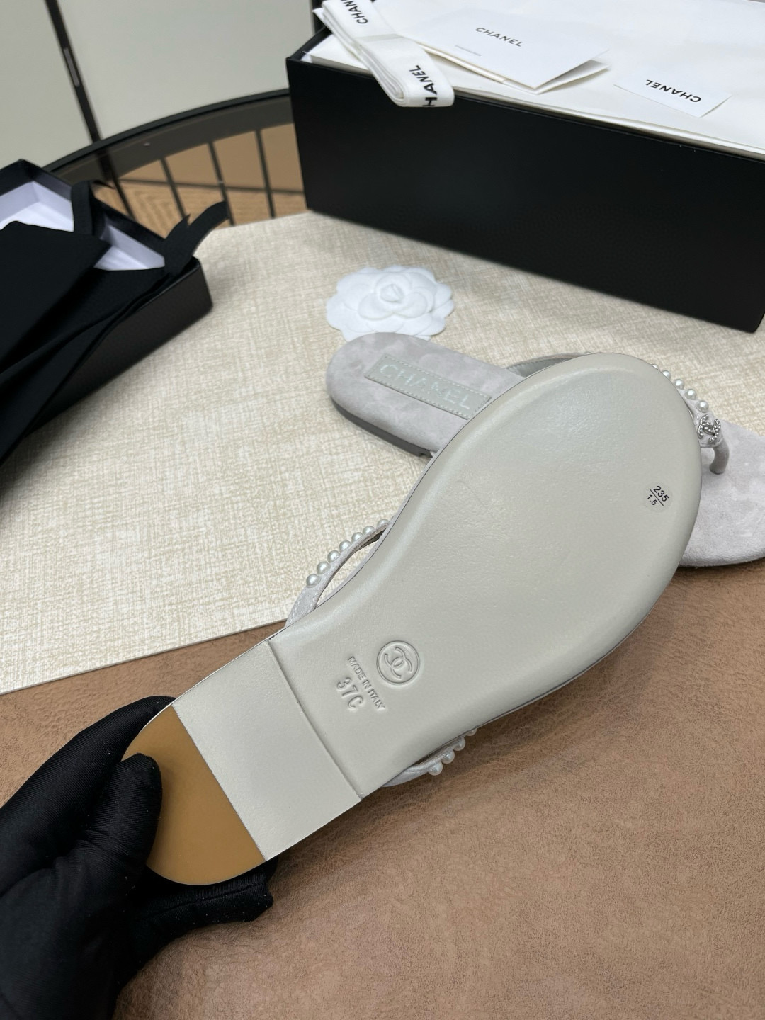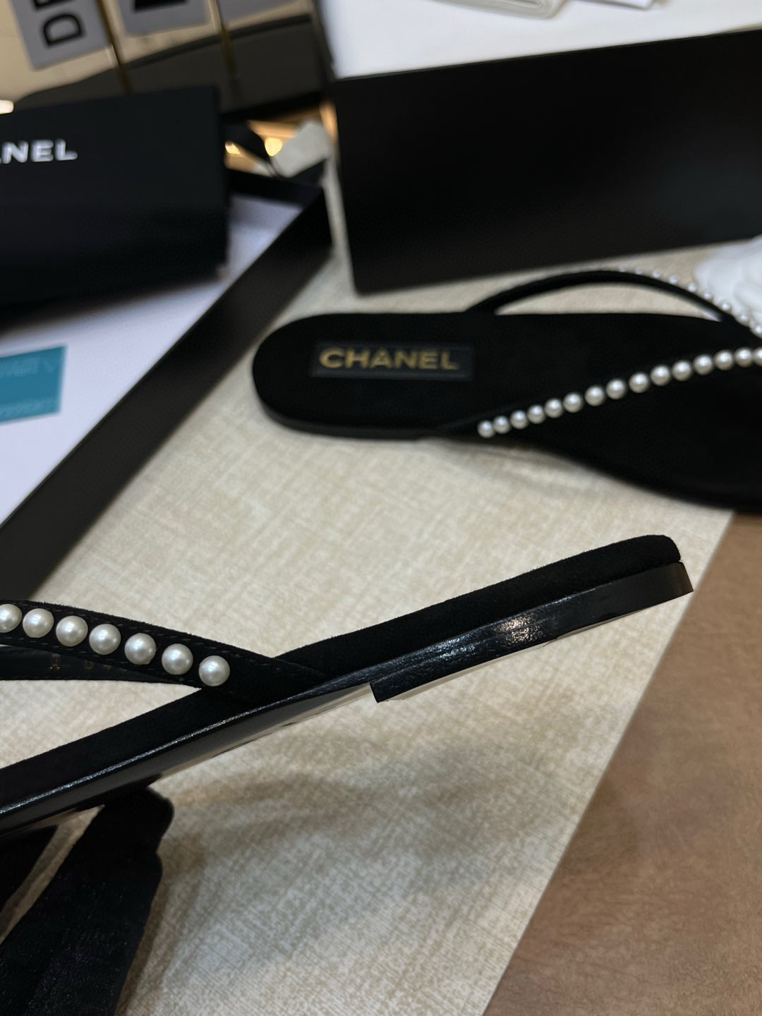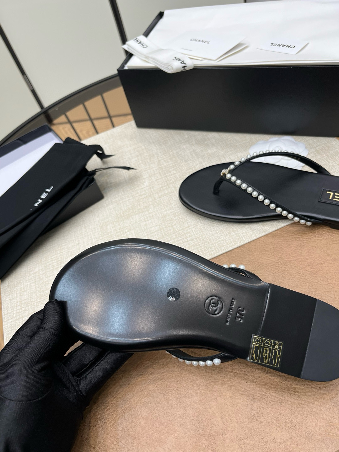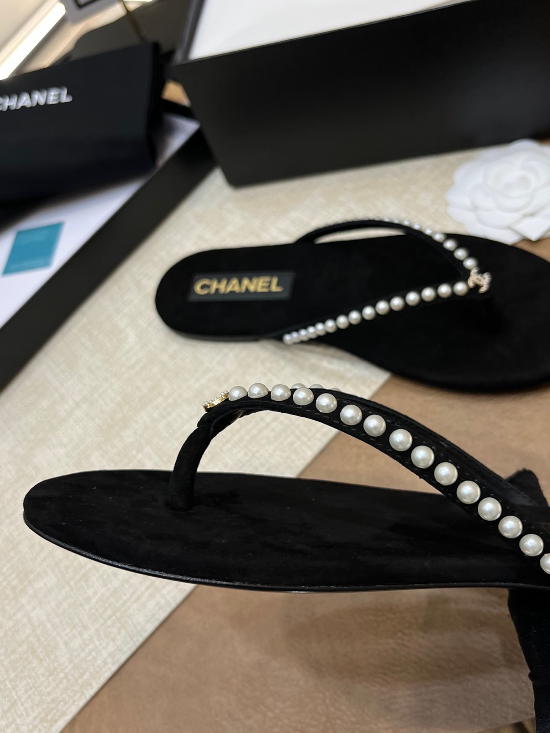 NIGO Chanel Women's Summer Round Toe Clip Toe Pearl Decoration Thong Slippers Sandals Shoes #nigo75972