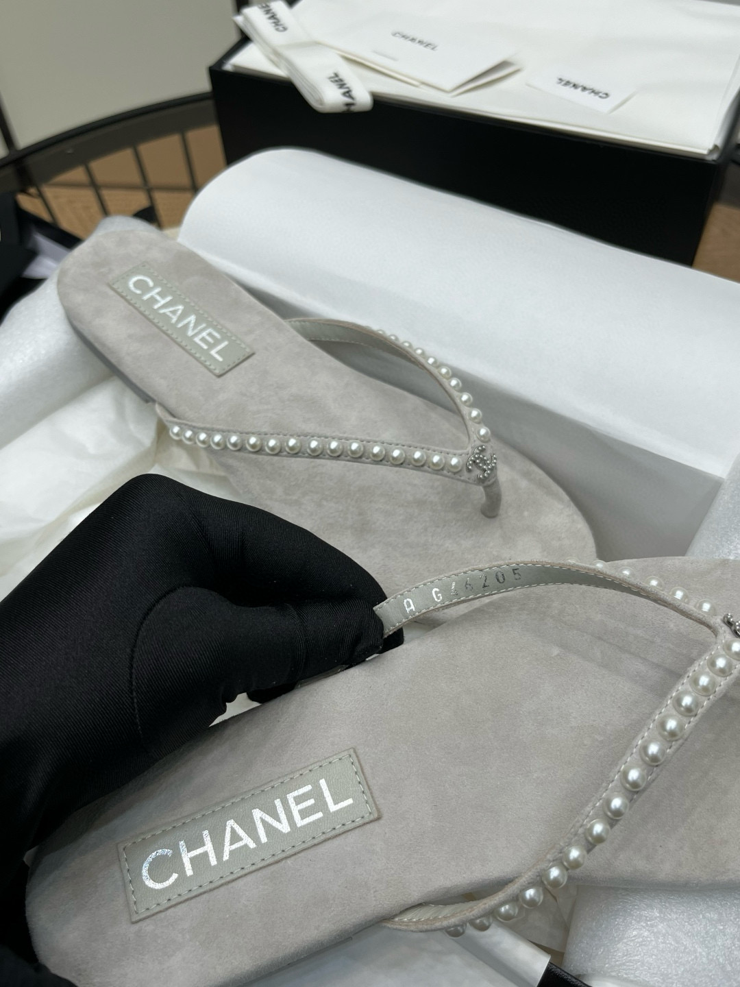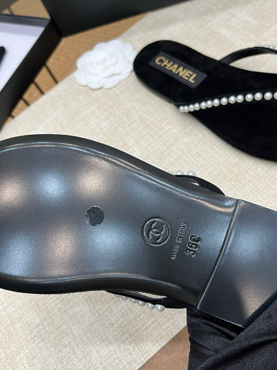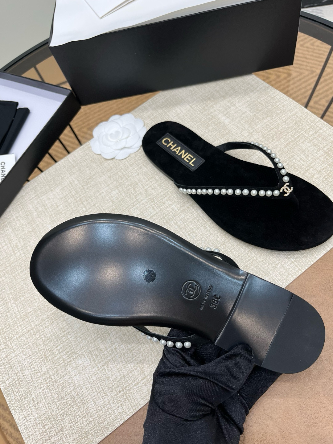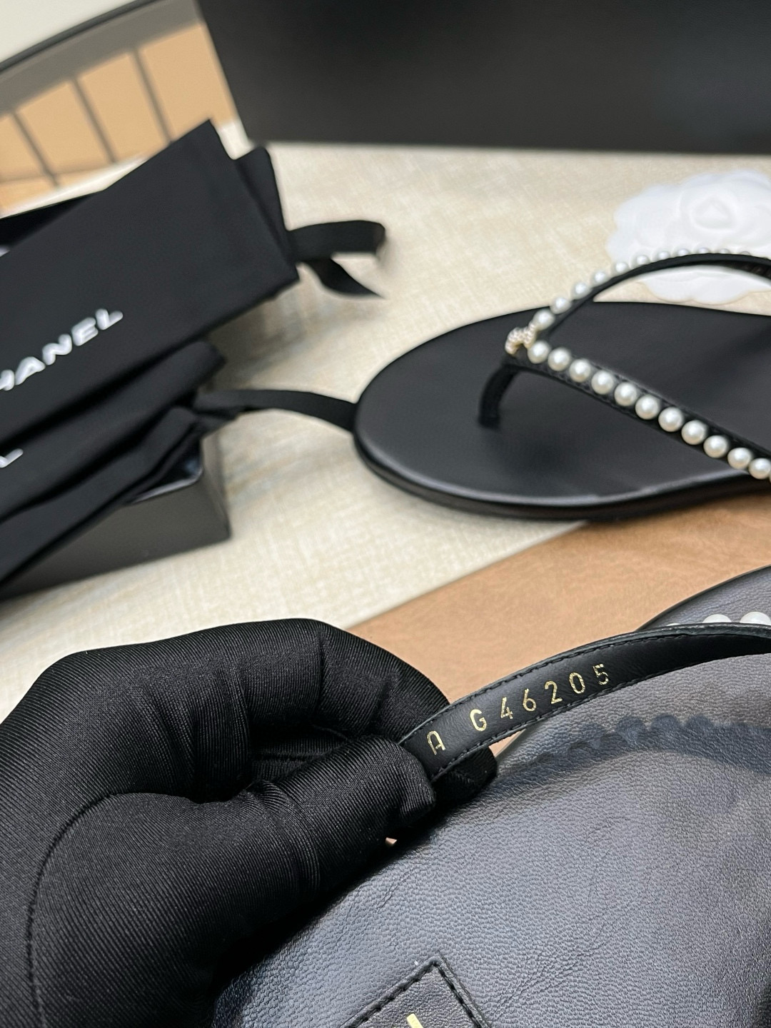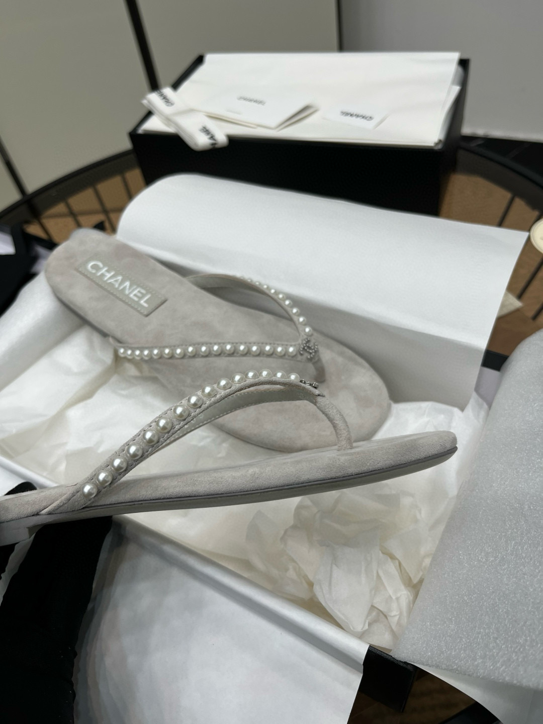 NIGO Chanel Women's Summer Round Toe Clip Toe Pearl Decoration Thong Slippers Sandals Shoes #nigo75972