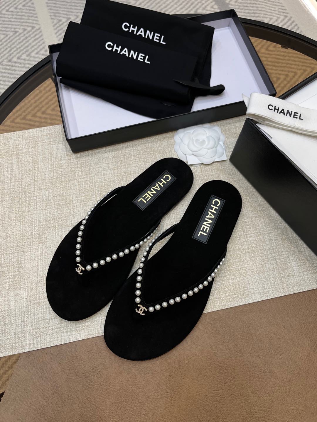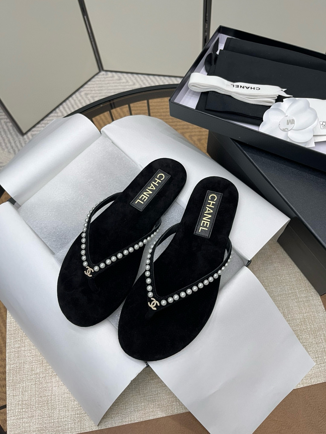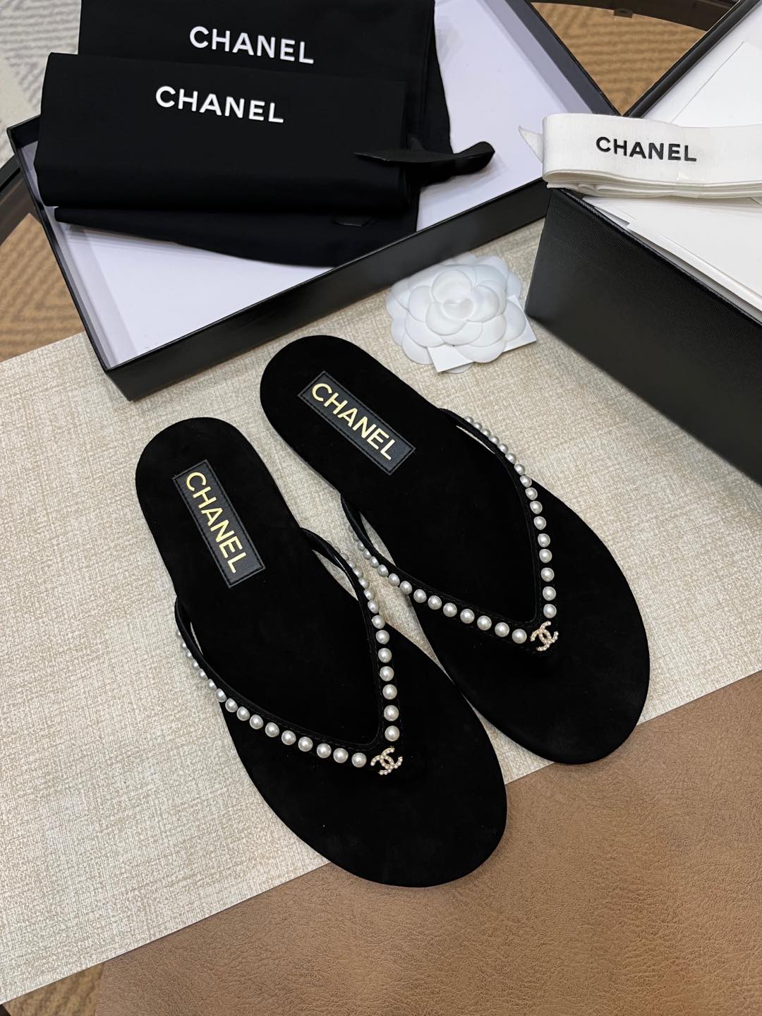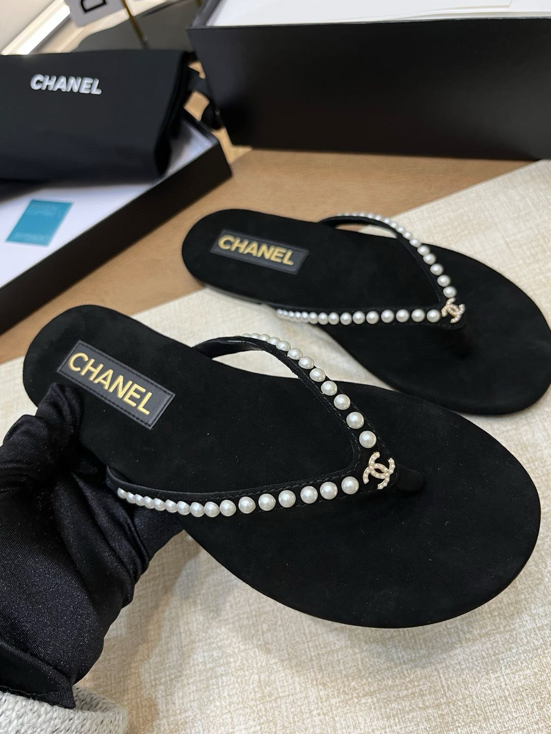 NIGO Chanel Women's Summer Round Toe Clip Toe Pearl Decoration Thong Slippers Sandals Shoes #nigo75972