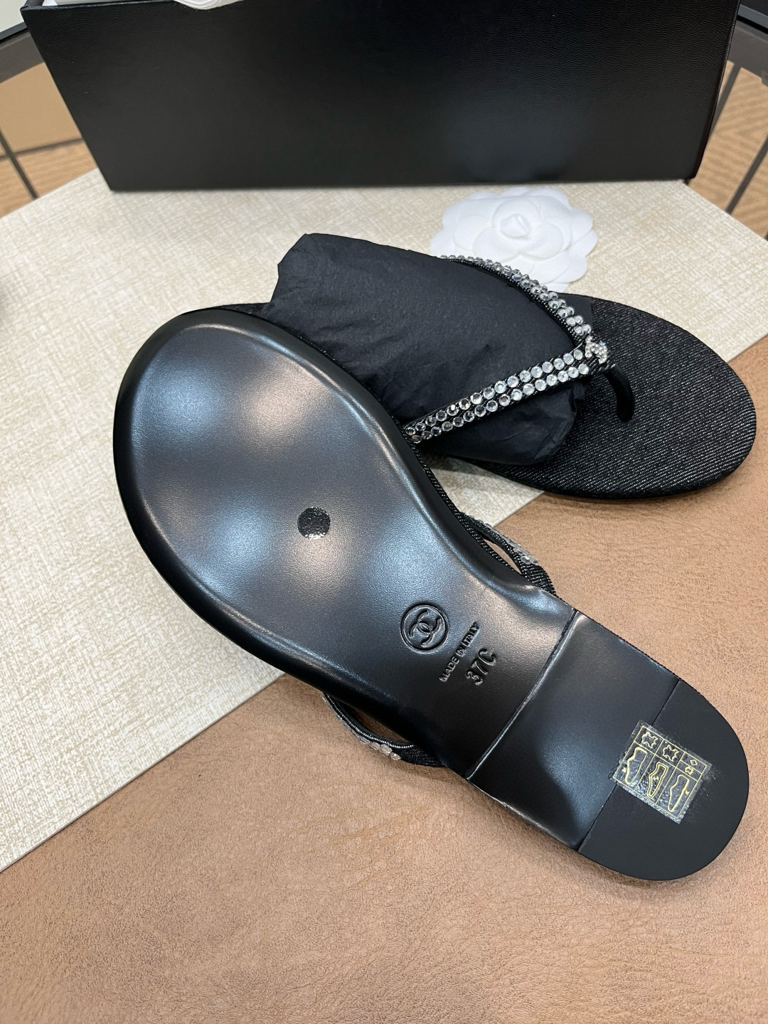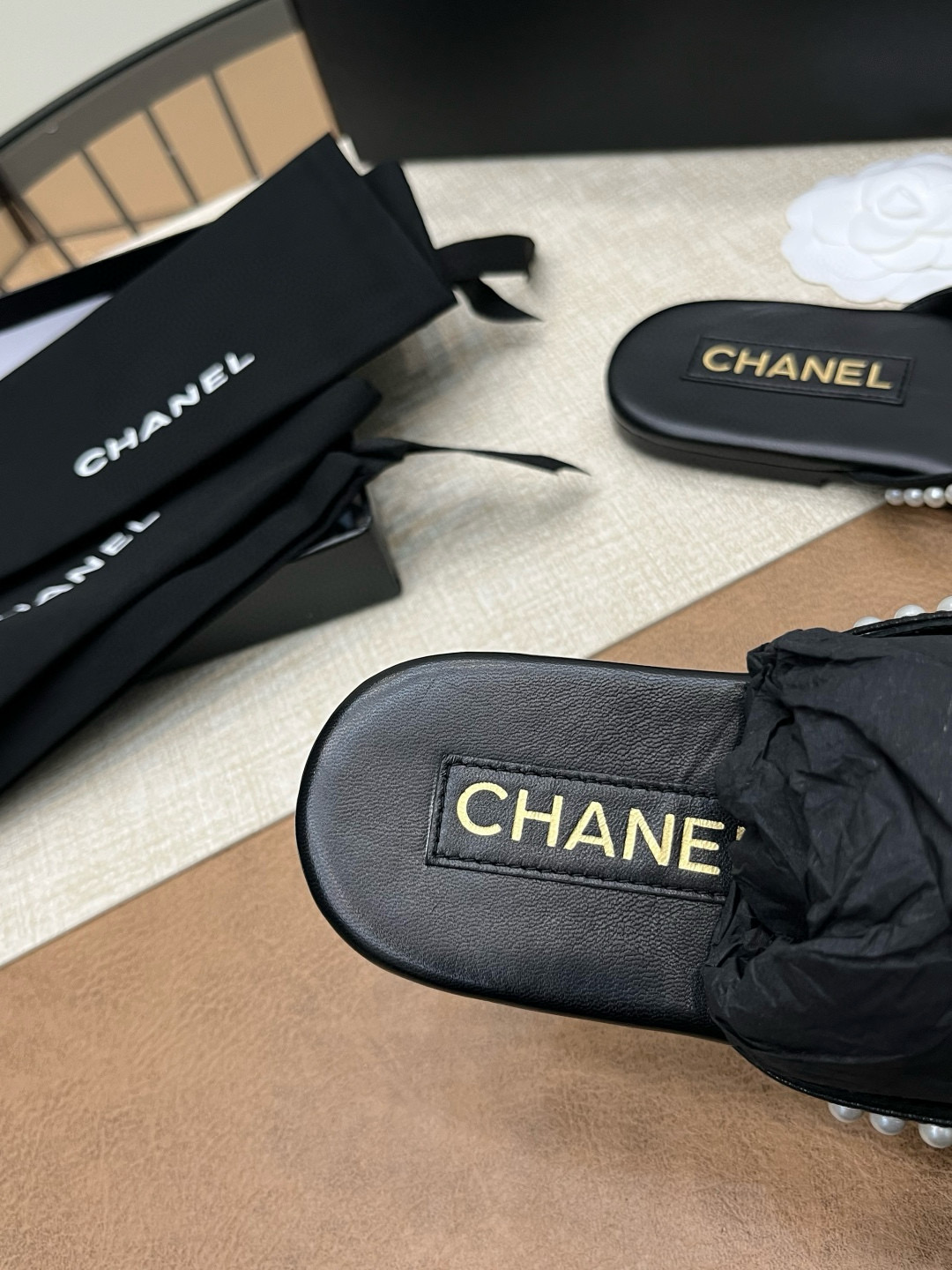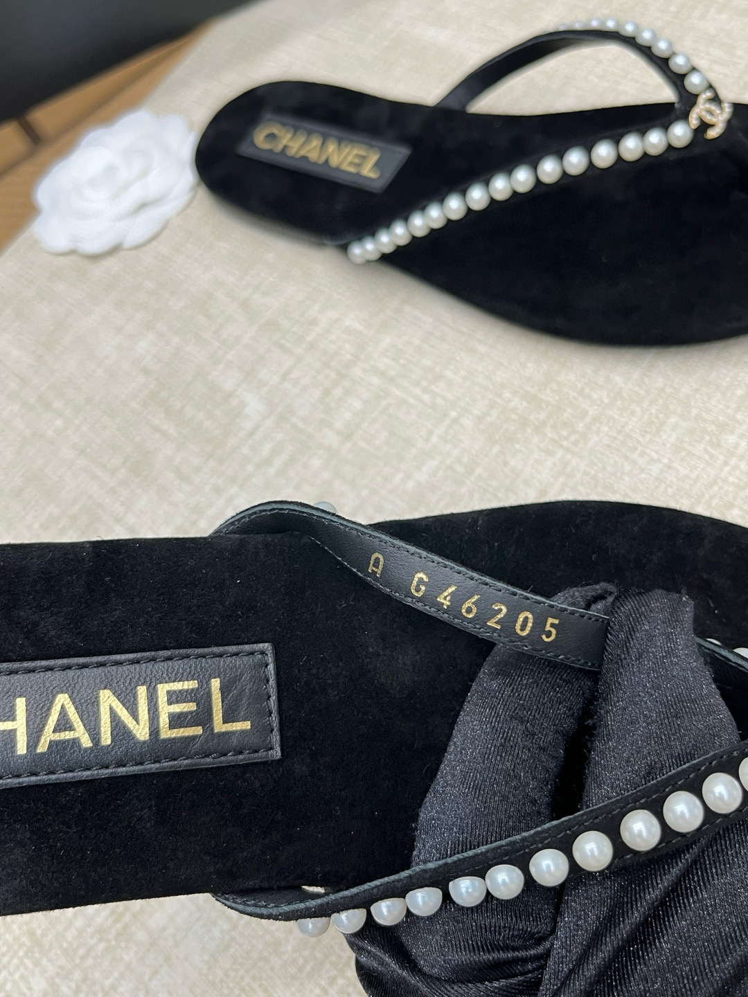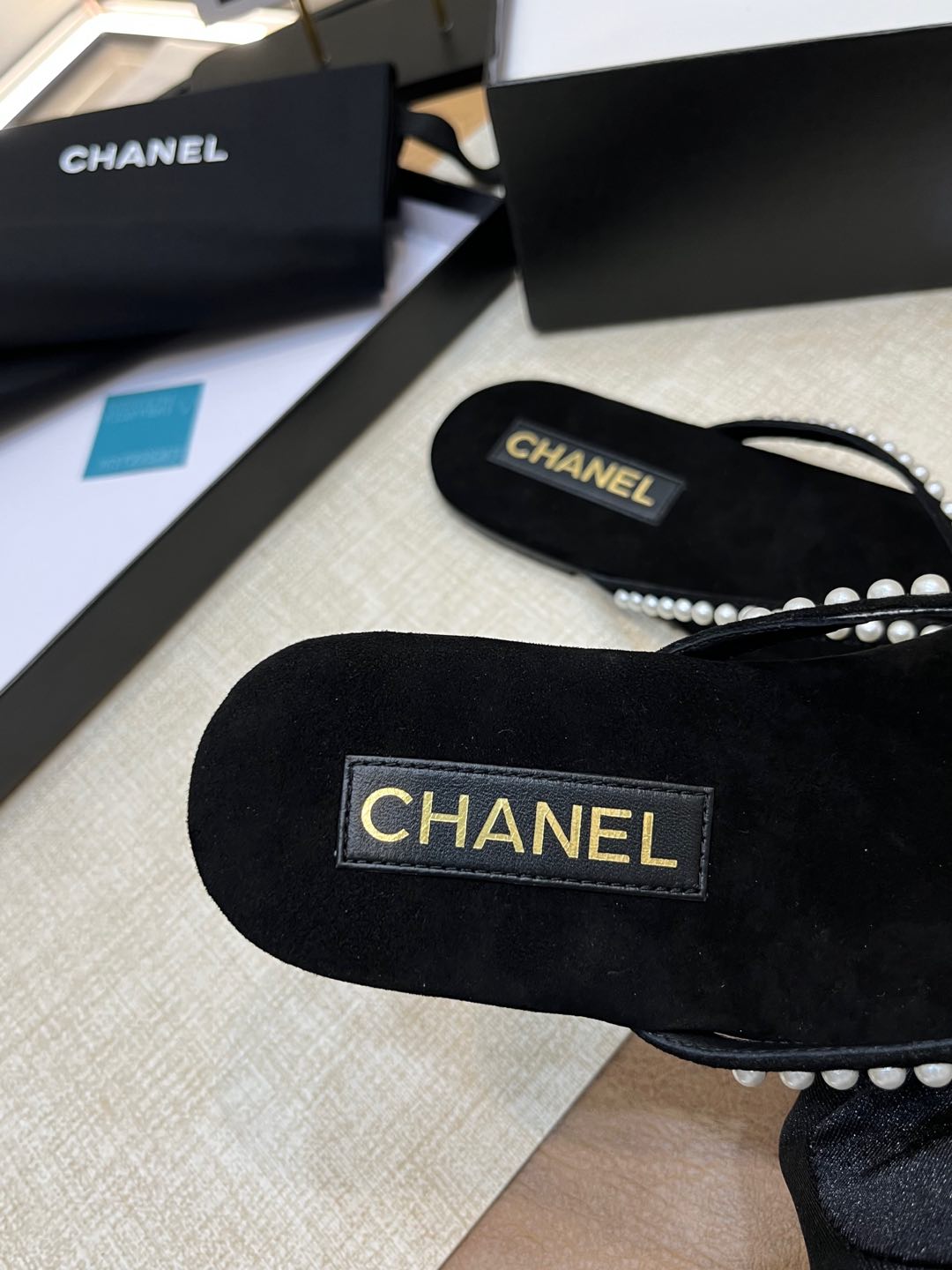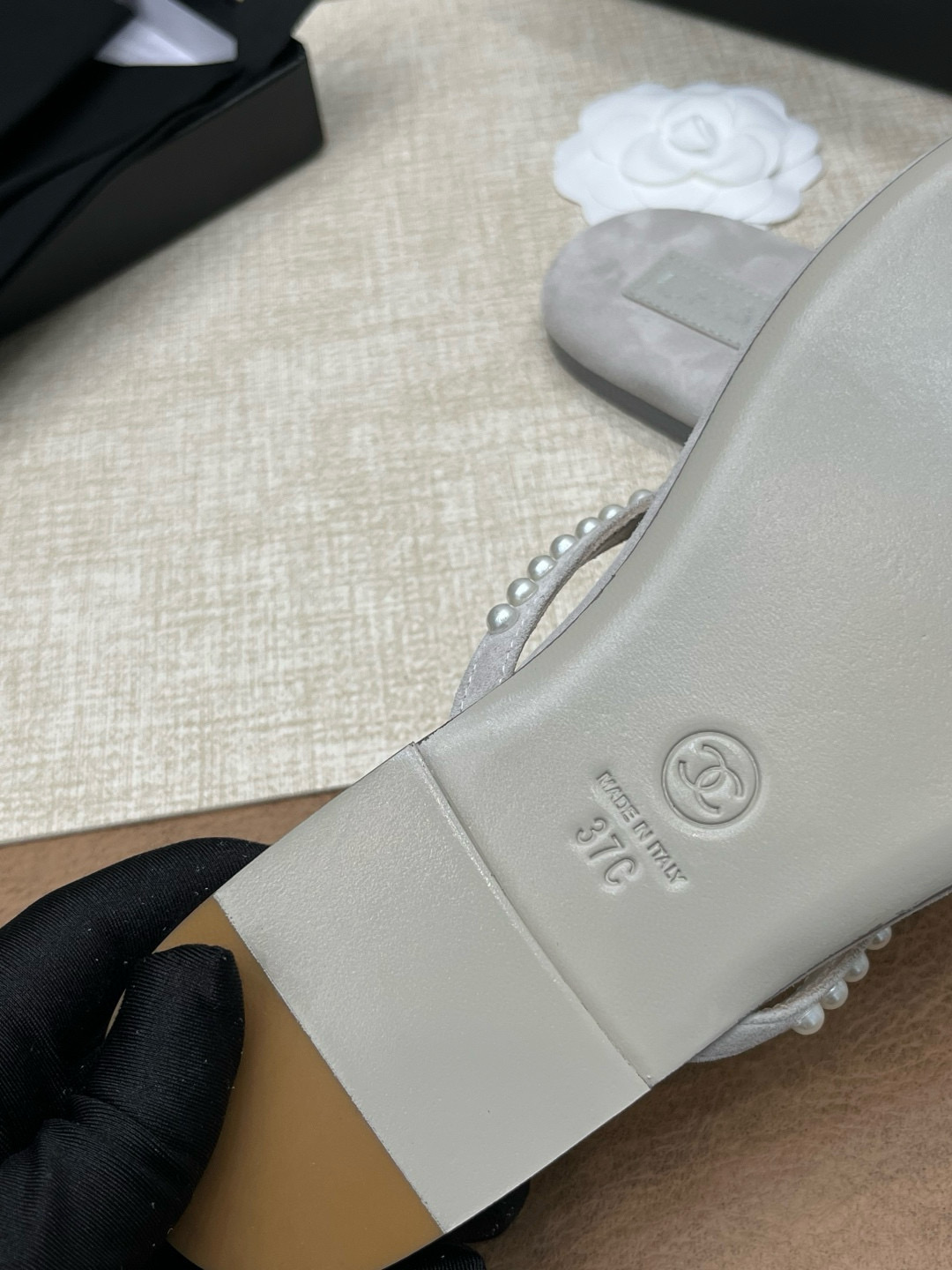 NIGO Chanel Women's Summer Round Toe Clip Toe Pearl Decoration Thong Slippers Sandals Shoes #nigo75972