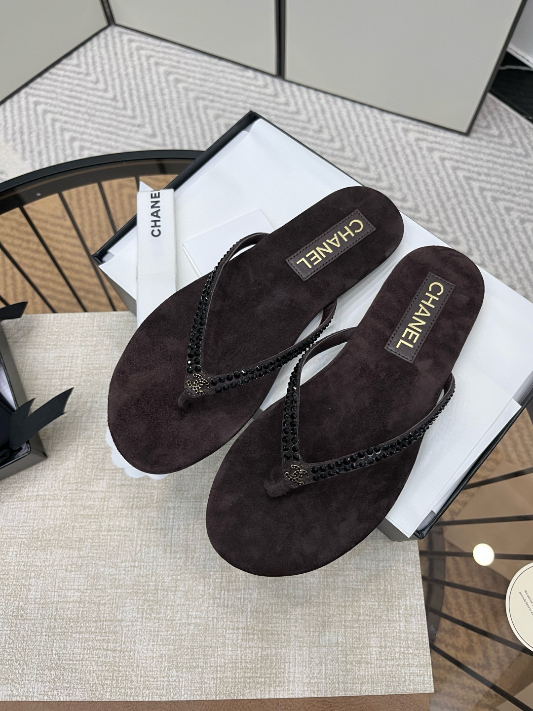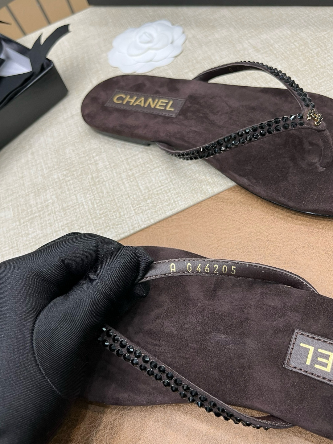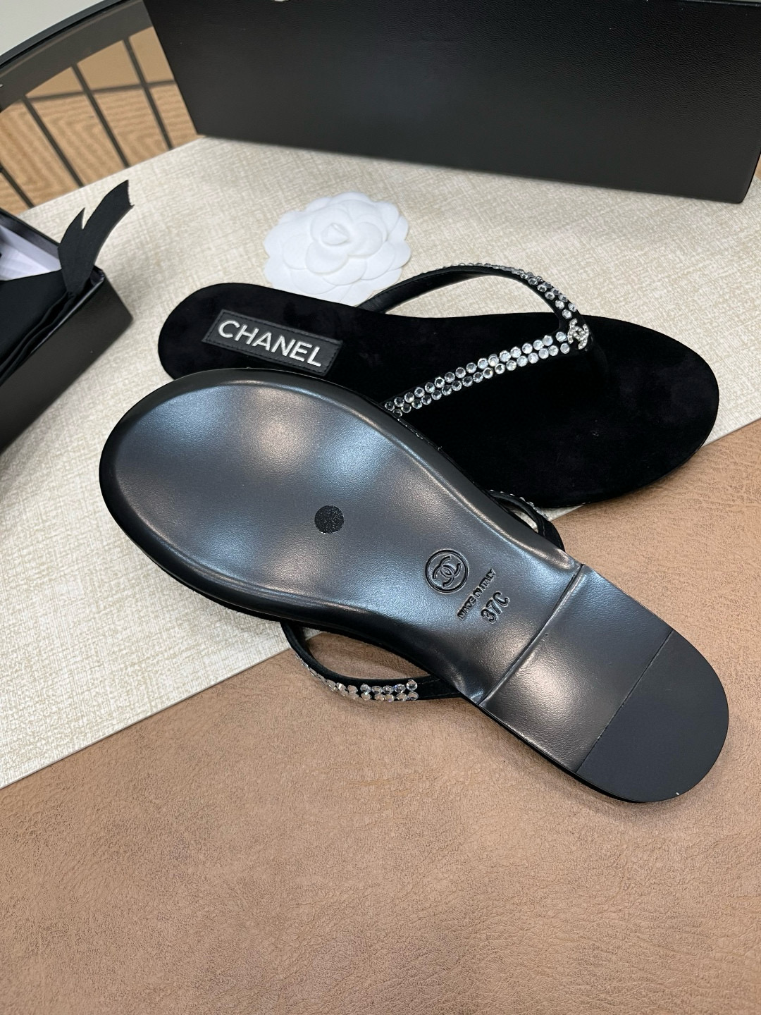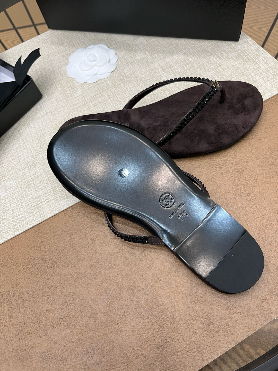 NIGO Chanel Women's Summer Round Toe Clip Toe Pearl Decoration Thong Slippers Sandals Shoes #nigo75972