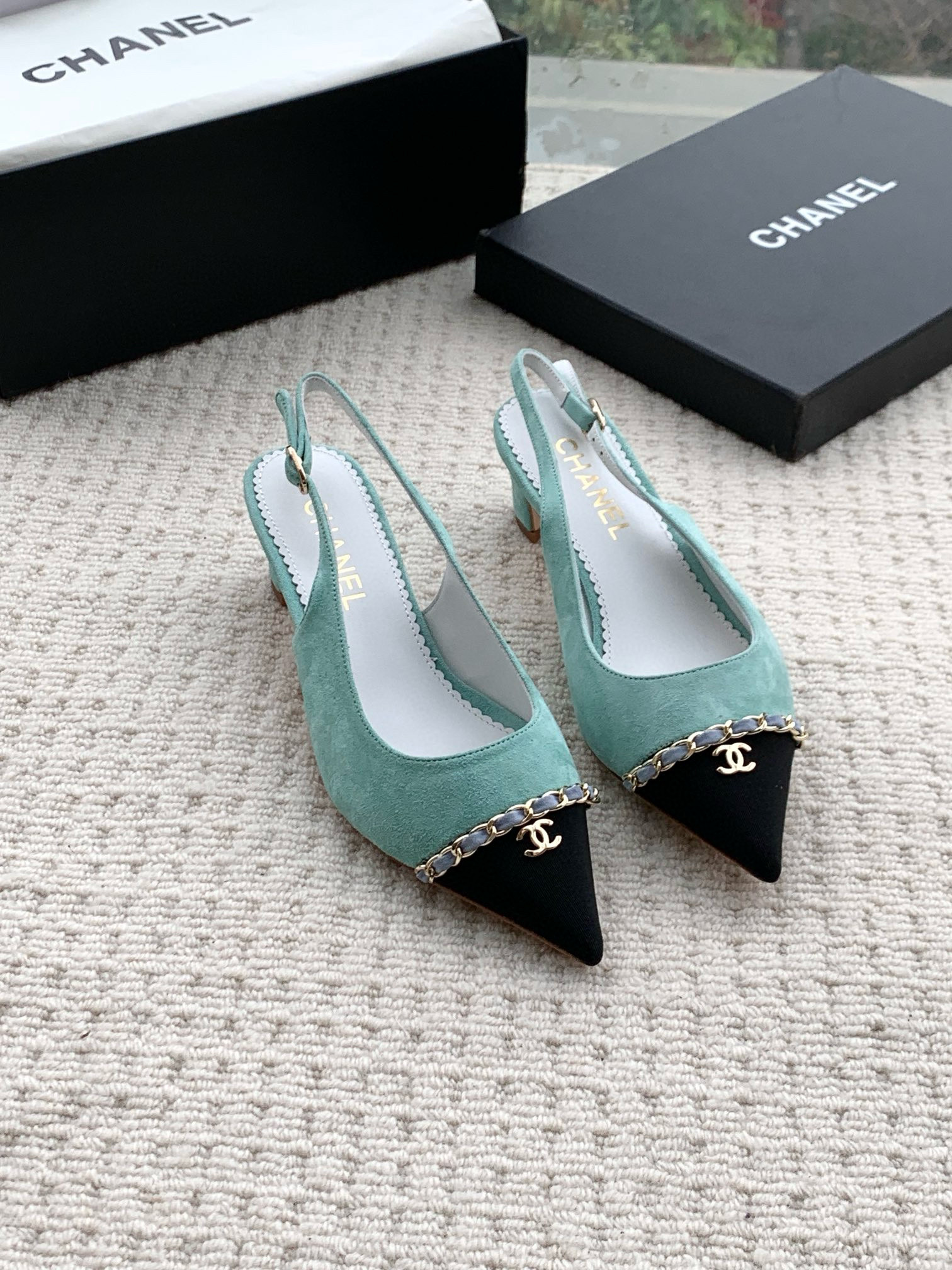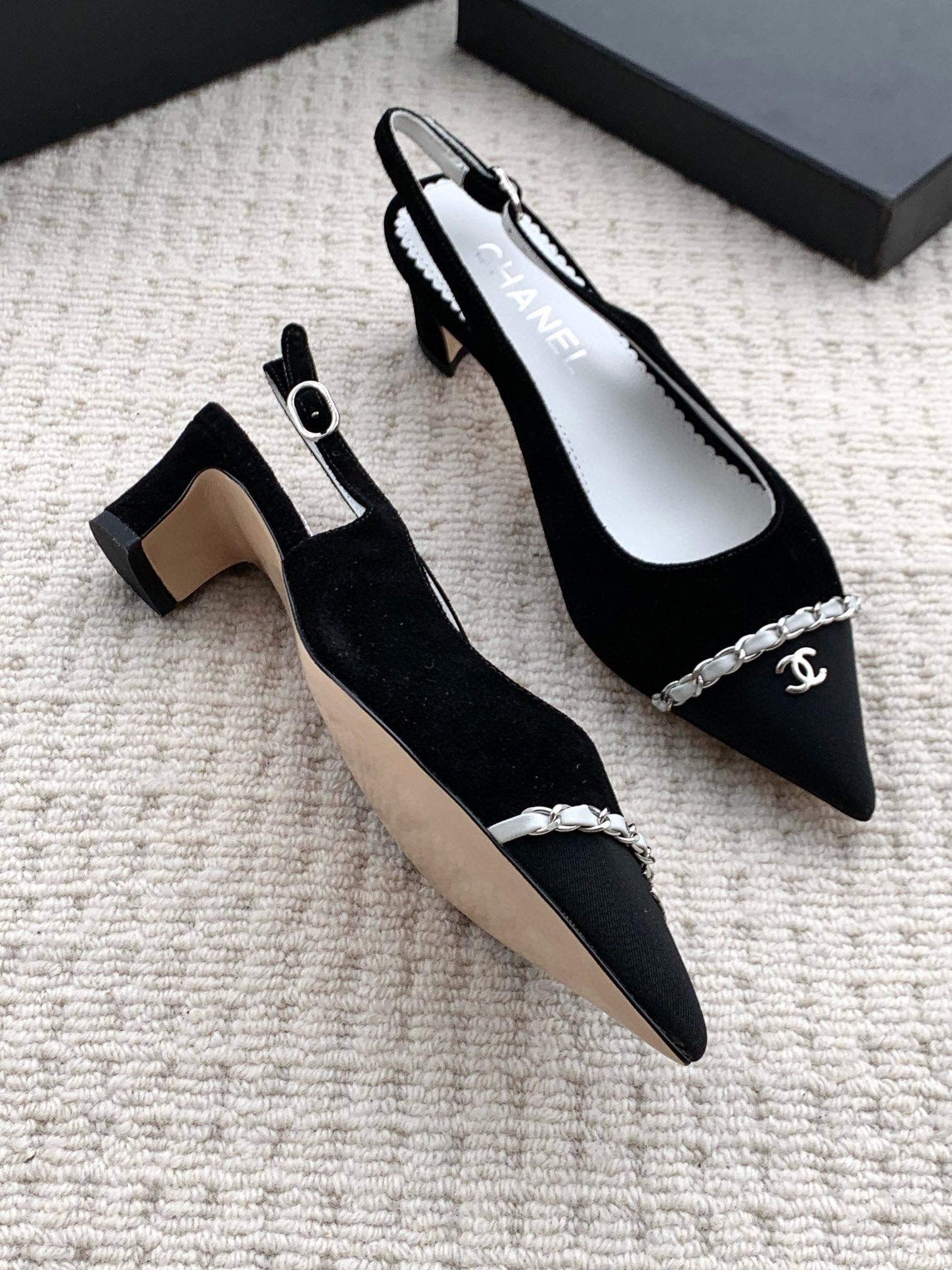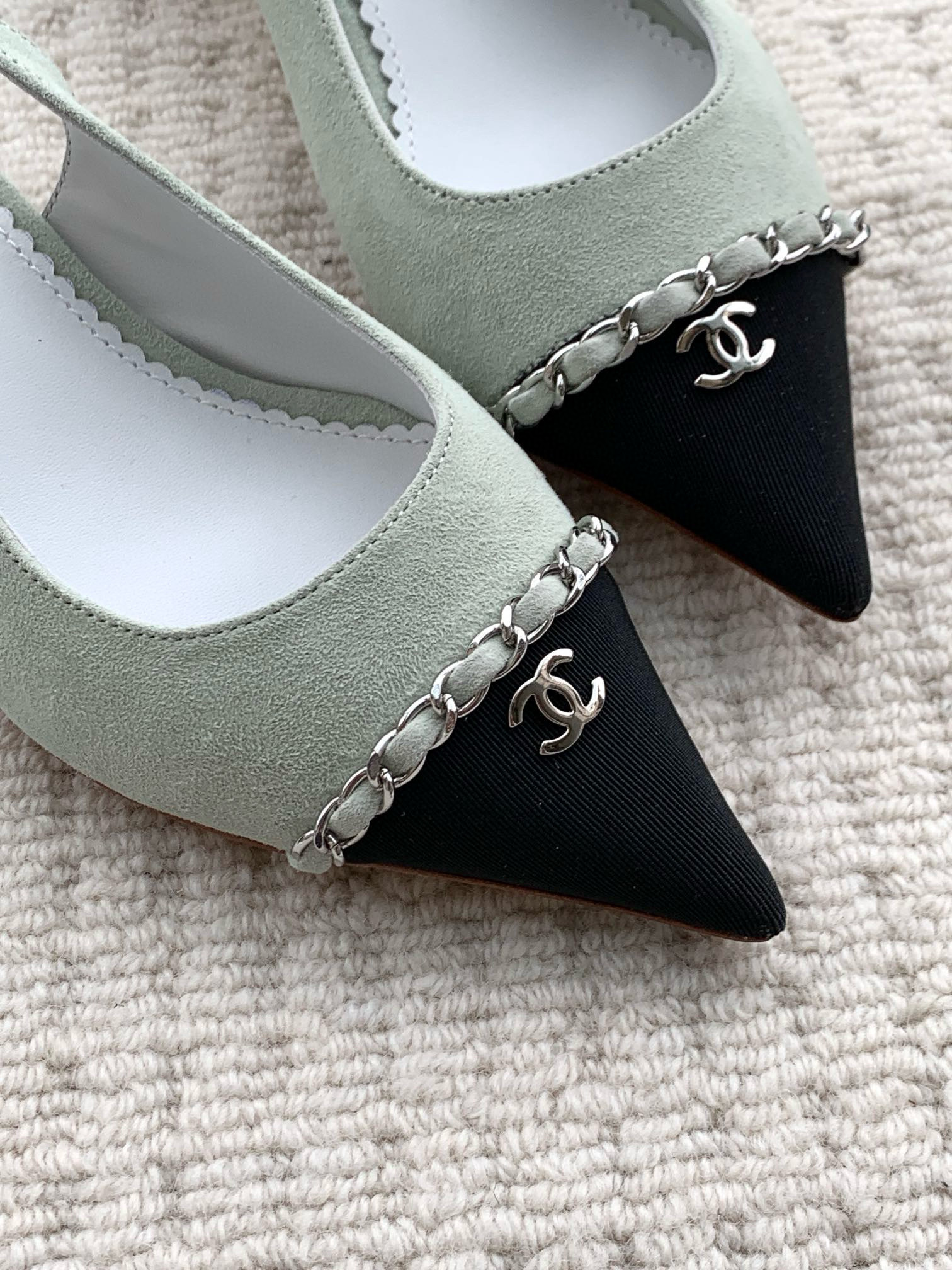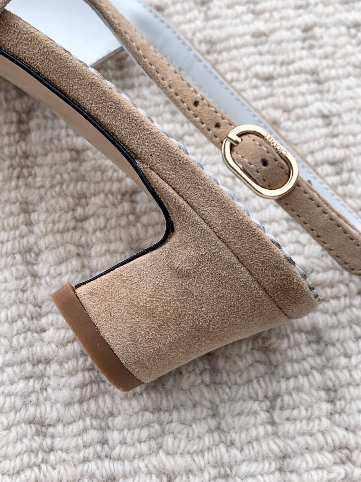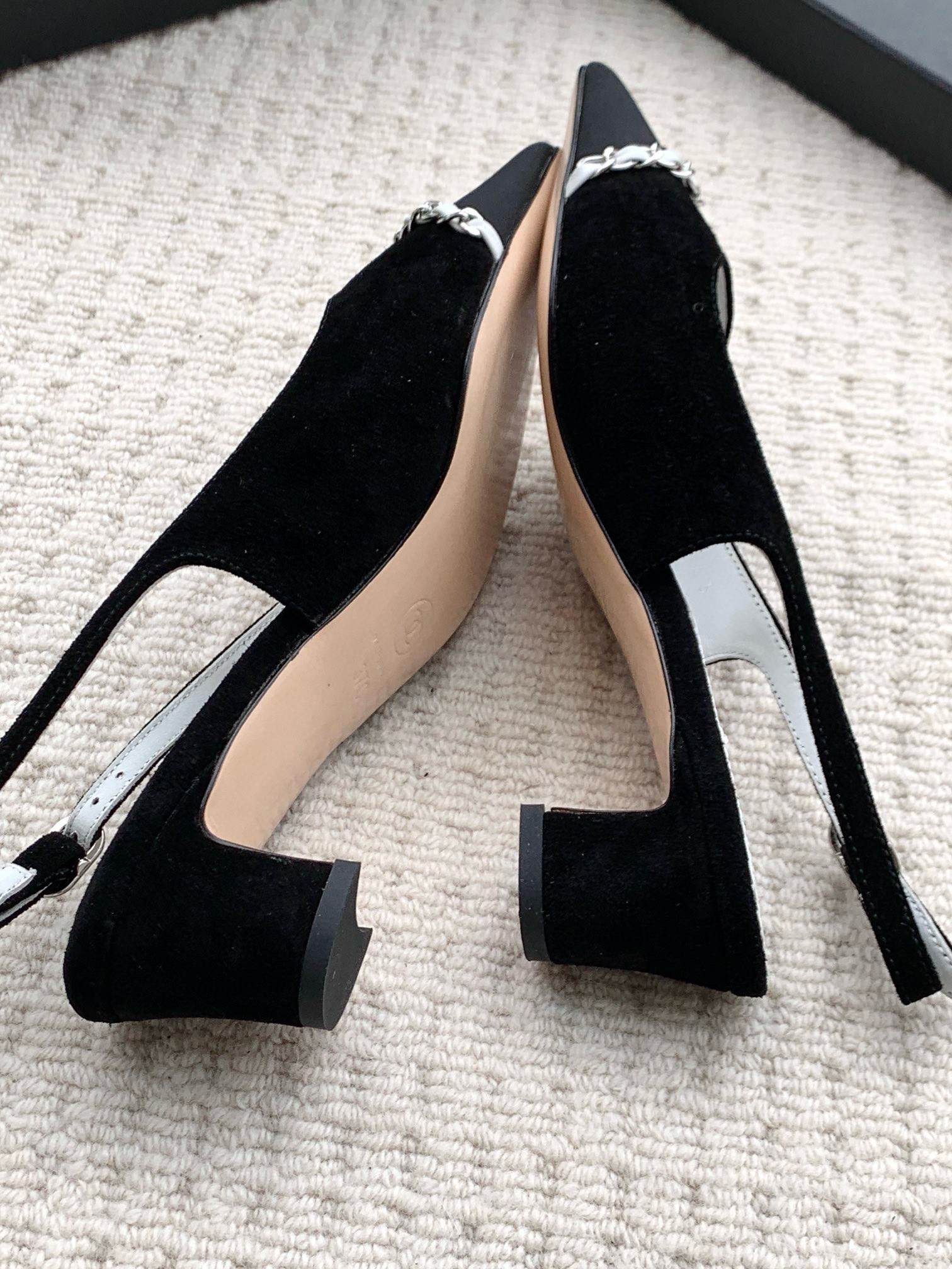 NIGO Chanel Women's Summer Suede Fabric Buckle Pointed Toe Chunky Root High Heels 4.5cm Shoes #nigo98588