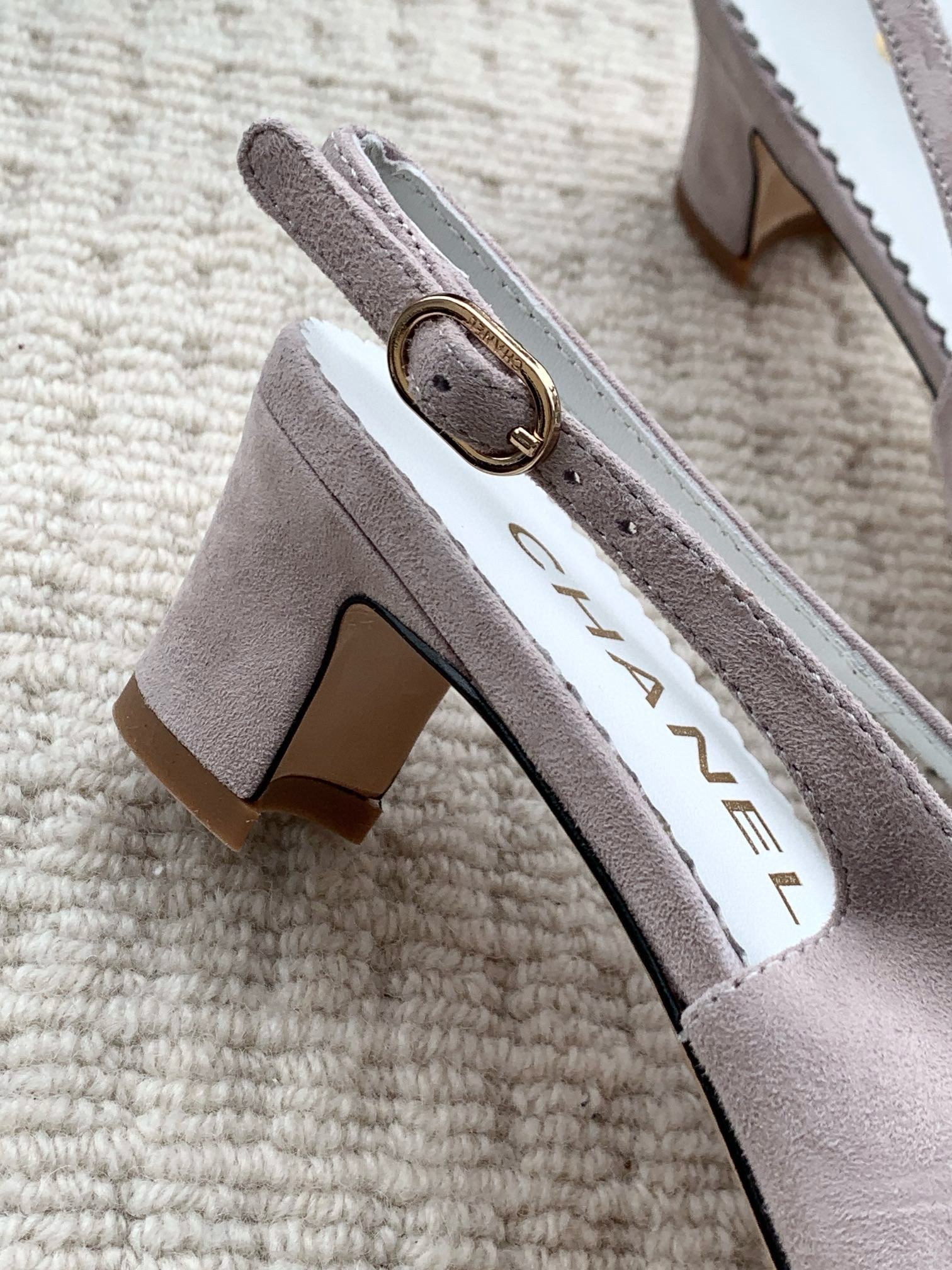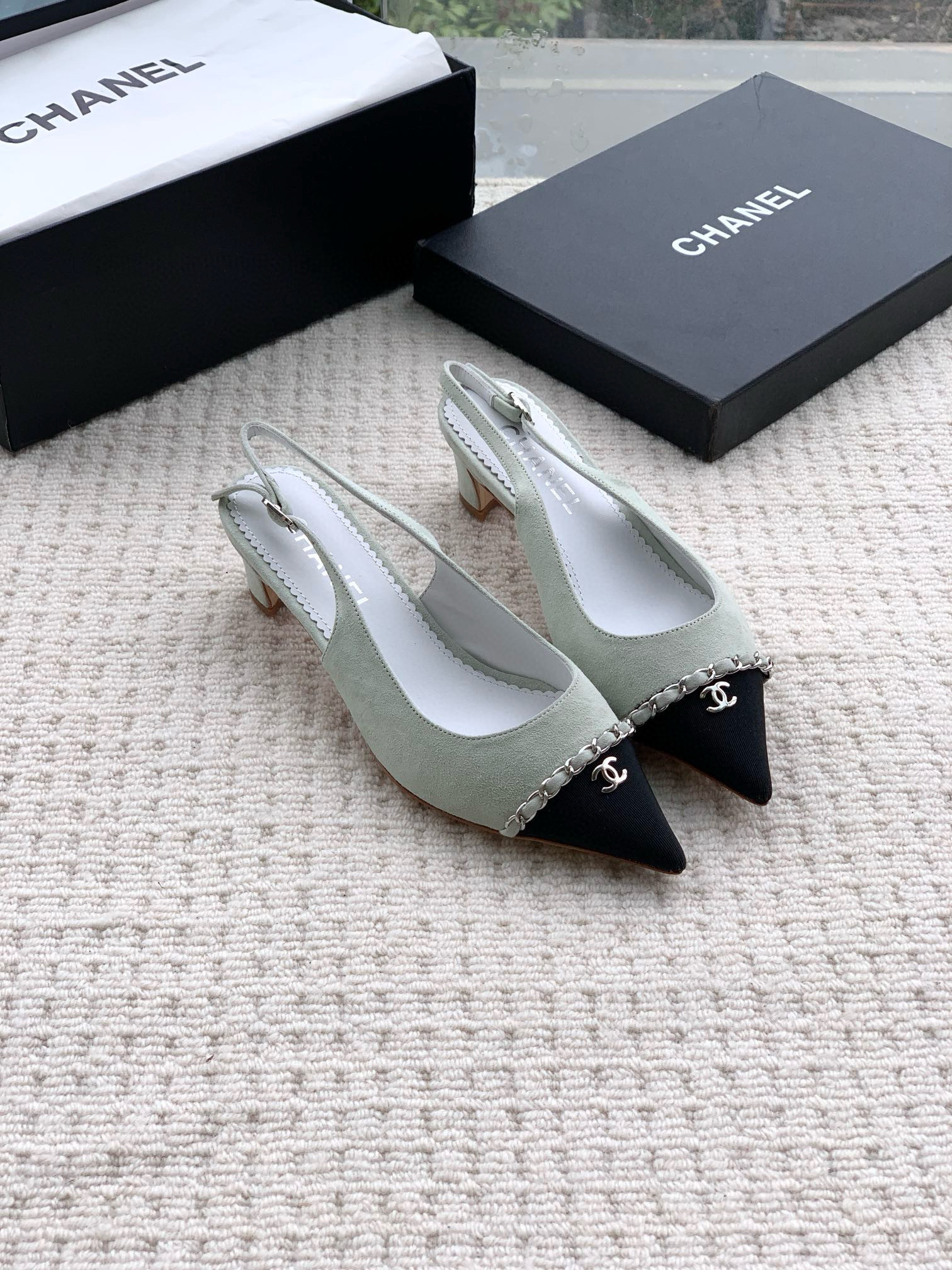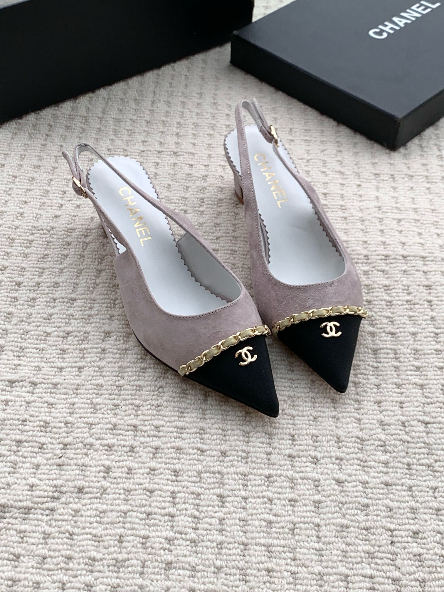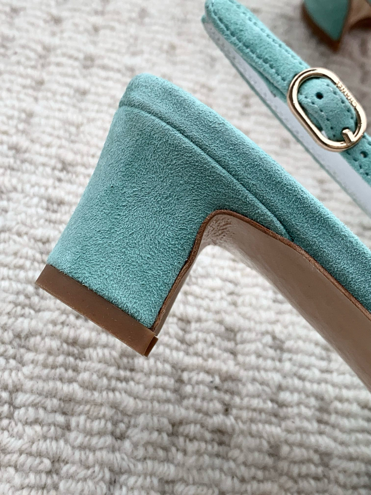 NIGO Chanel Women's Summer Suede Fabric Buckle Pointed Toe Chunky Root High Heels 4.5cm Shoes #nigo98588