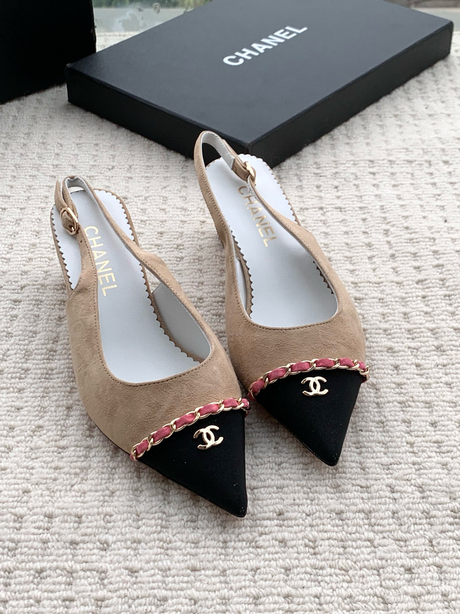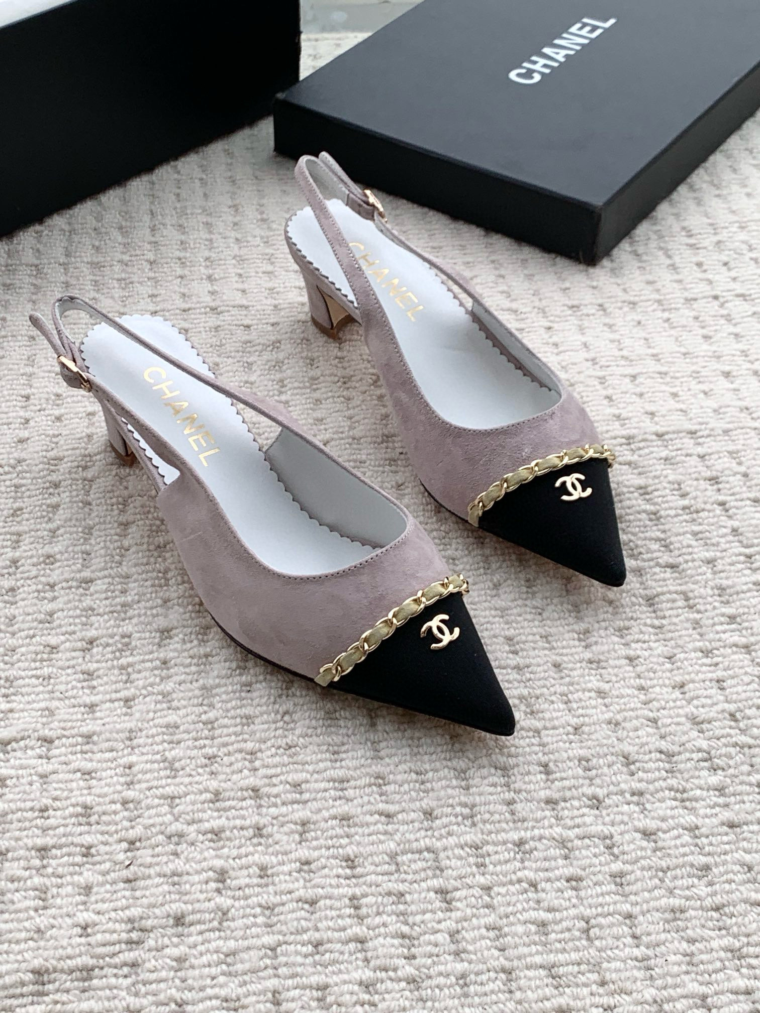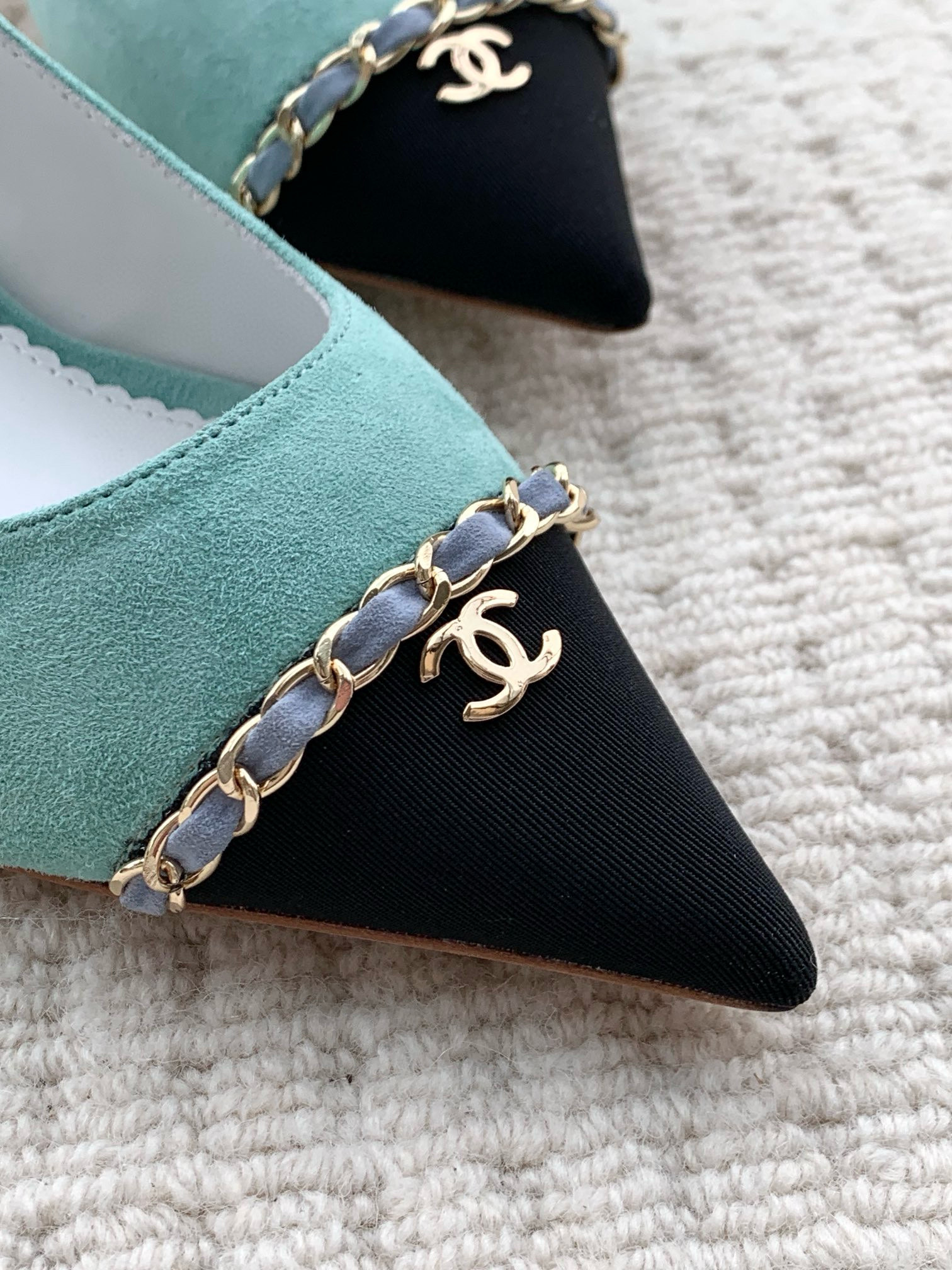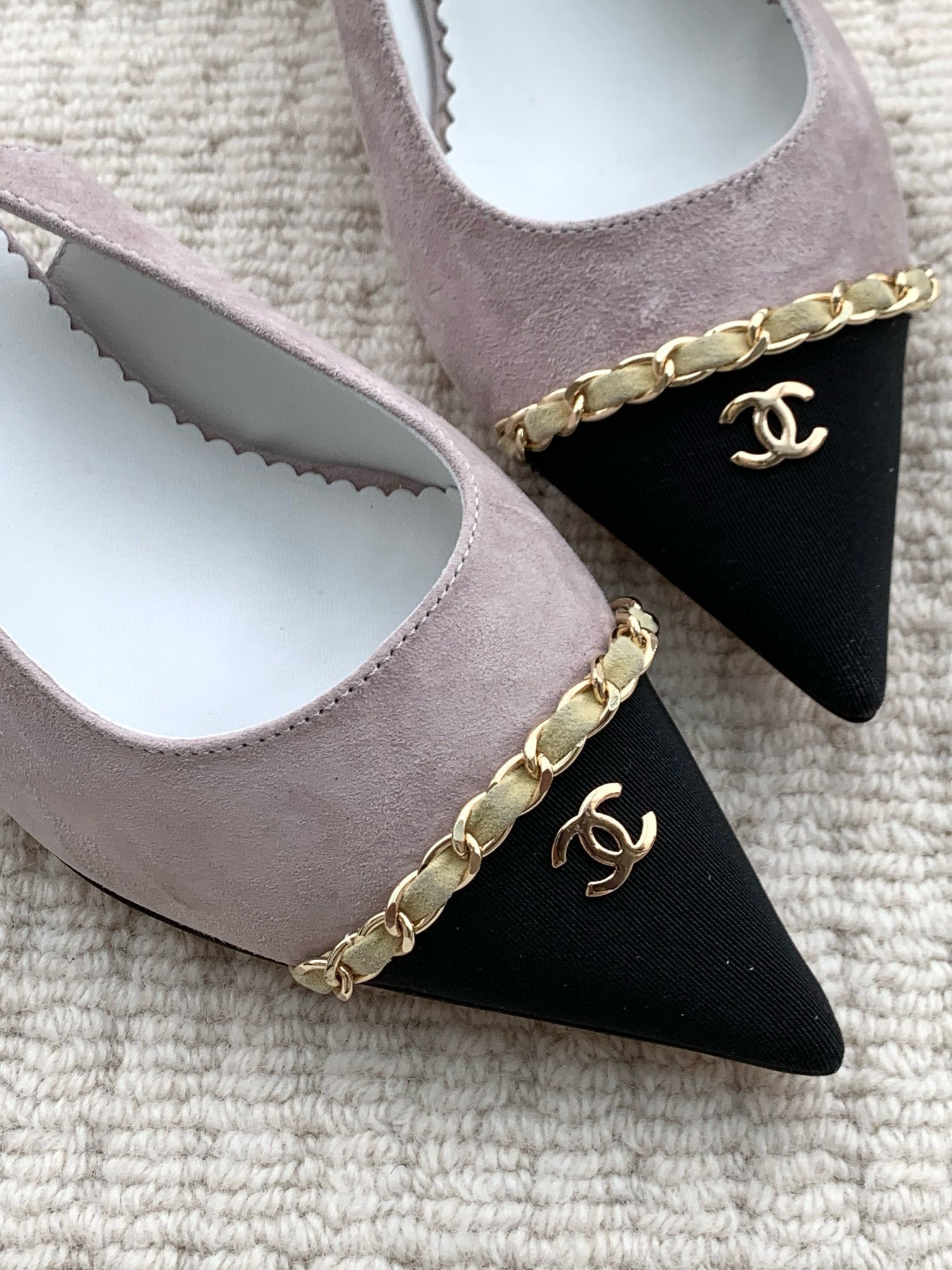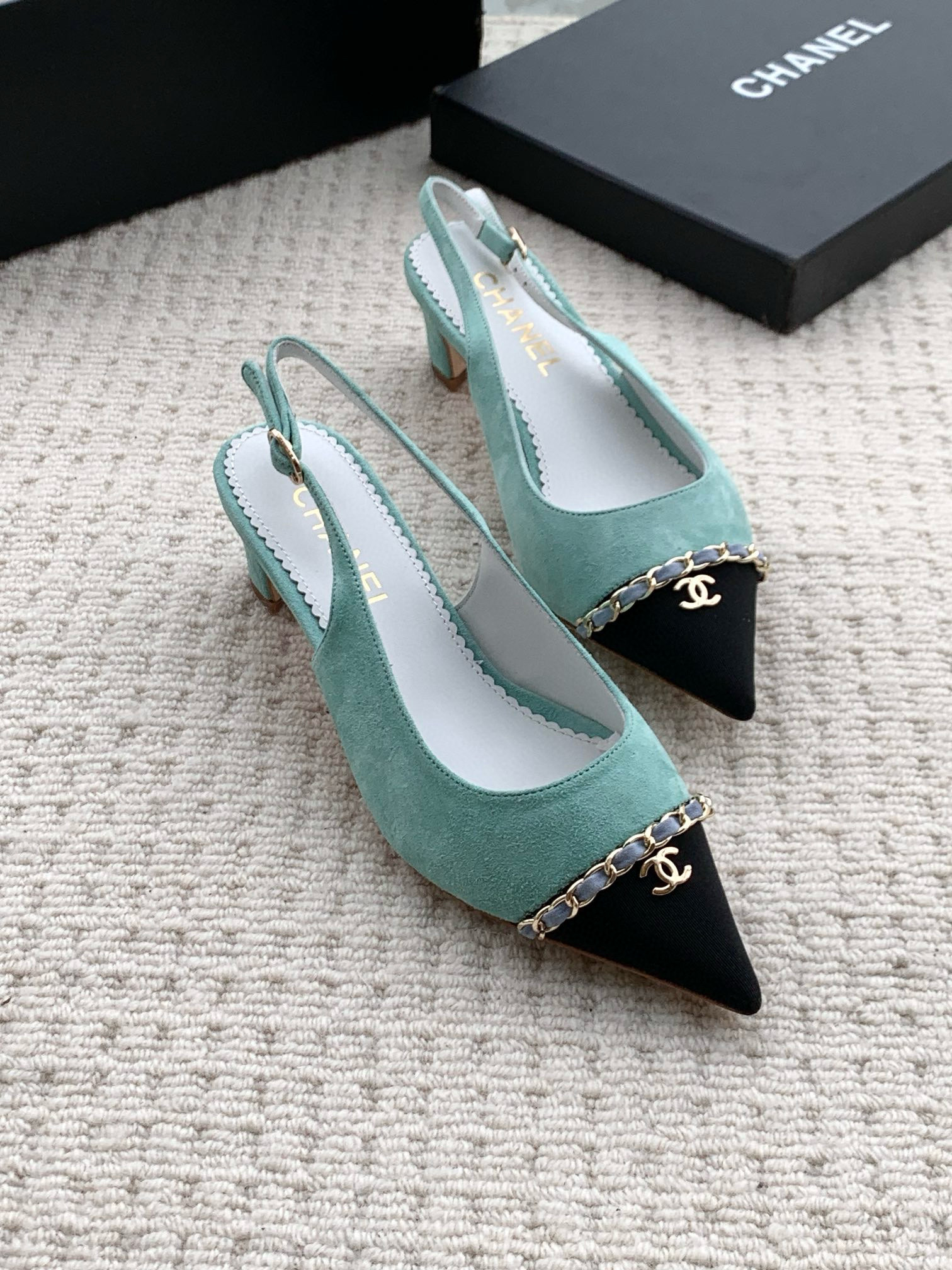 NIGO Chanel Women's Summer Suede Fabric Buckle Pointed Toe Chunky Root High Heels 4.5cm Shoes #nigo98588