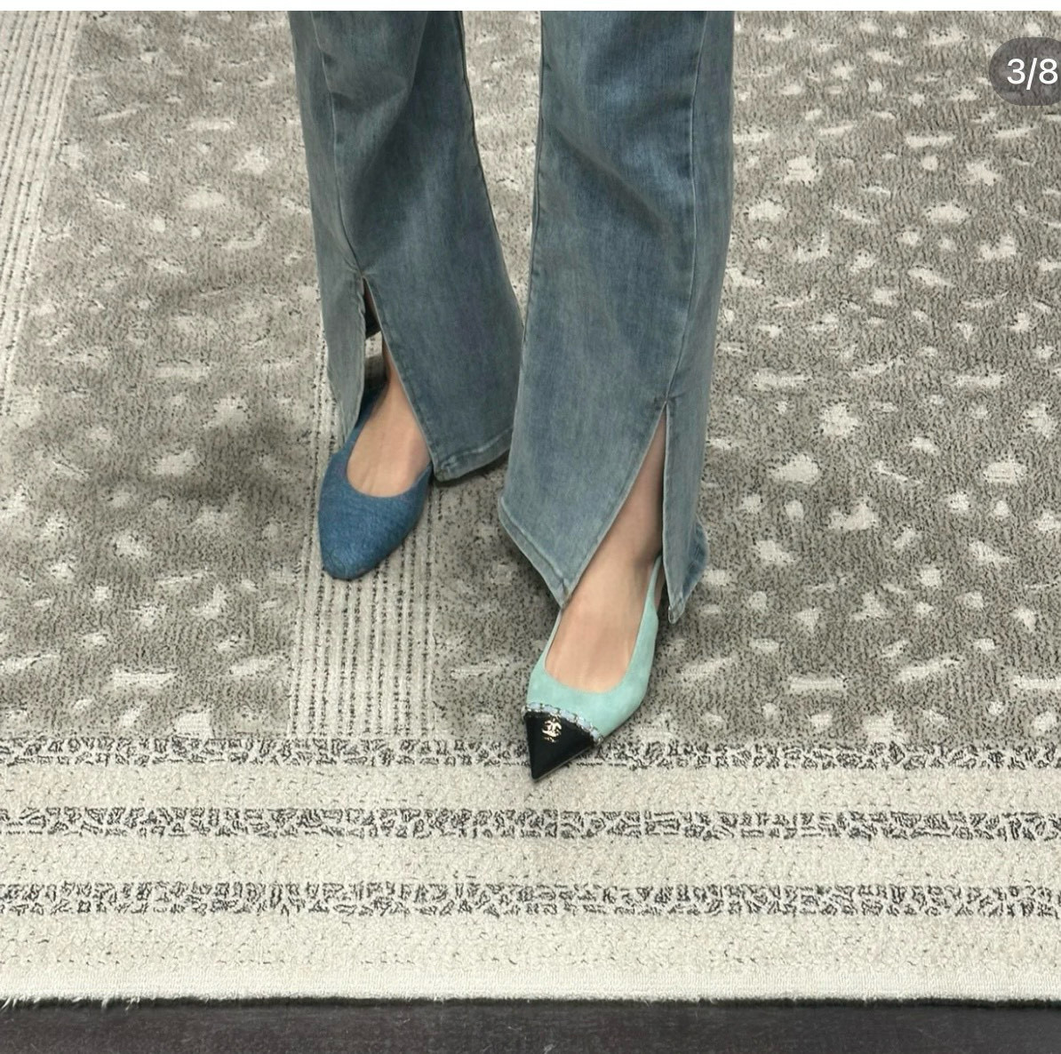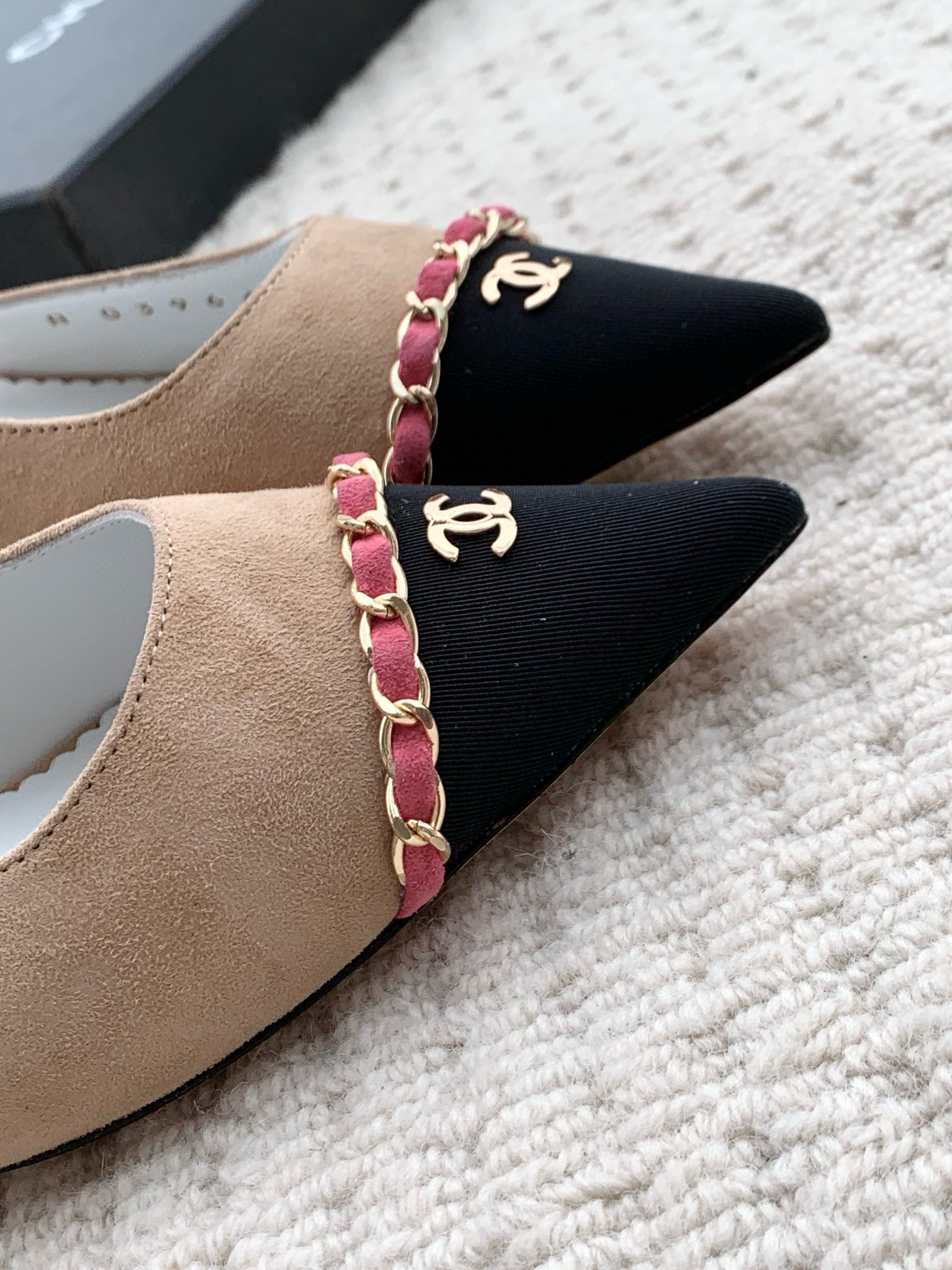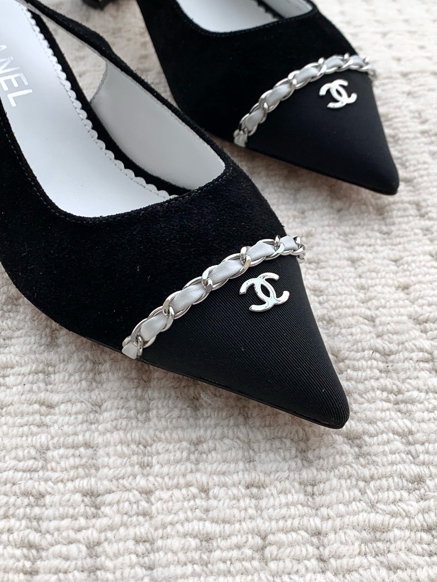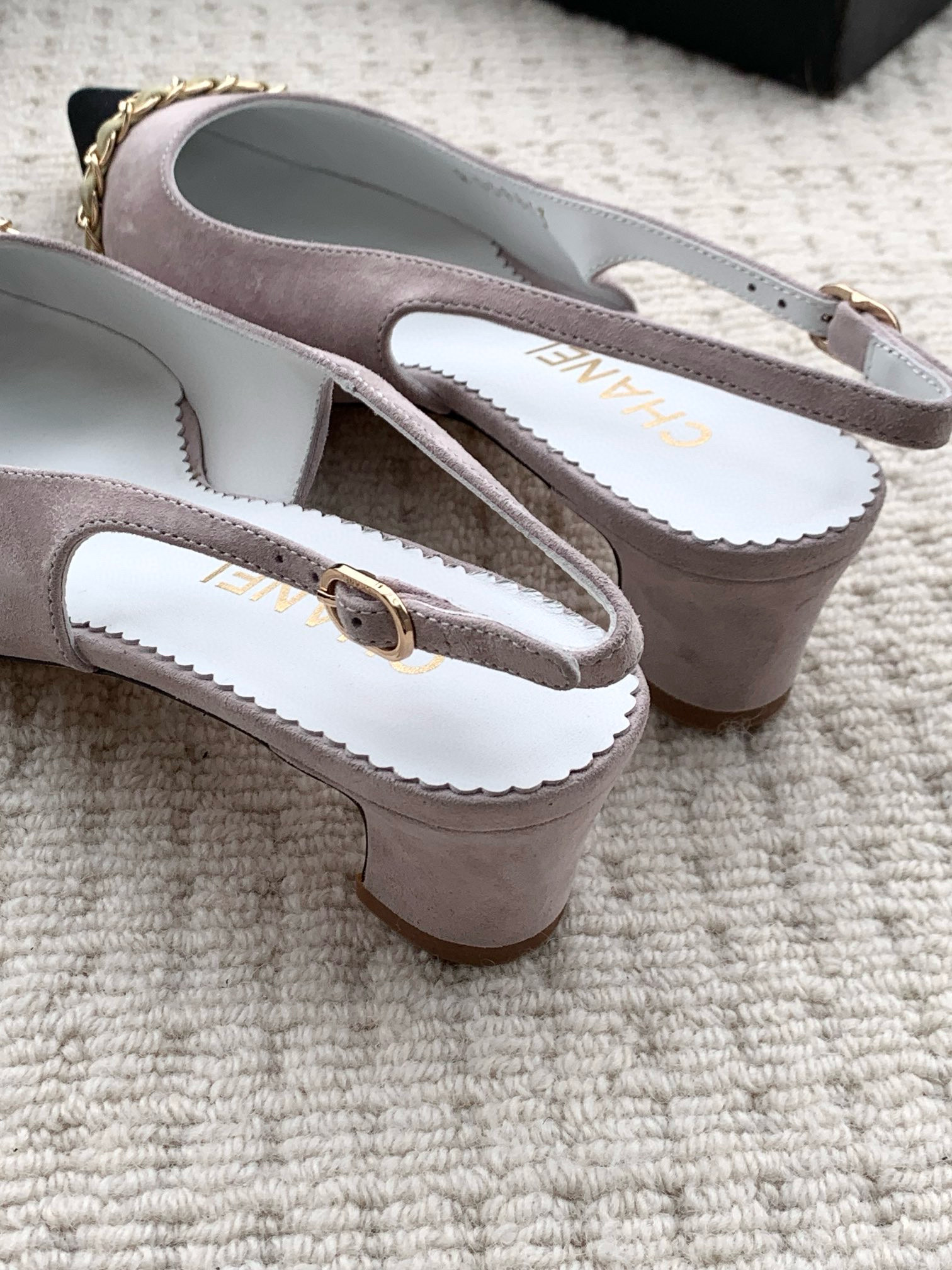 NIGO Chanel Women's Summer Suede Fabric Buckle Pointed Toe Chunky Root High Heels 4.5cm Shoes #nigo98588