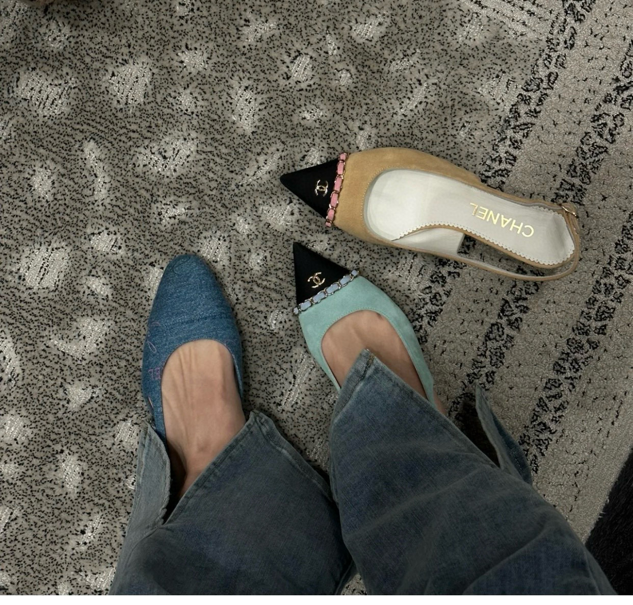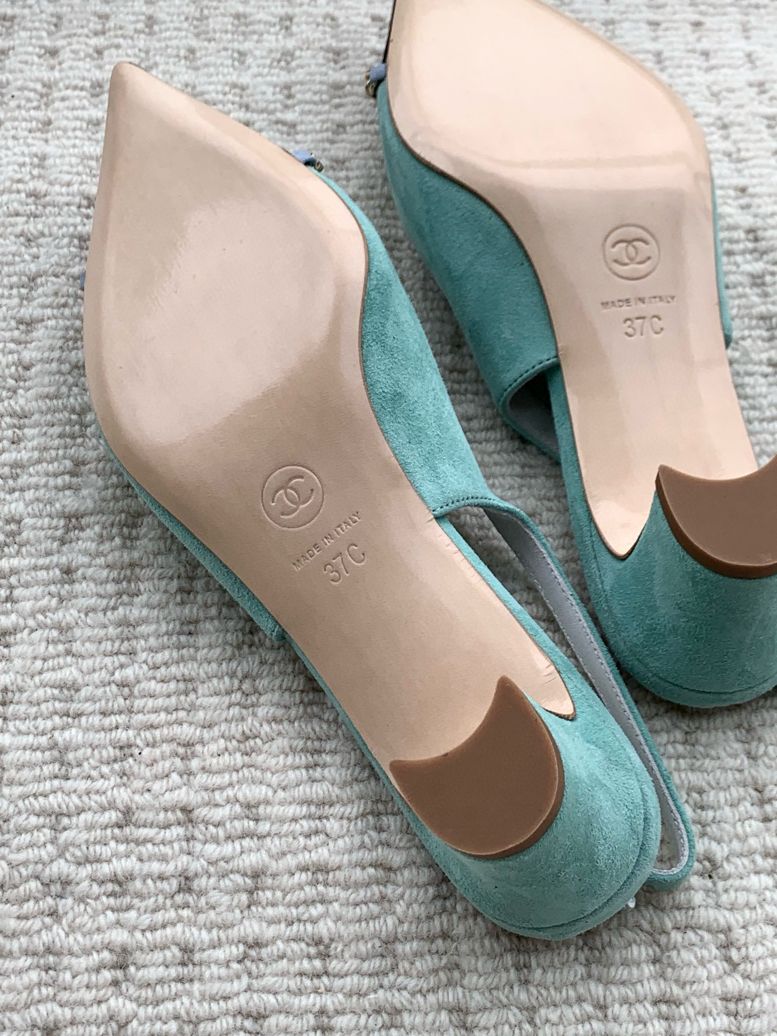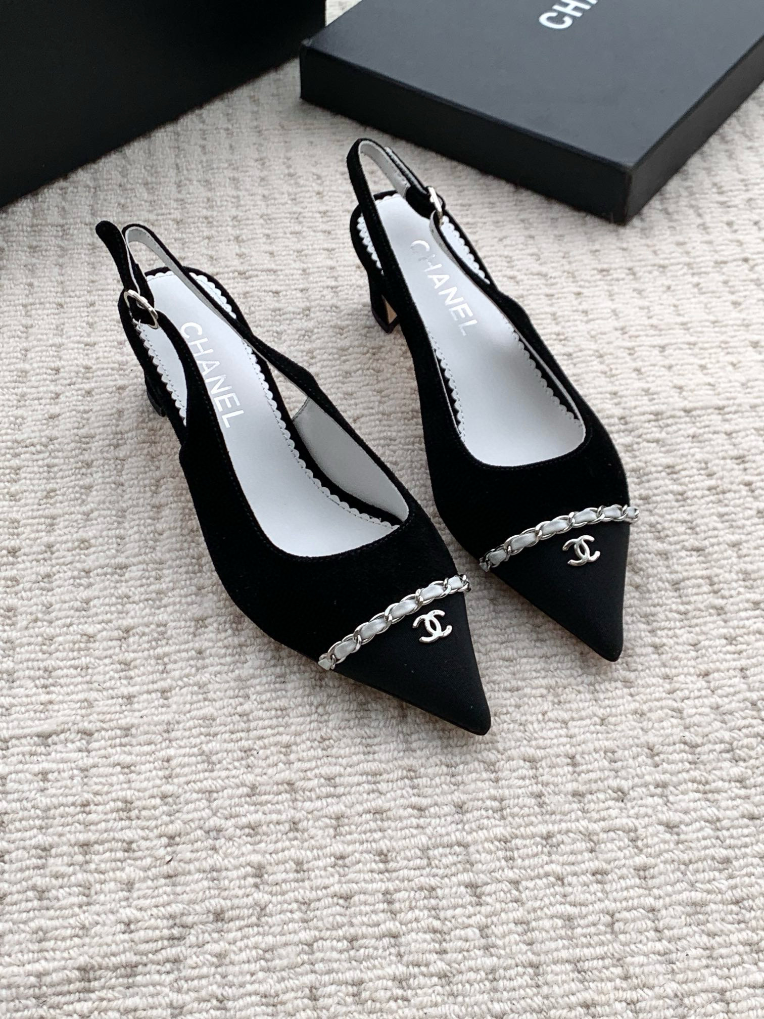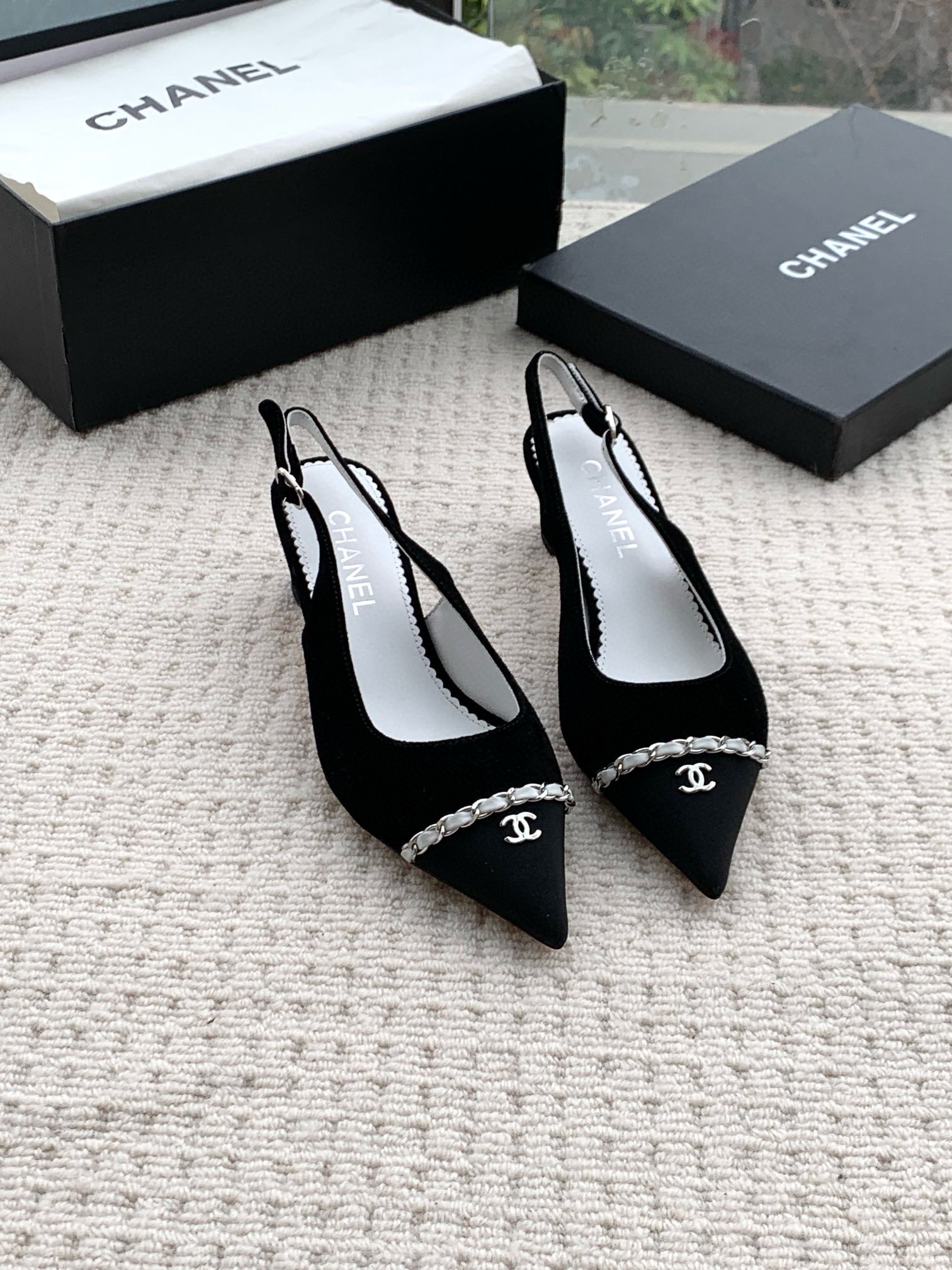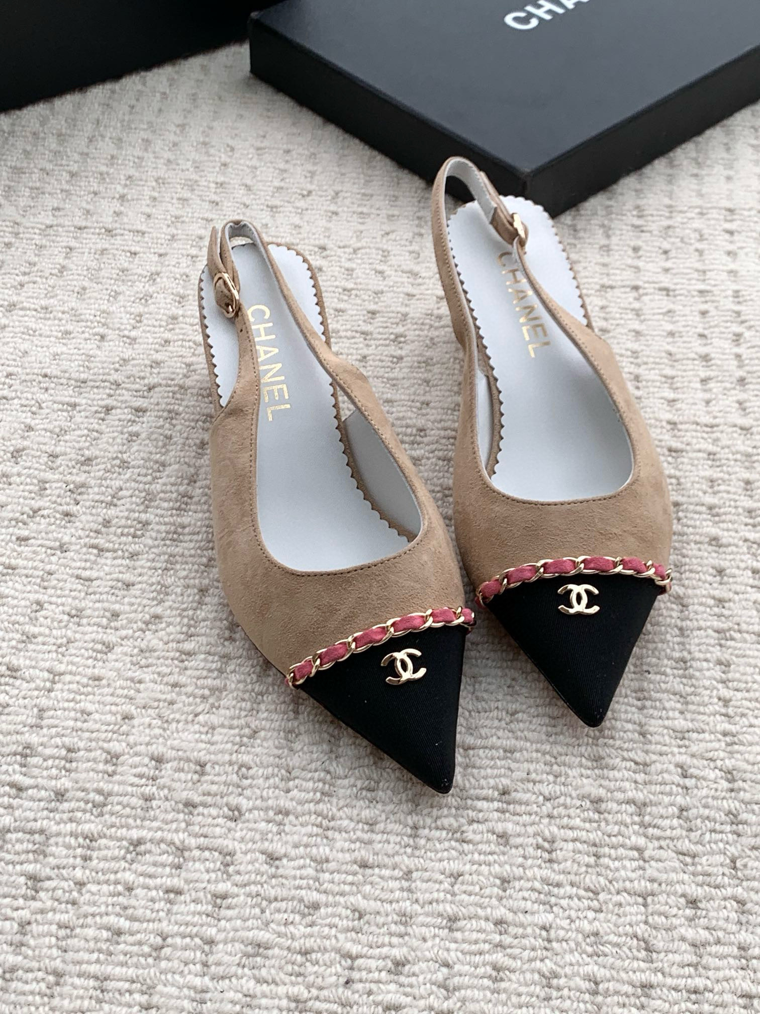 NIGO Chanel Women's Summer Suede Fabric Buckle Pointed Toe Chunky Root High Heels 4.5cm Shoes #nigo98588