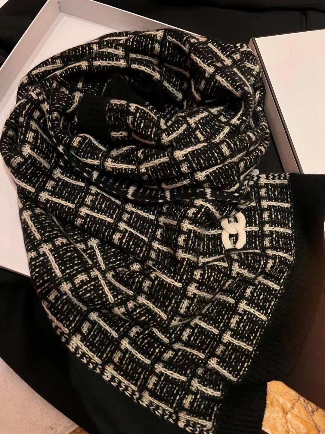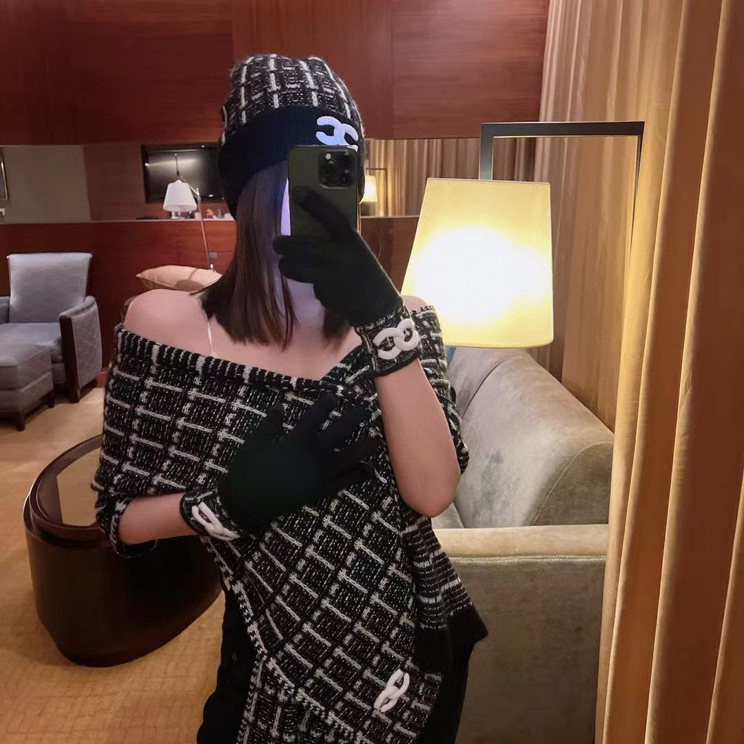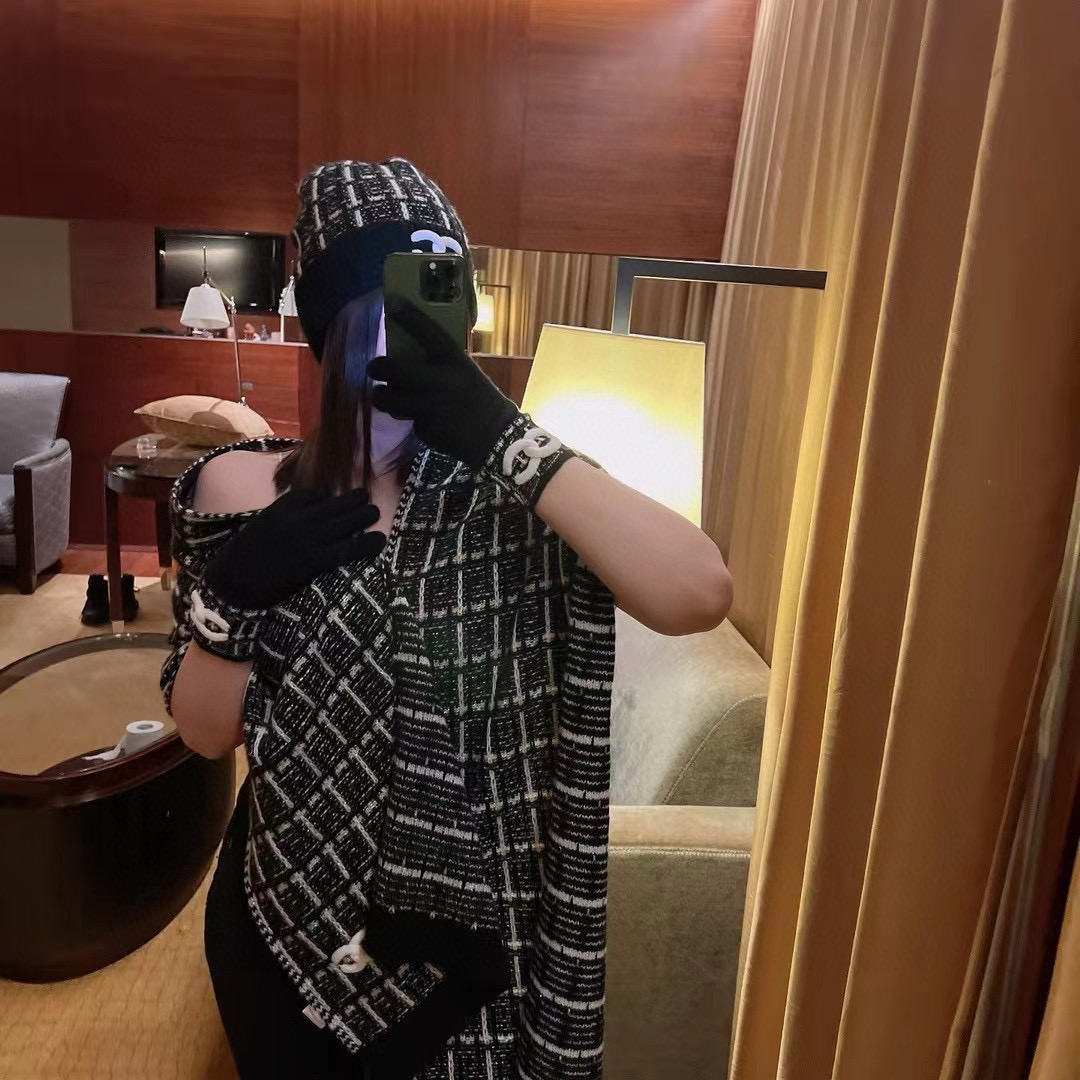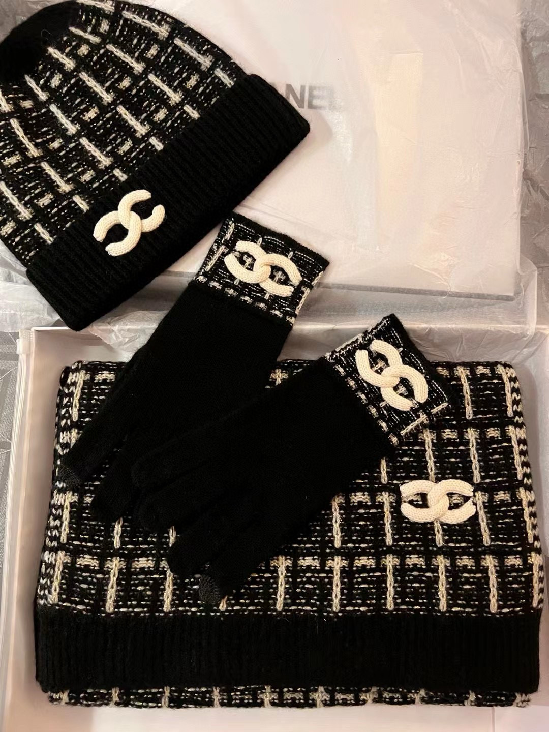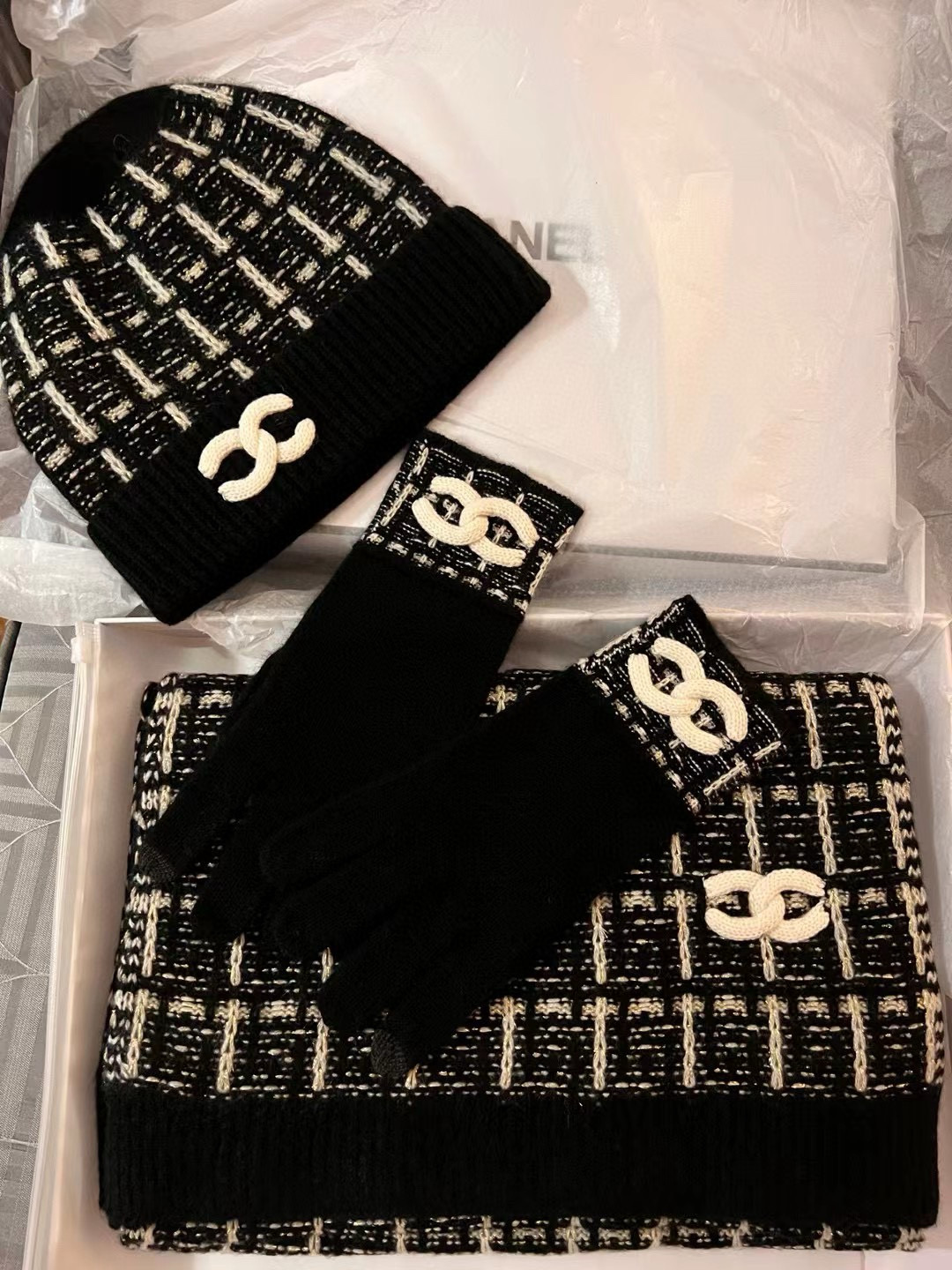NIGO Chanel Women's Winter Black and White Check Wool Hat Gloves Scarf #nigo97725