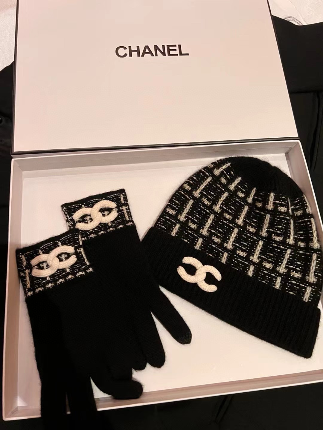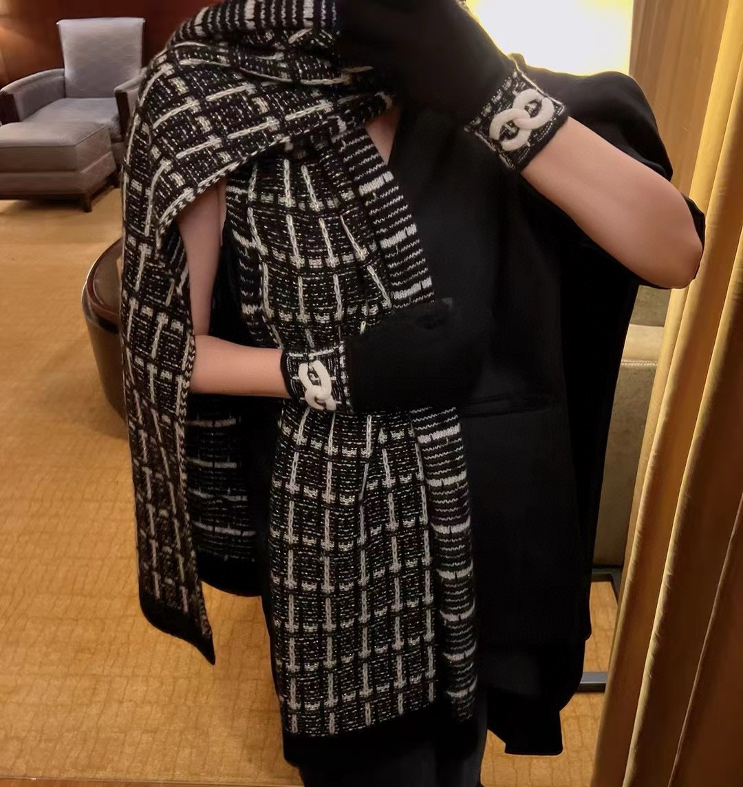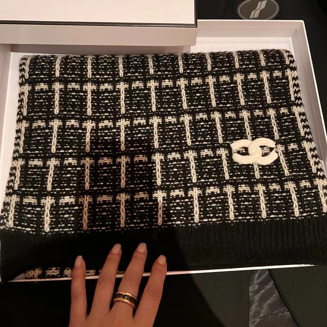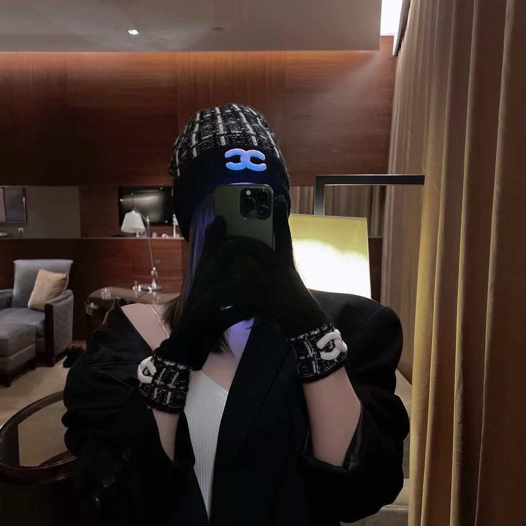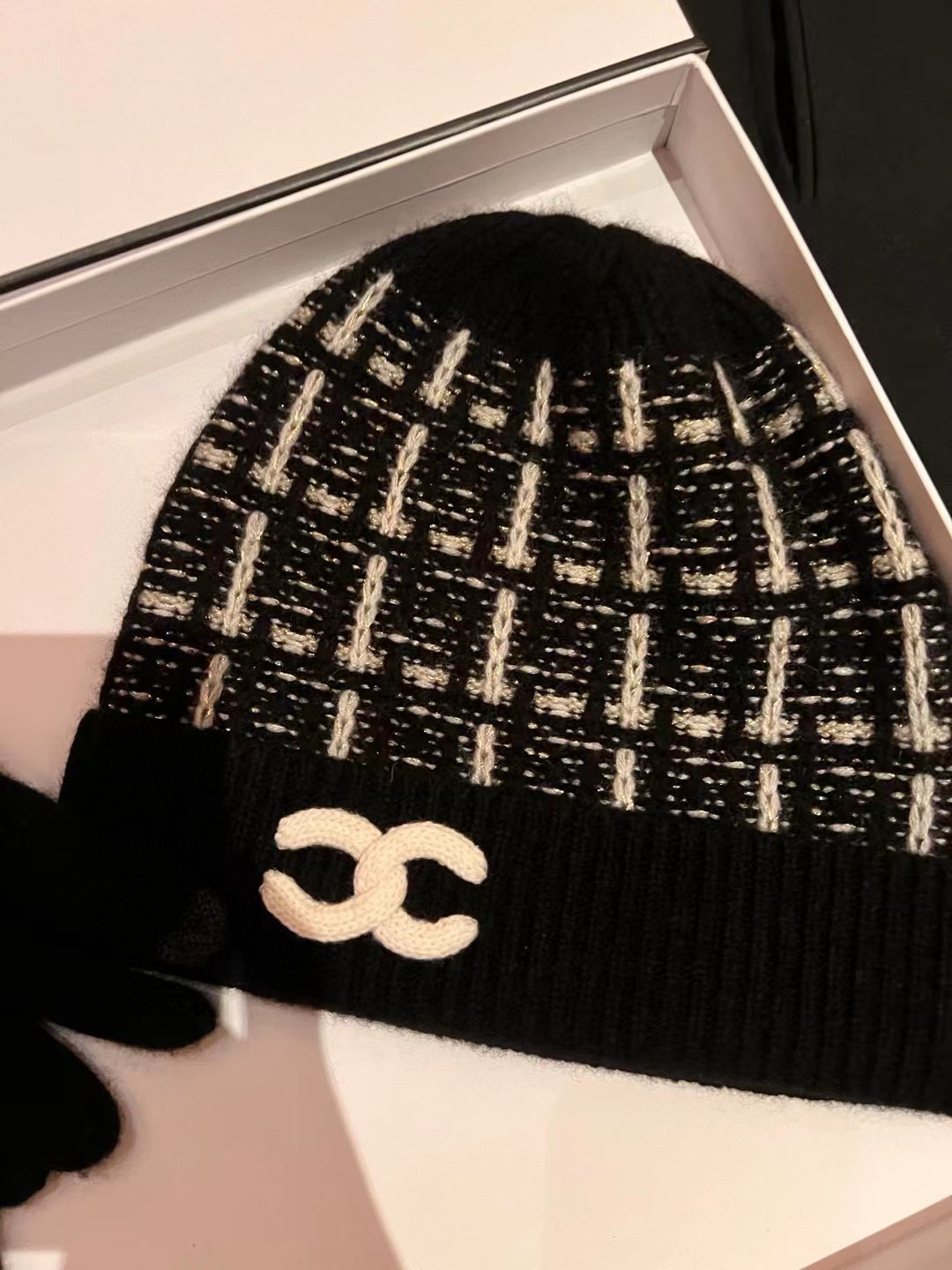 NIGO Chanel Women's Winter Black and White Check Wool Hat Gloves Scarf #nigo97725