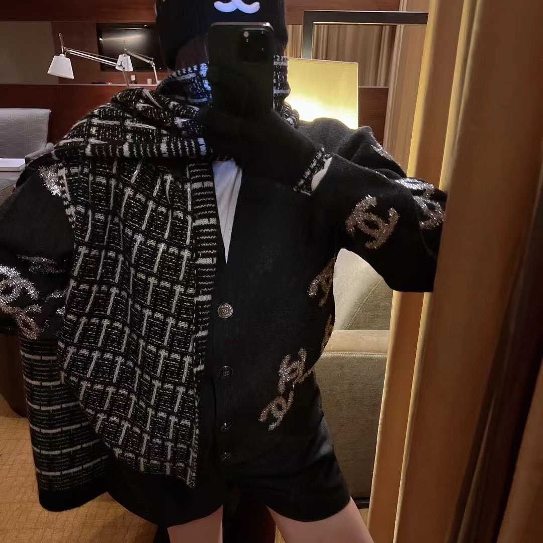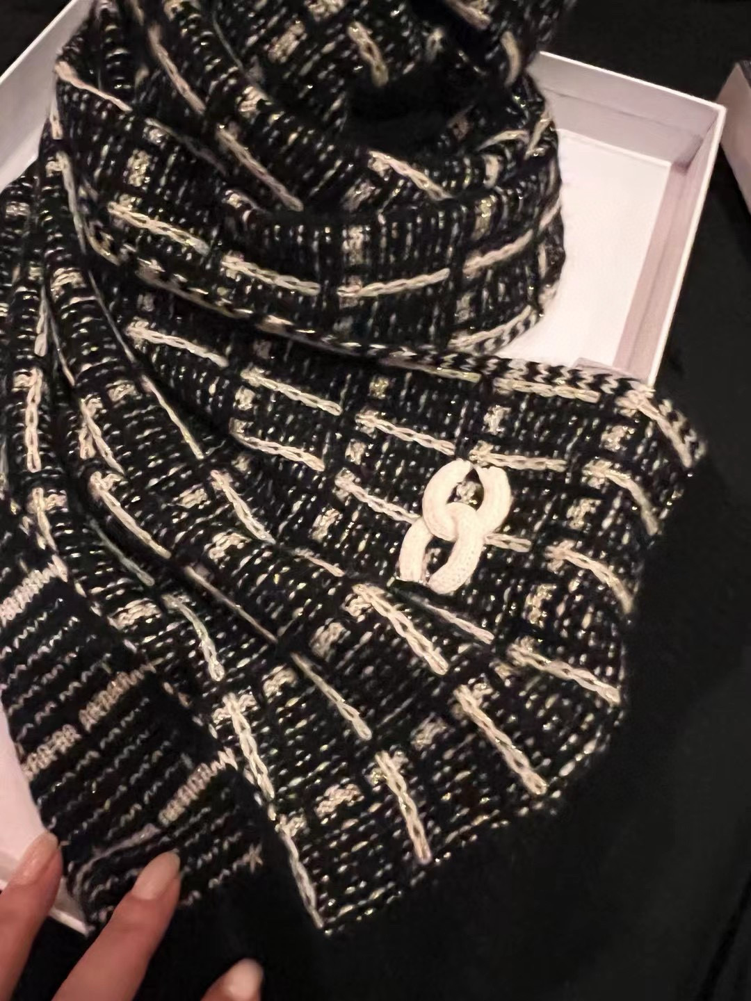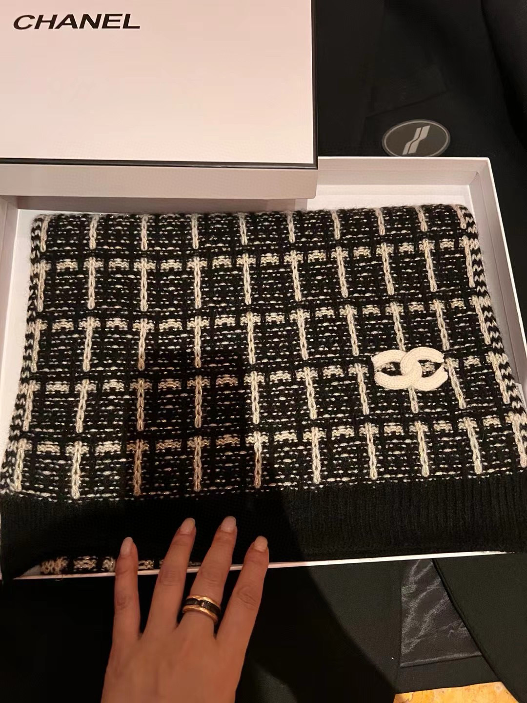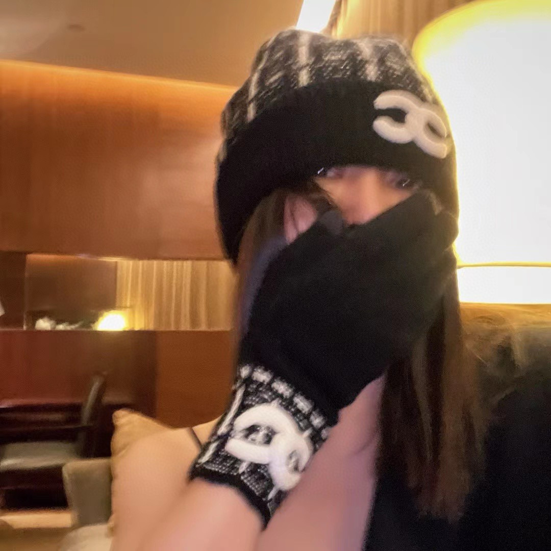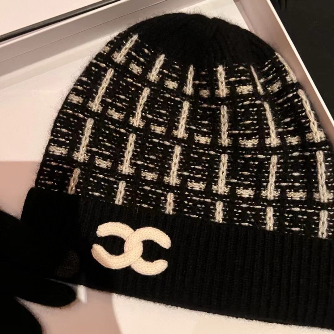 NIGO Chanel Women's Winter Black and White Check Wool Hat Gloves Scarf #nigo97725