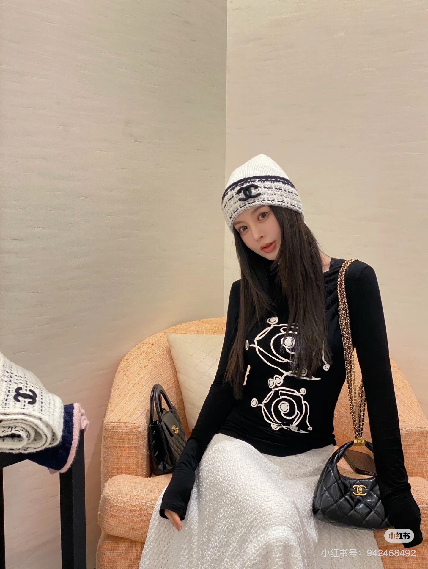 NIGO Chanel Women's Winter Black and White Wool Knit Hat Cap #nigo73139