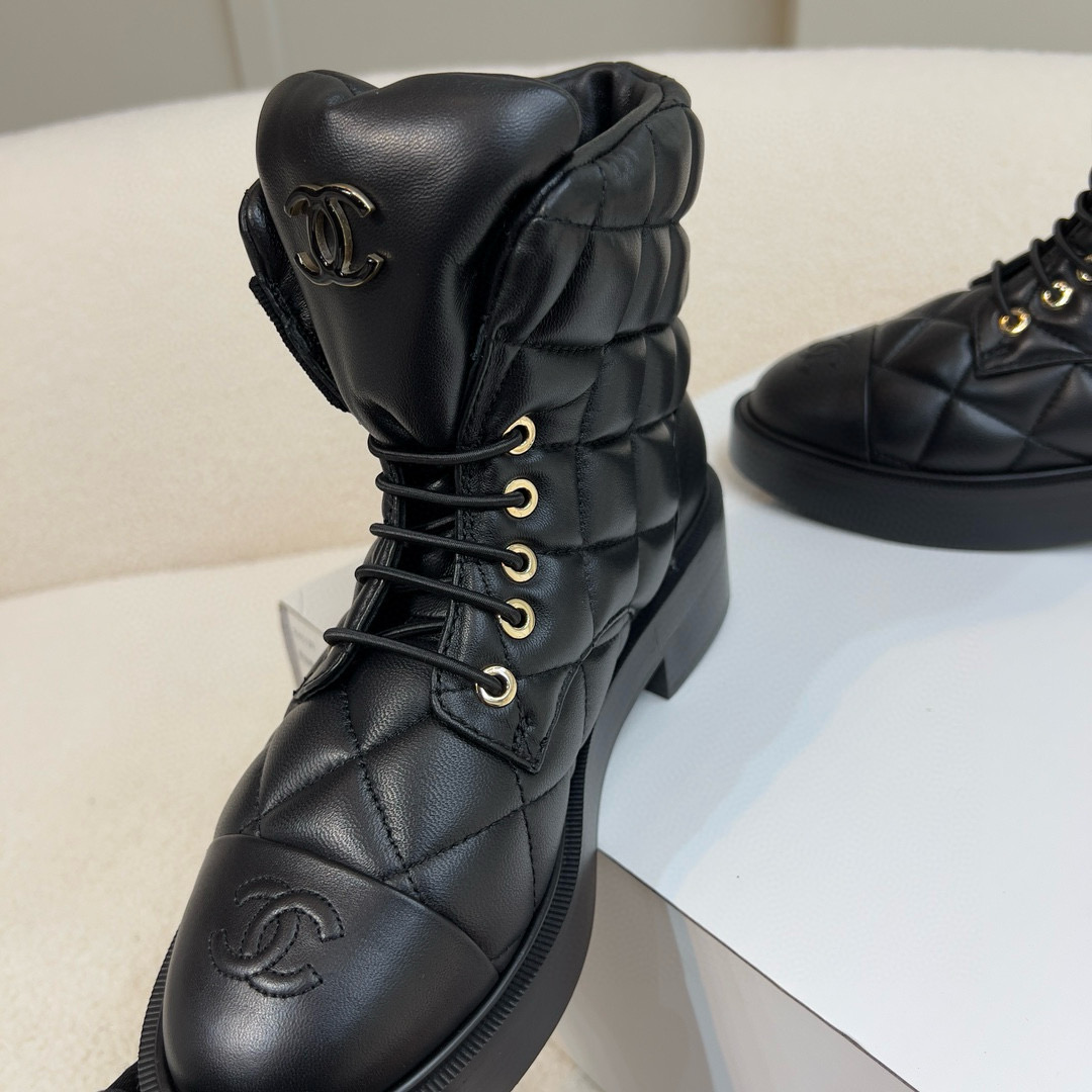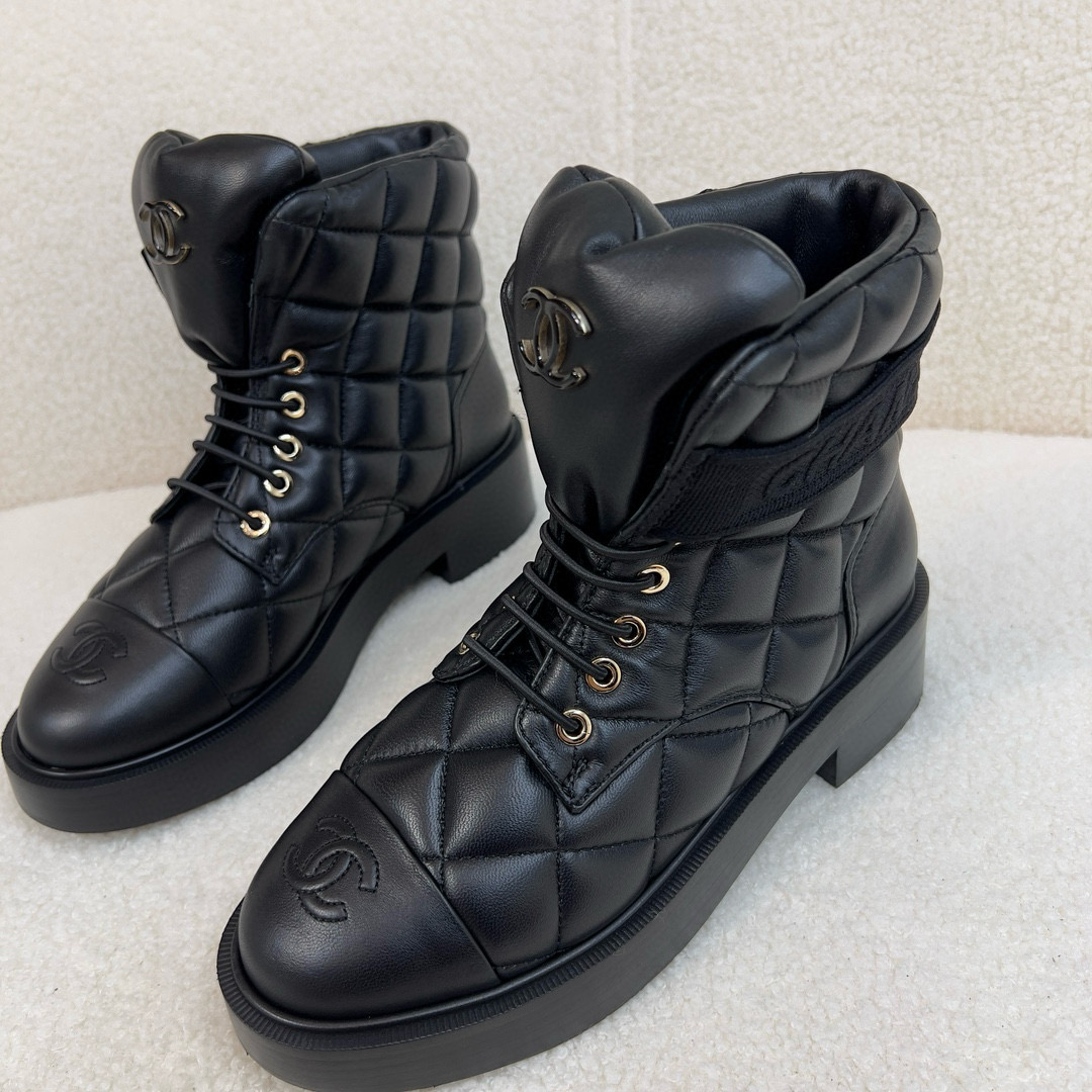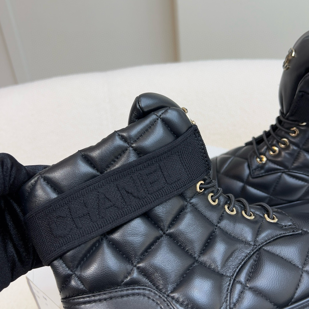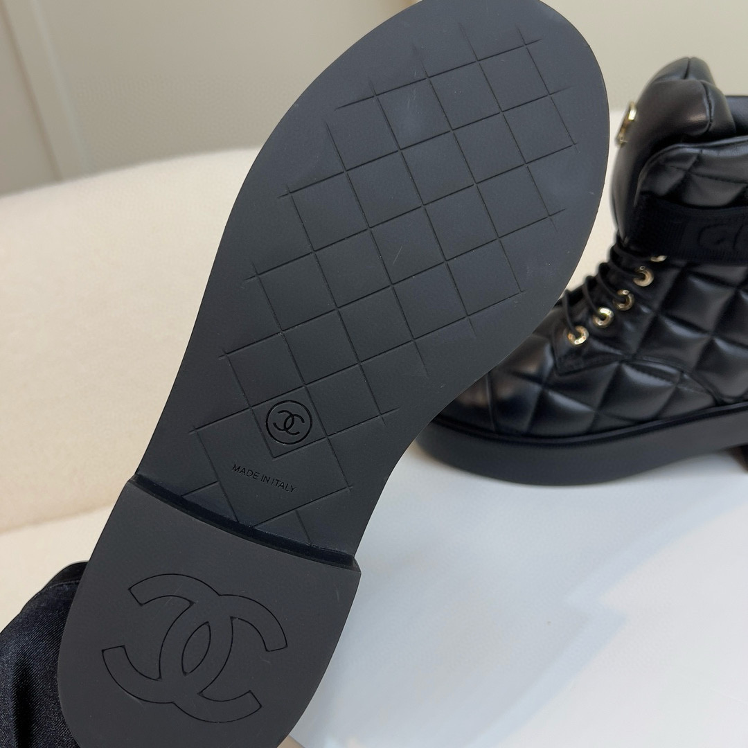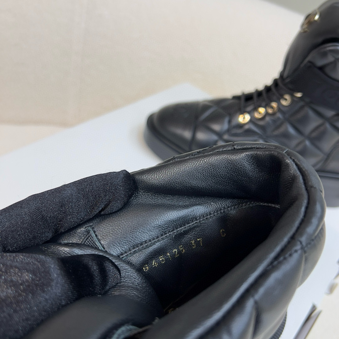 NIGO Chanel Women's Winter Black Leather High Top Lace Up Boots Shoes #nigo97475
