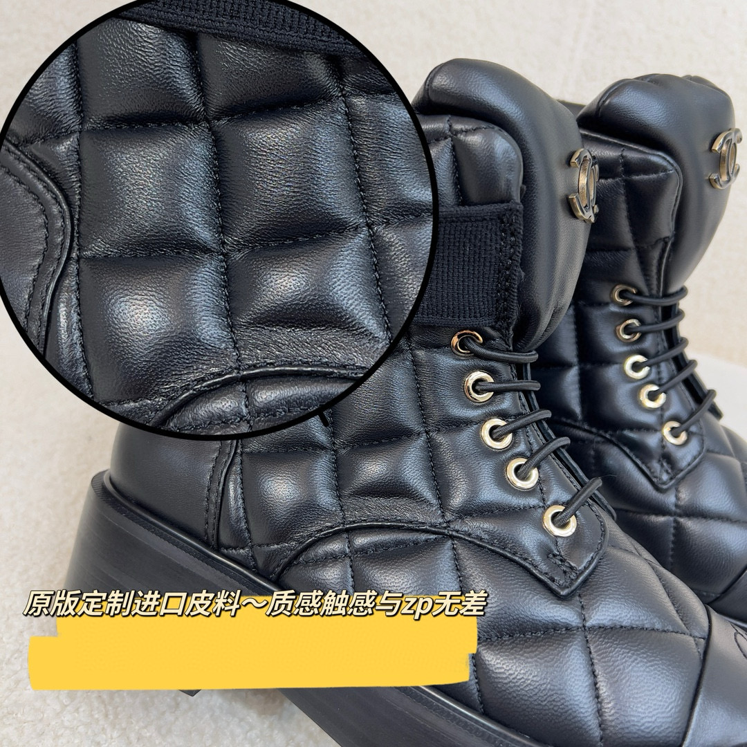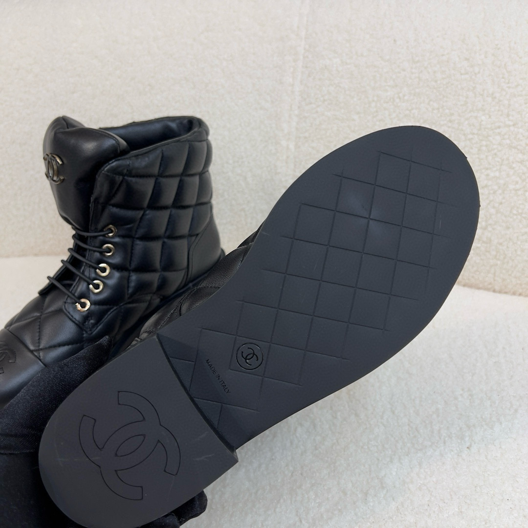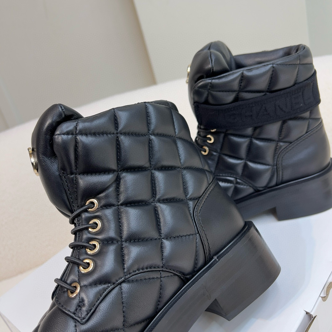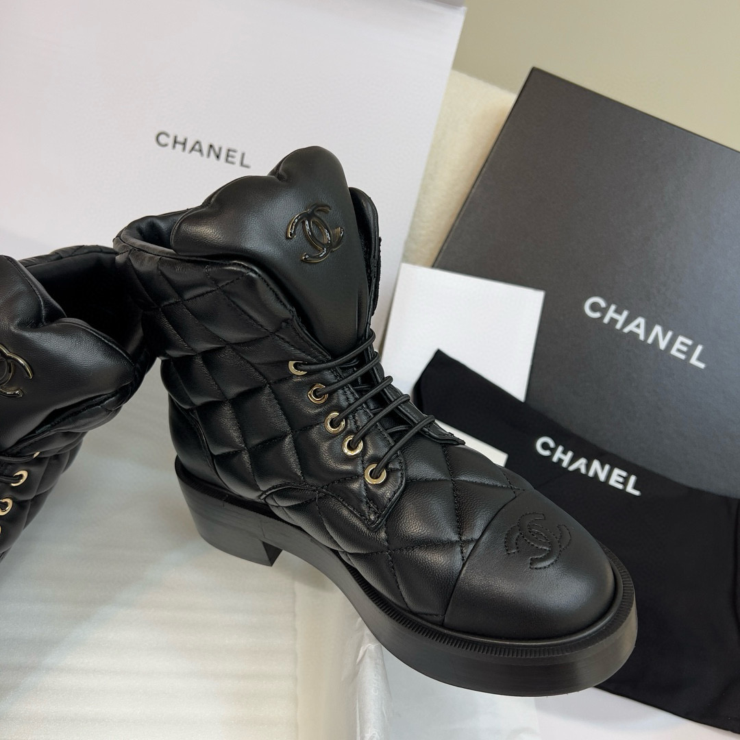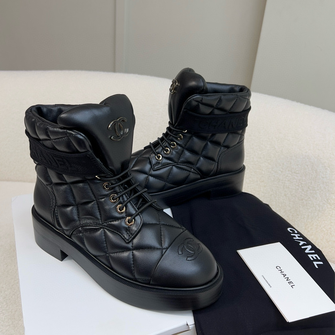 NIGO Chanel Women's Winter Black Leather High Top Lace Up Boots Shoes #nigo97475