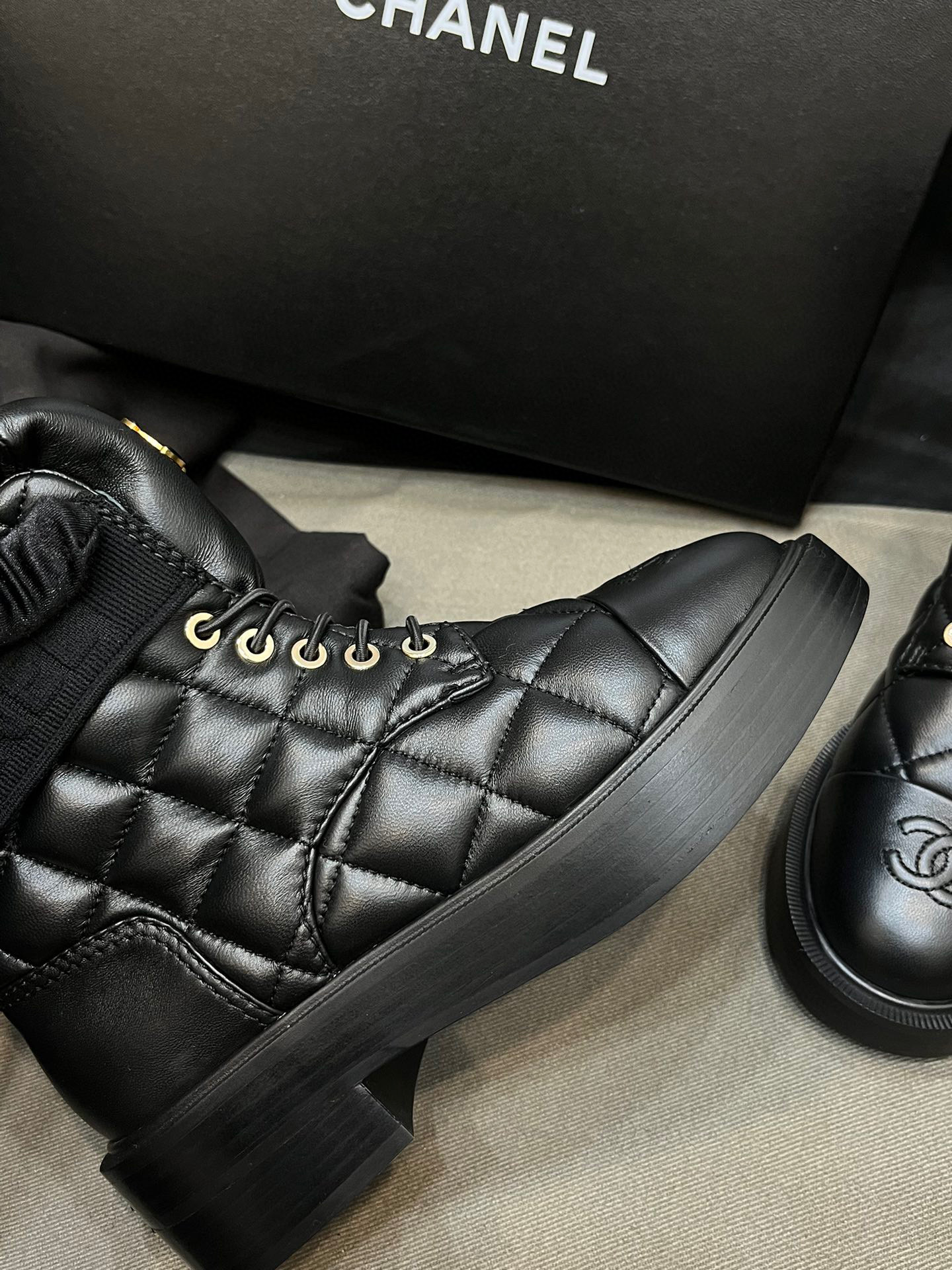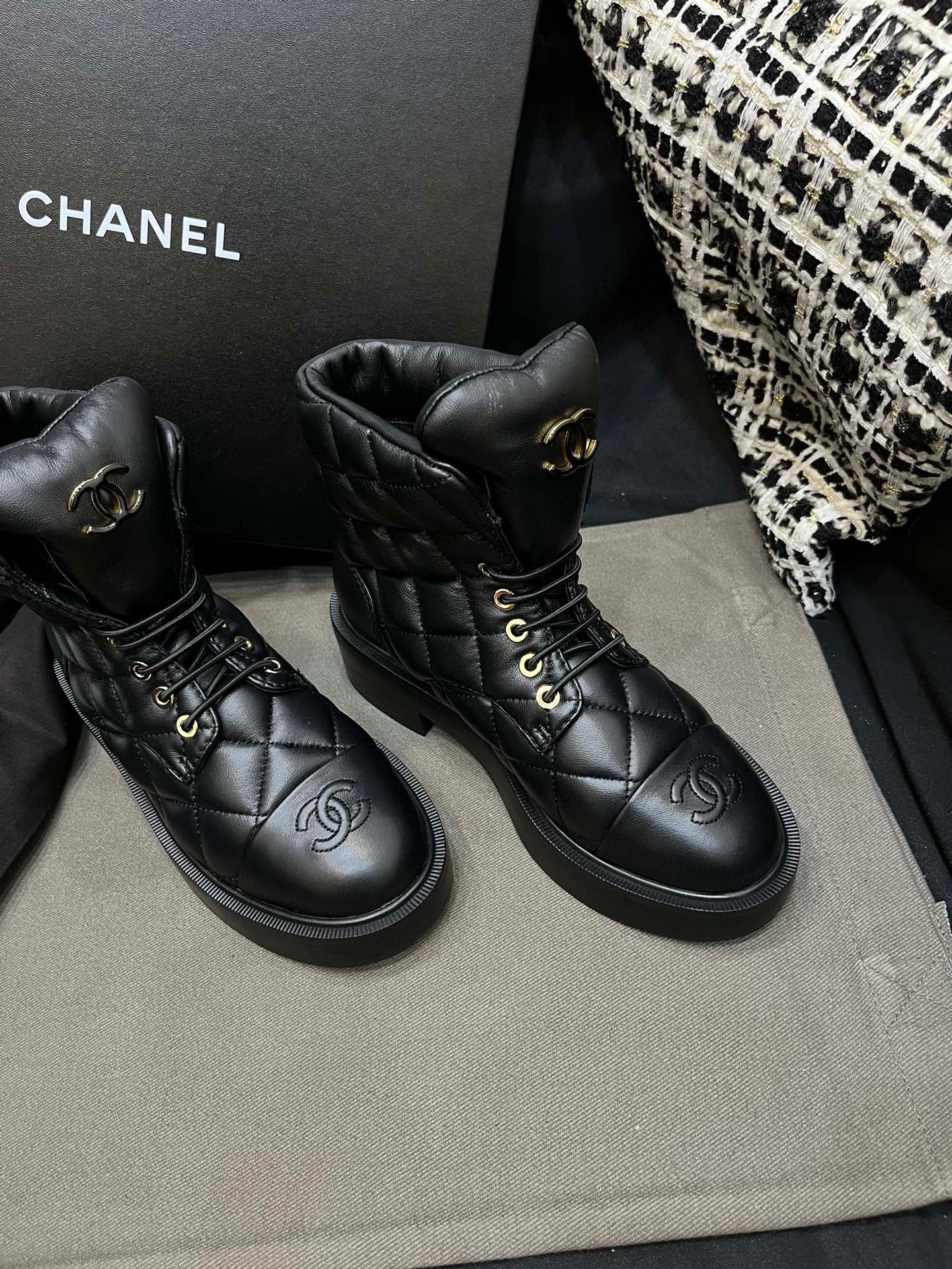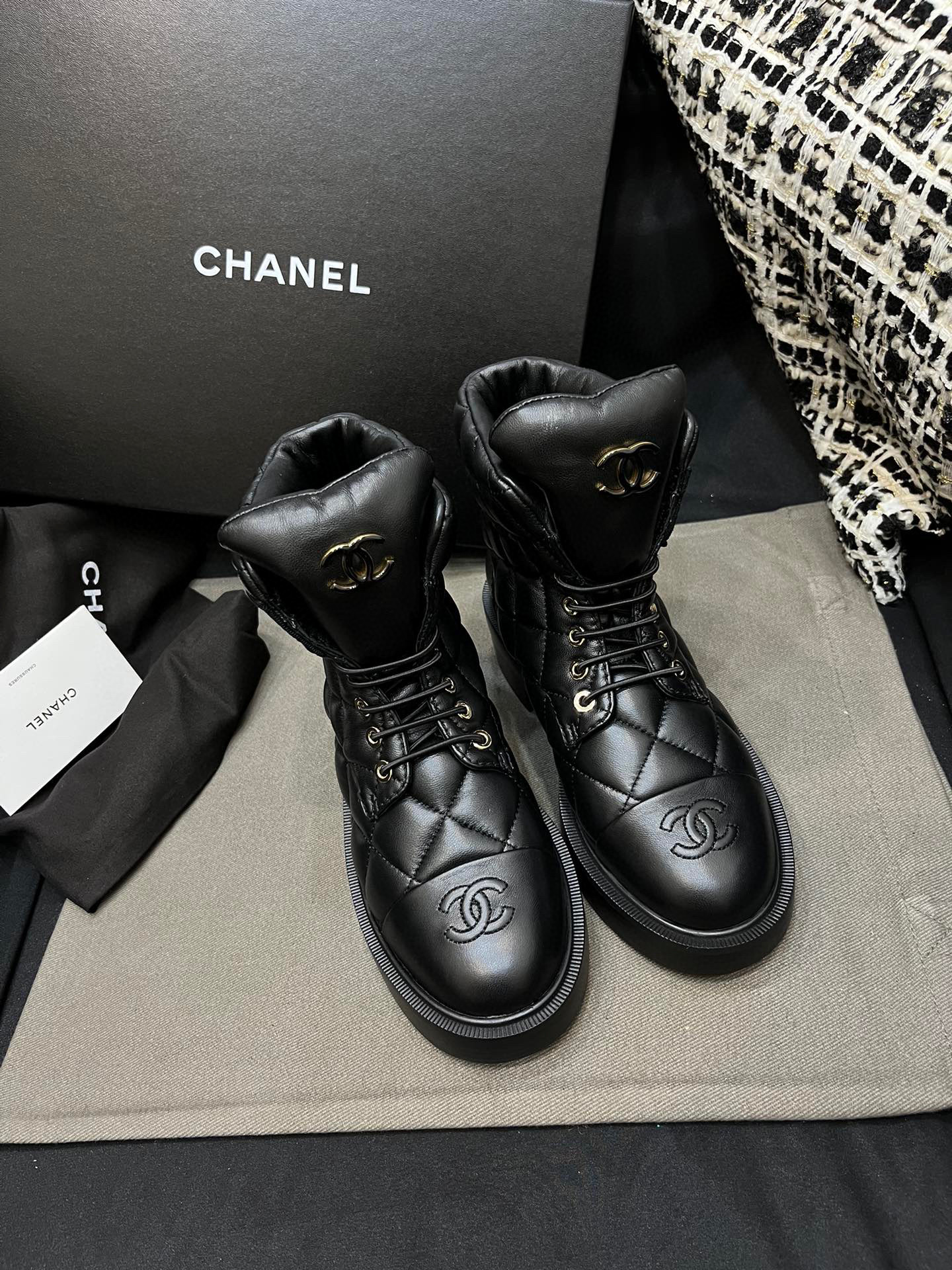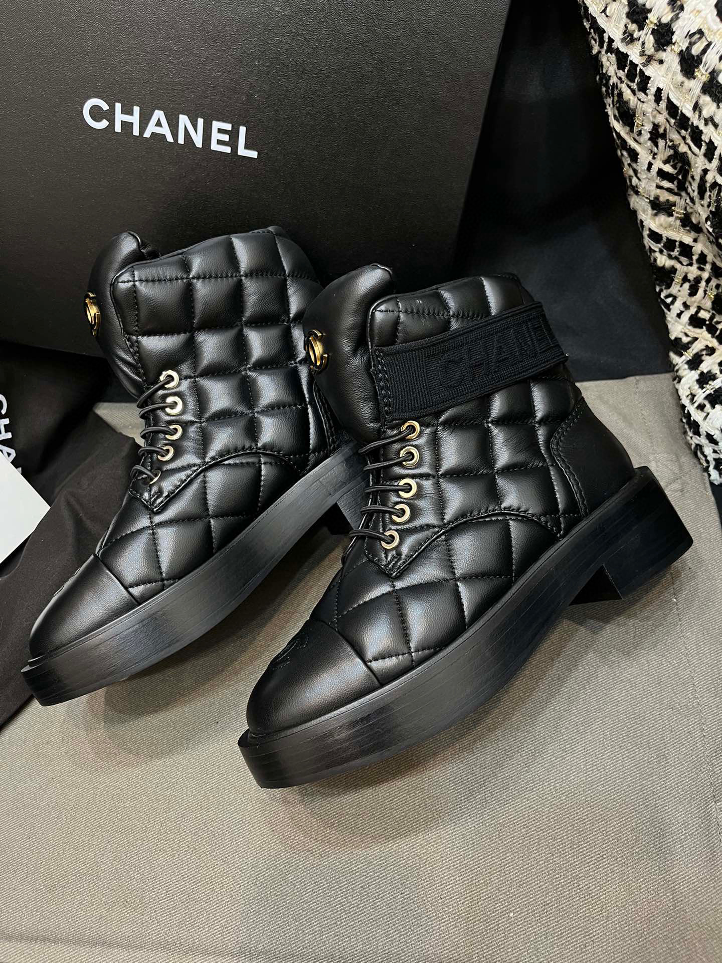 NIGO Chanel Women's Winter Lattice Shape Bread Leather Boots Shoes #nigo96981