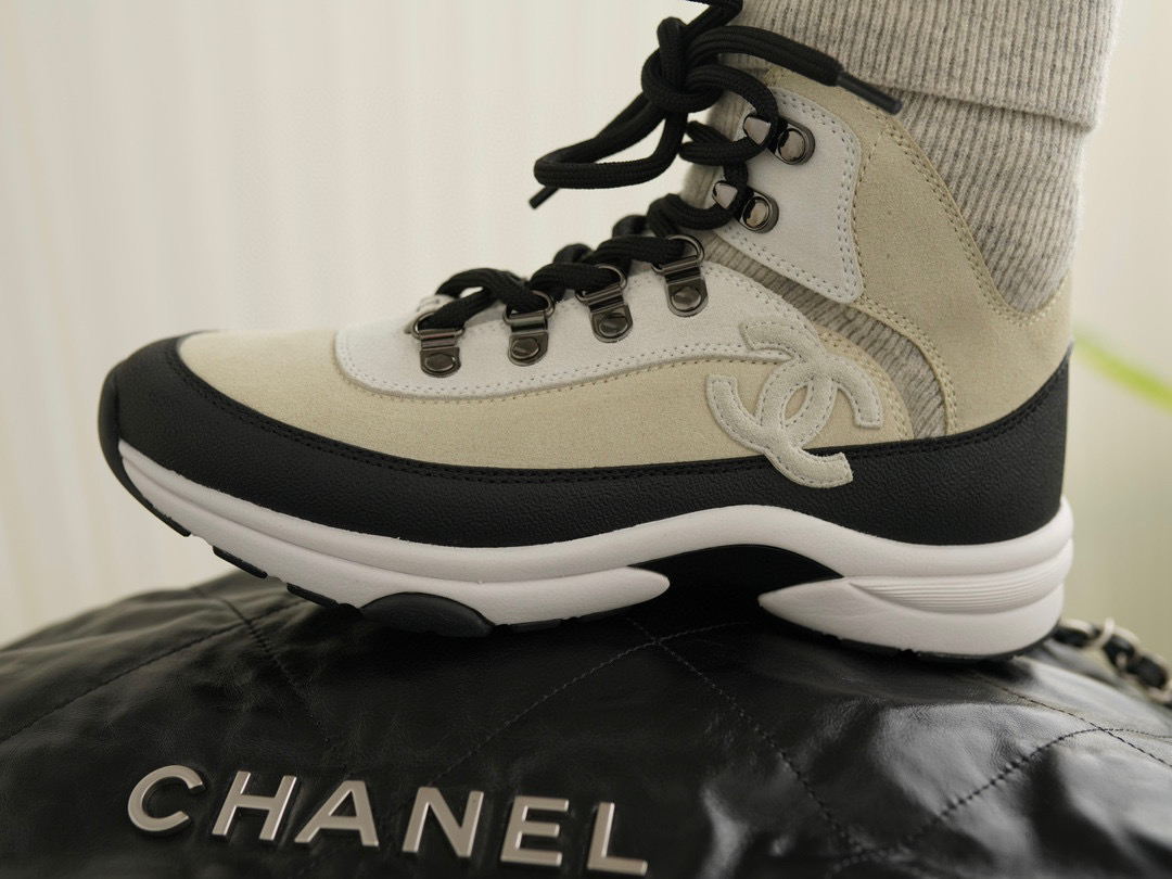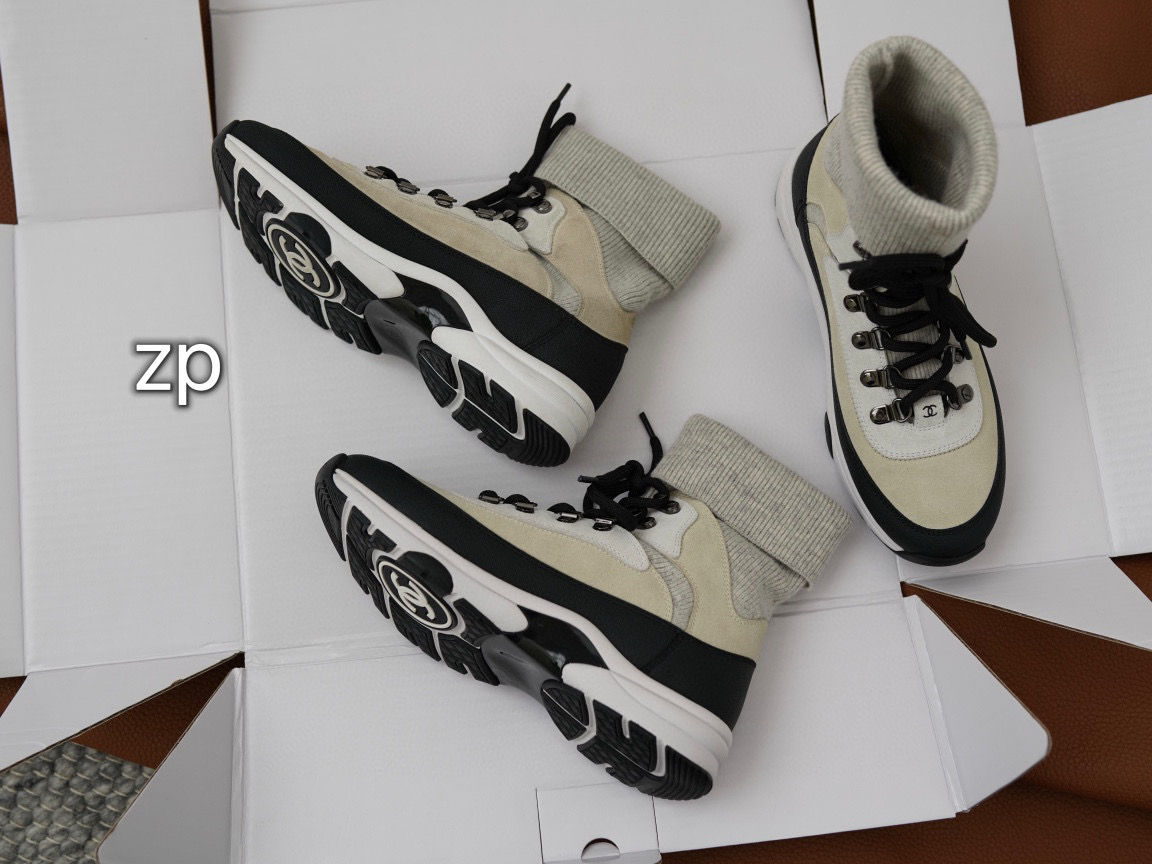 NIGO Chanel Women's Winter Suede Effect Calfskin Knit High Top Sneakers Shoes #nigo96885