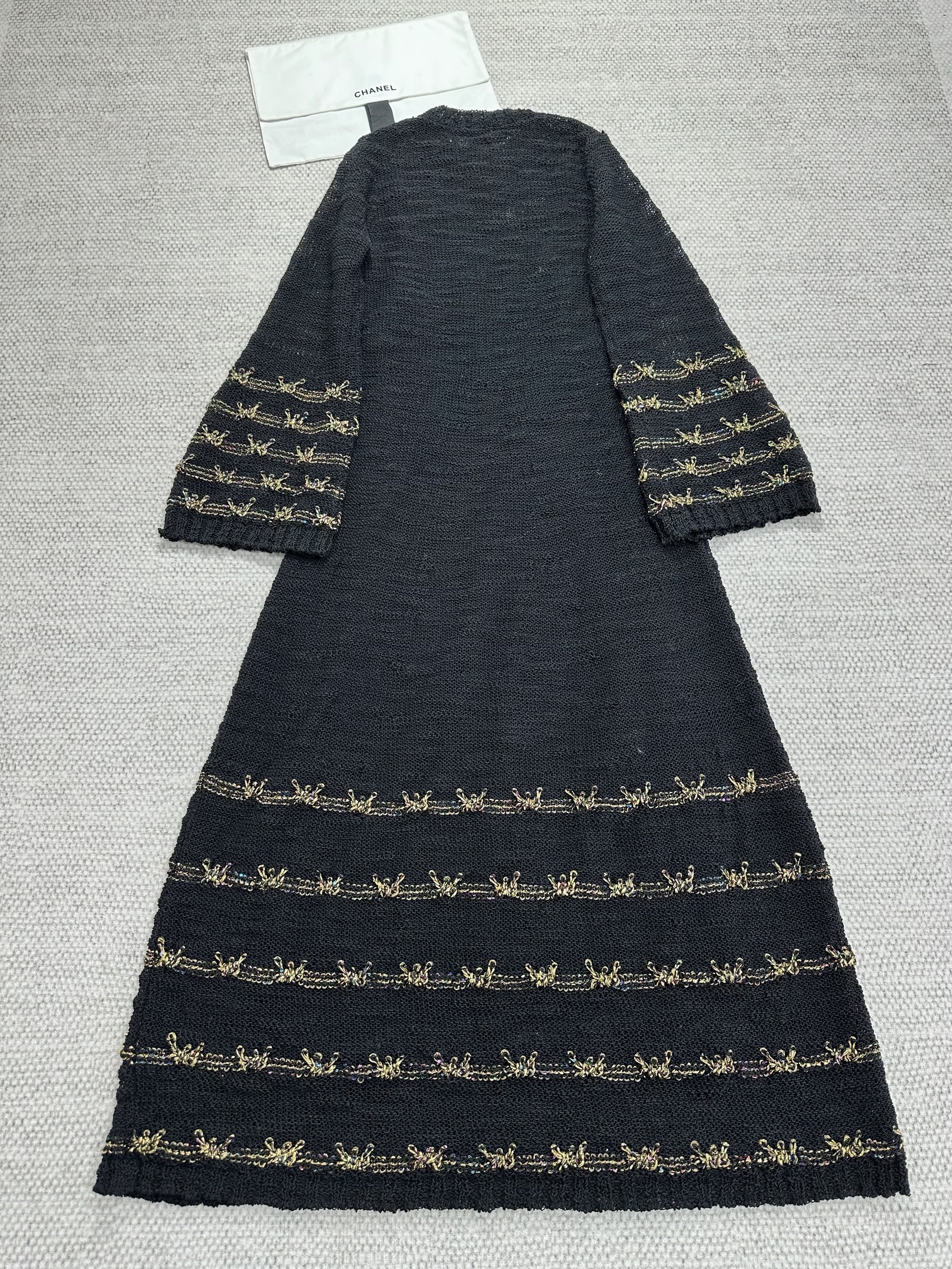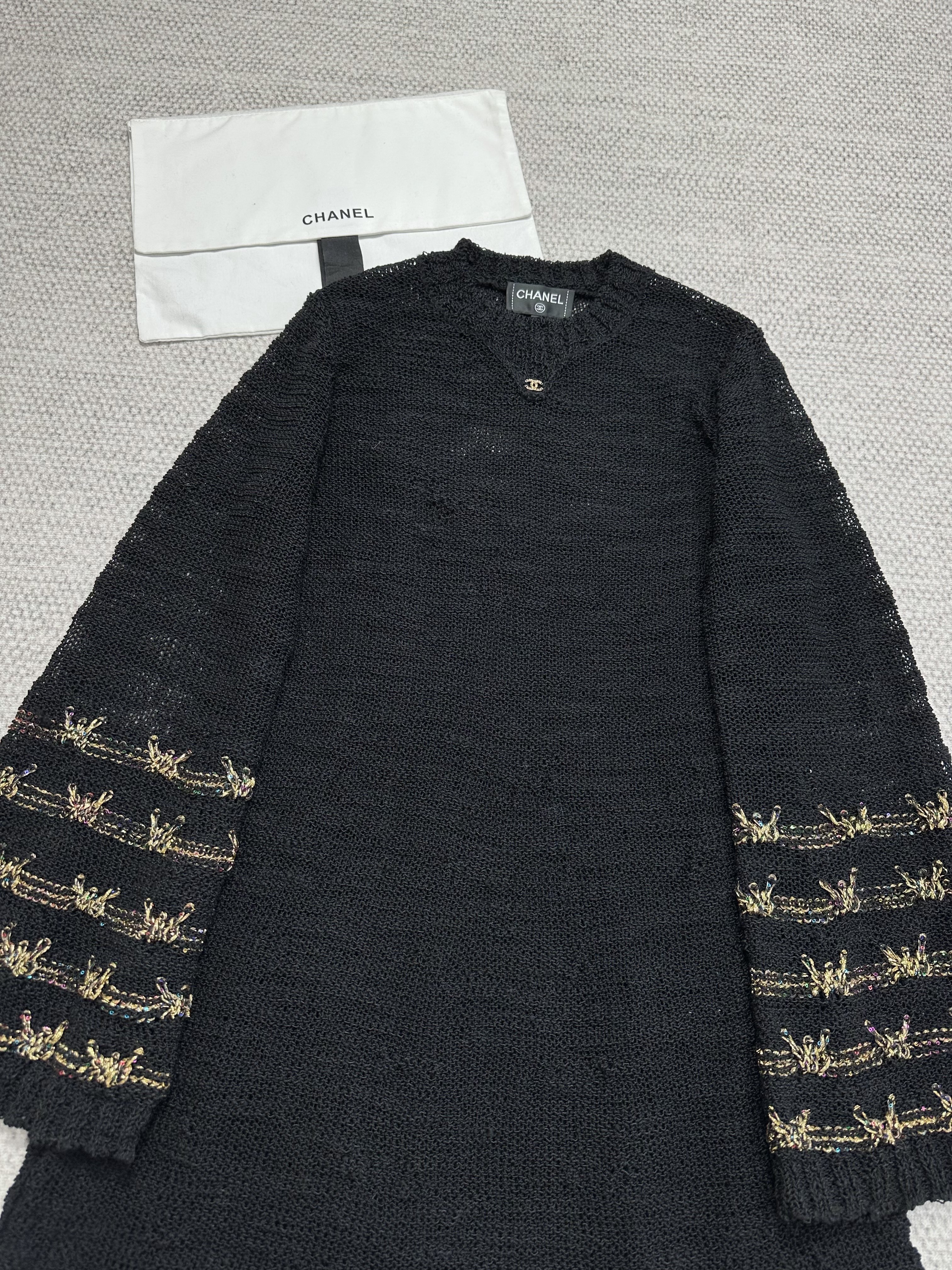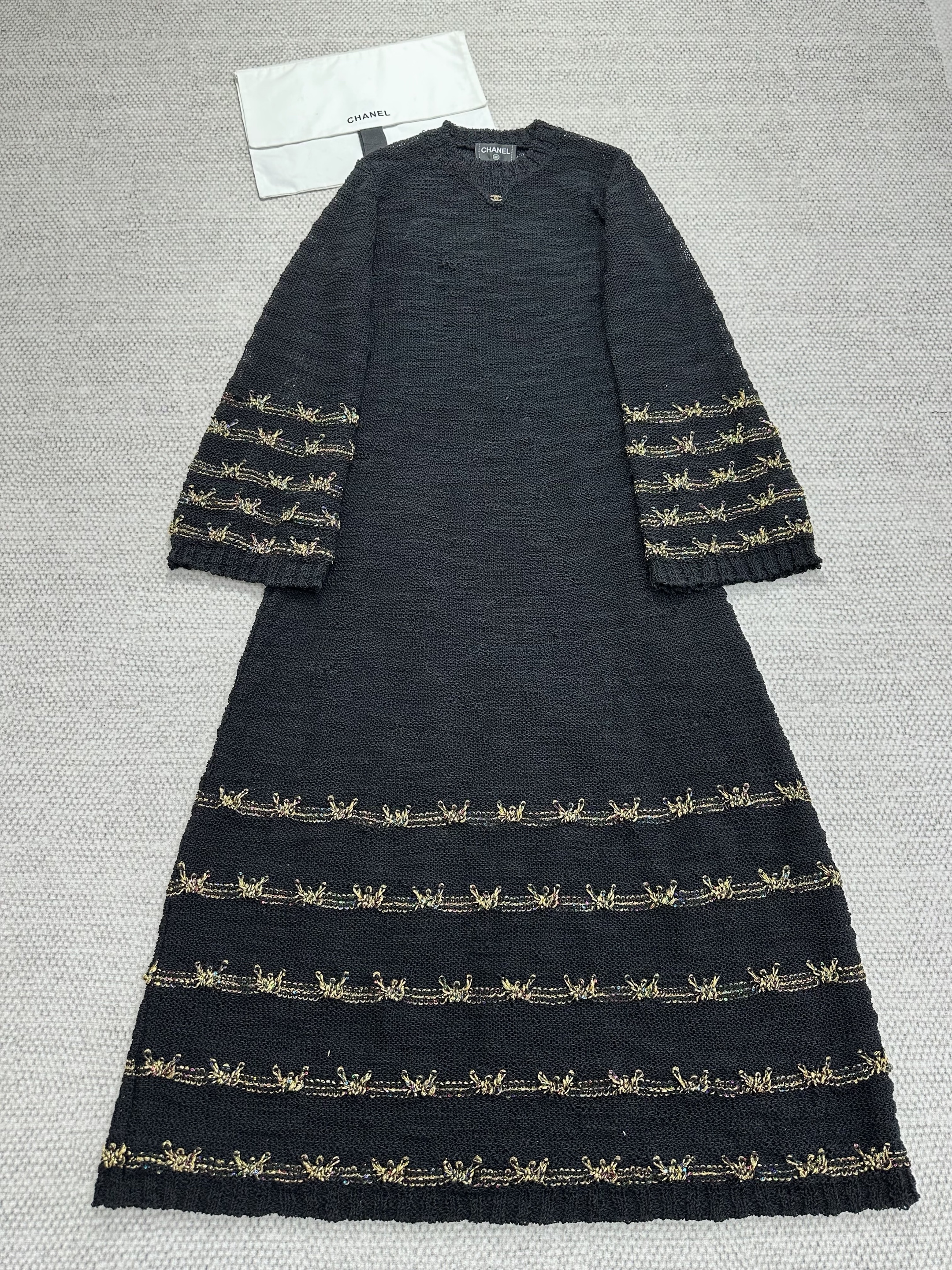 NIGO Chanel 25A Women's Long Dress Embroidered Virgin Wool Black and Gold #nigo332236