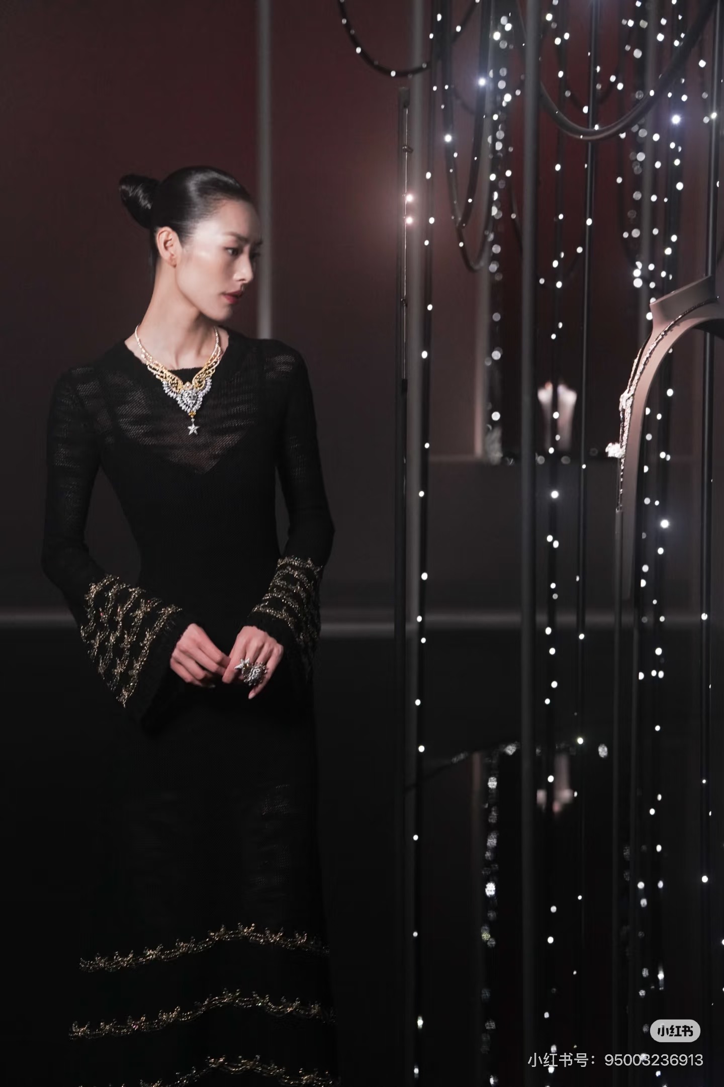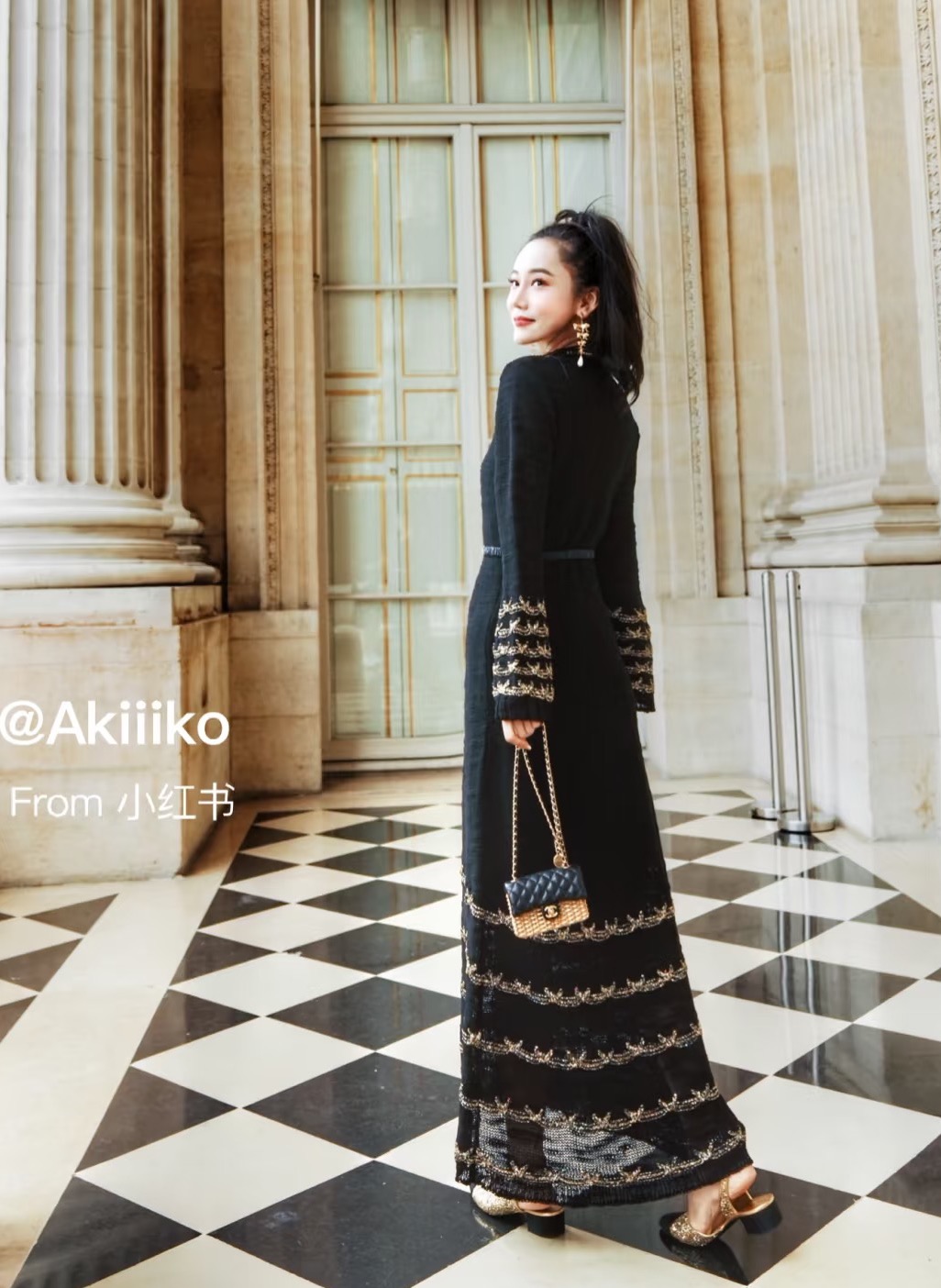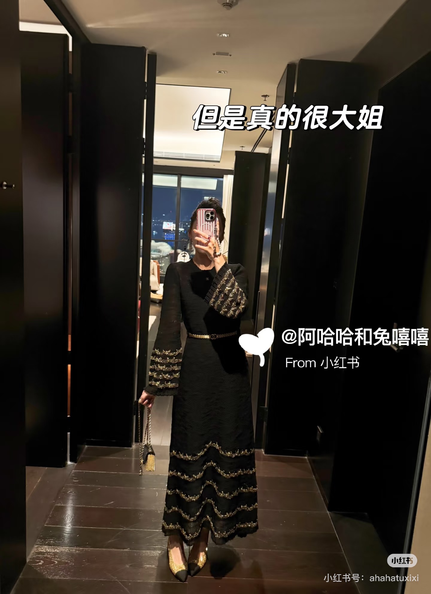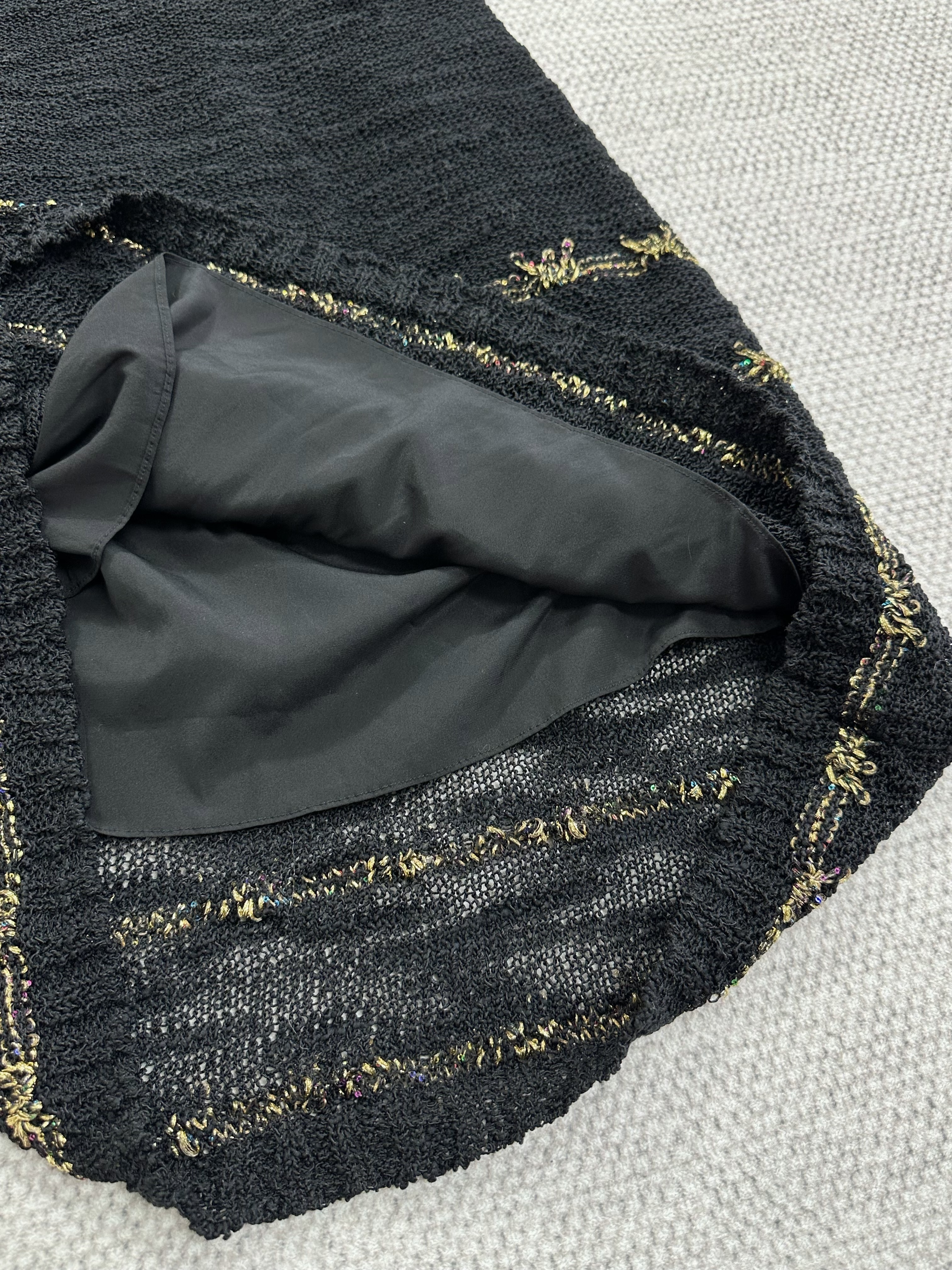 NIGO Chanel 25A Women's Long Dress Embroidered Virgin Wool Black and Gold #nigo332236