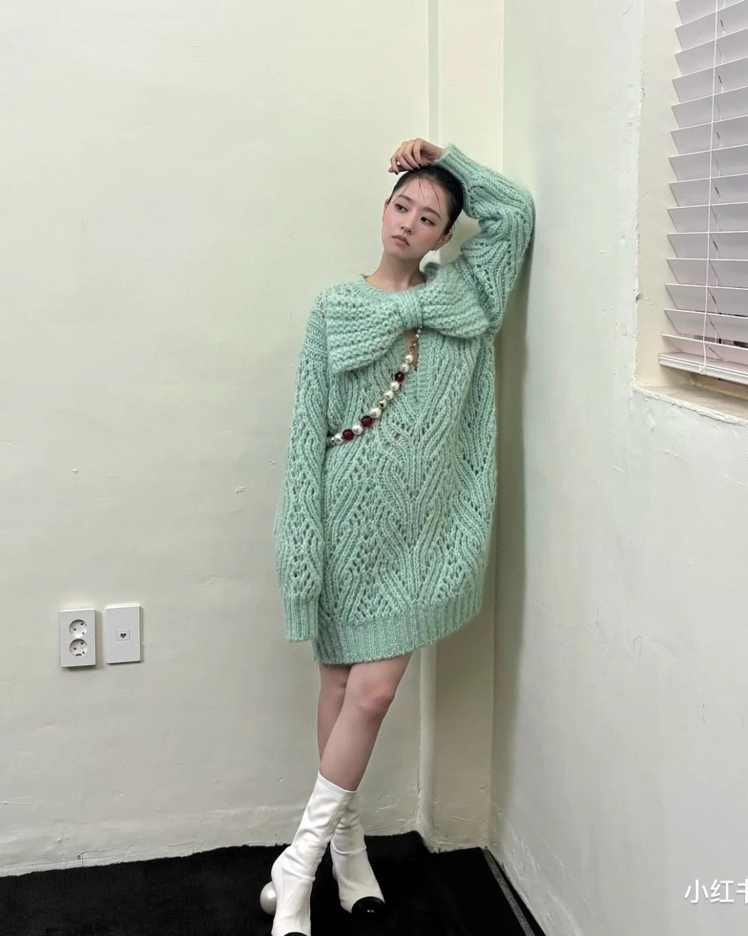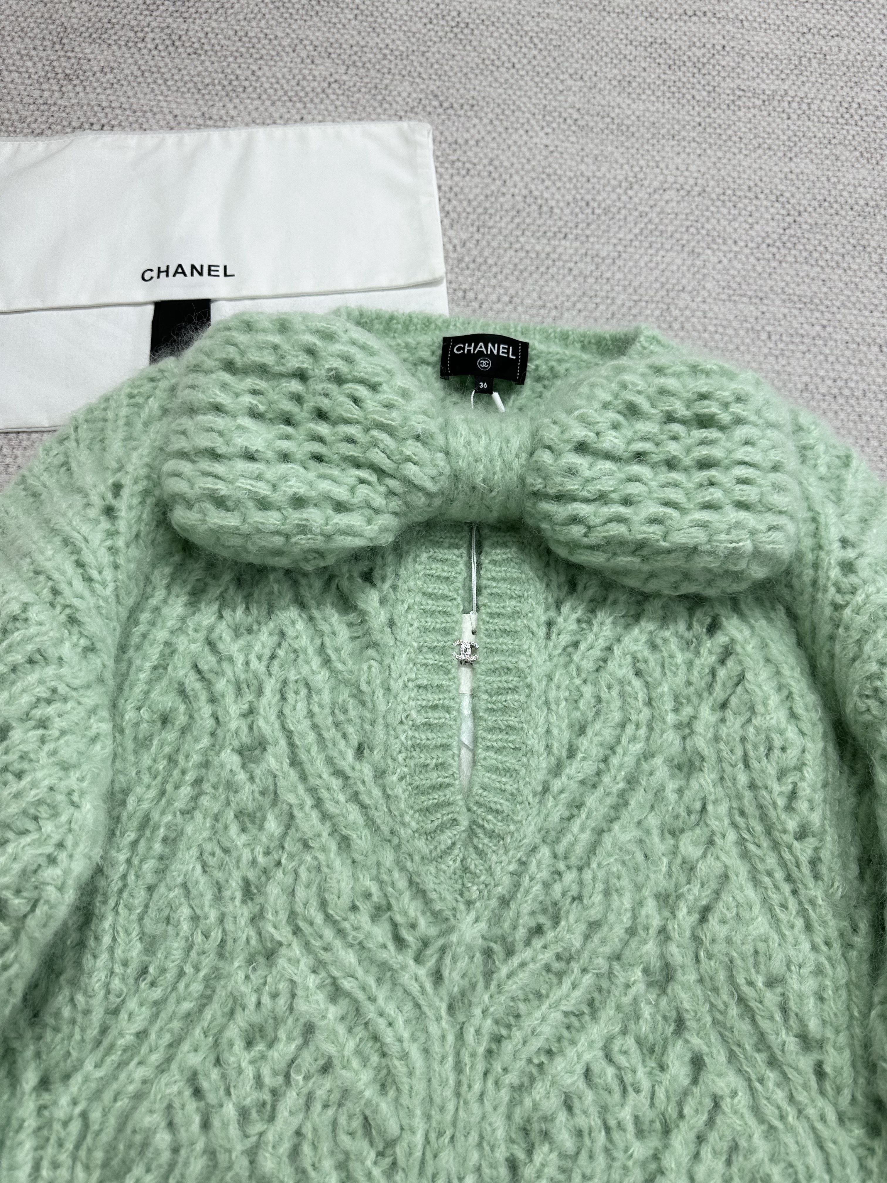 NIGO Chanel 25K Fall/Winter Haute Couture Collection Long Sleeves Short Dress Mohair And Wool Light Green #nigo332110