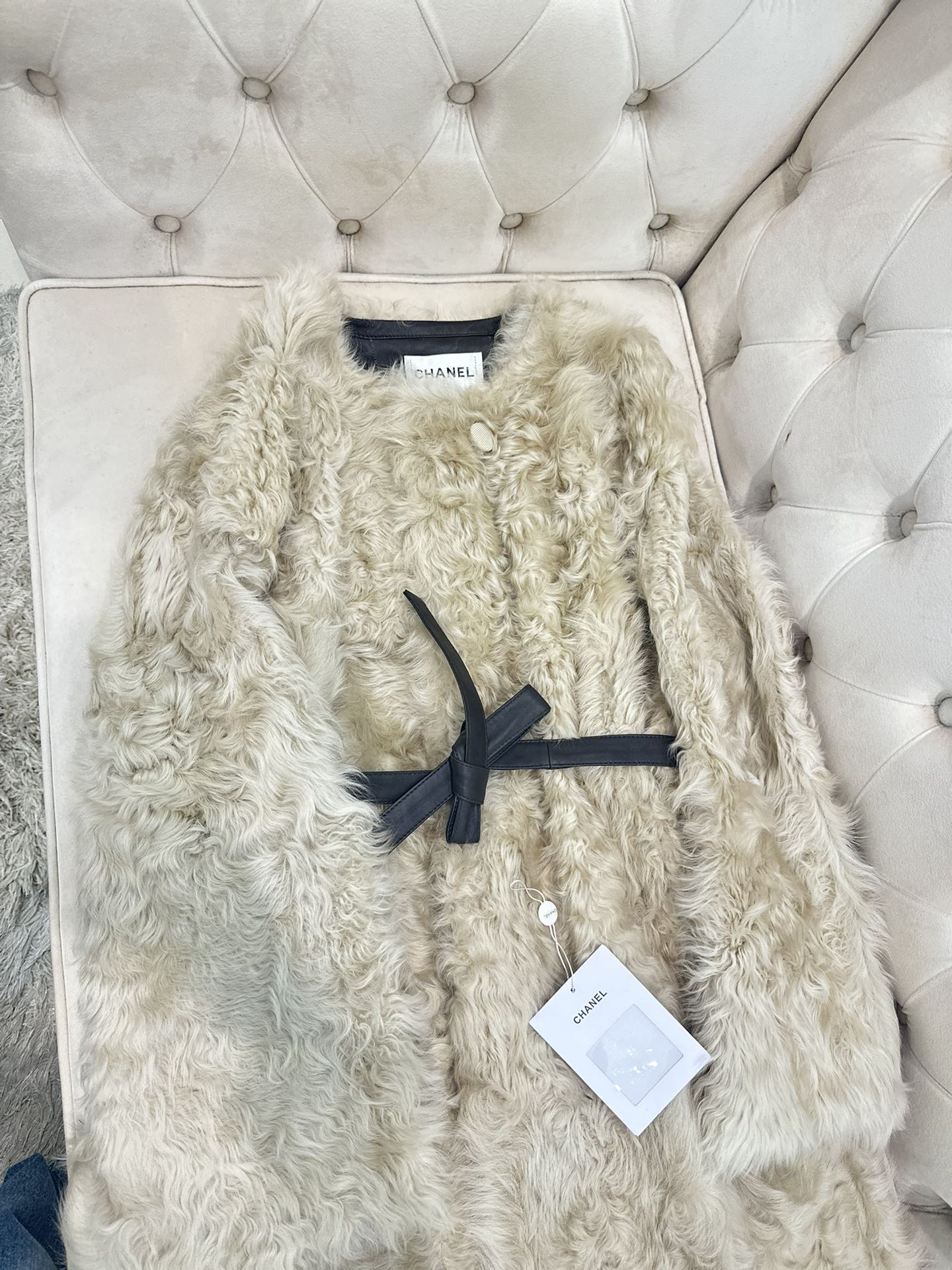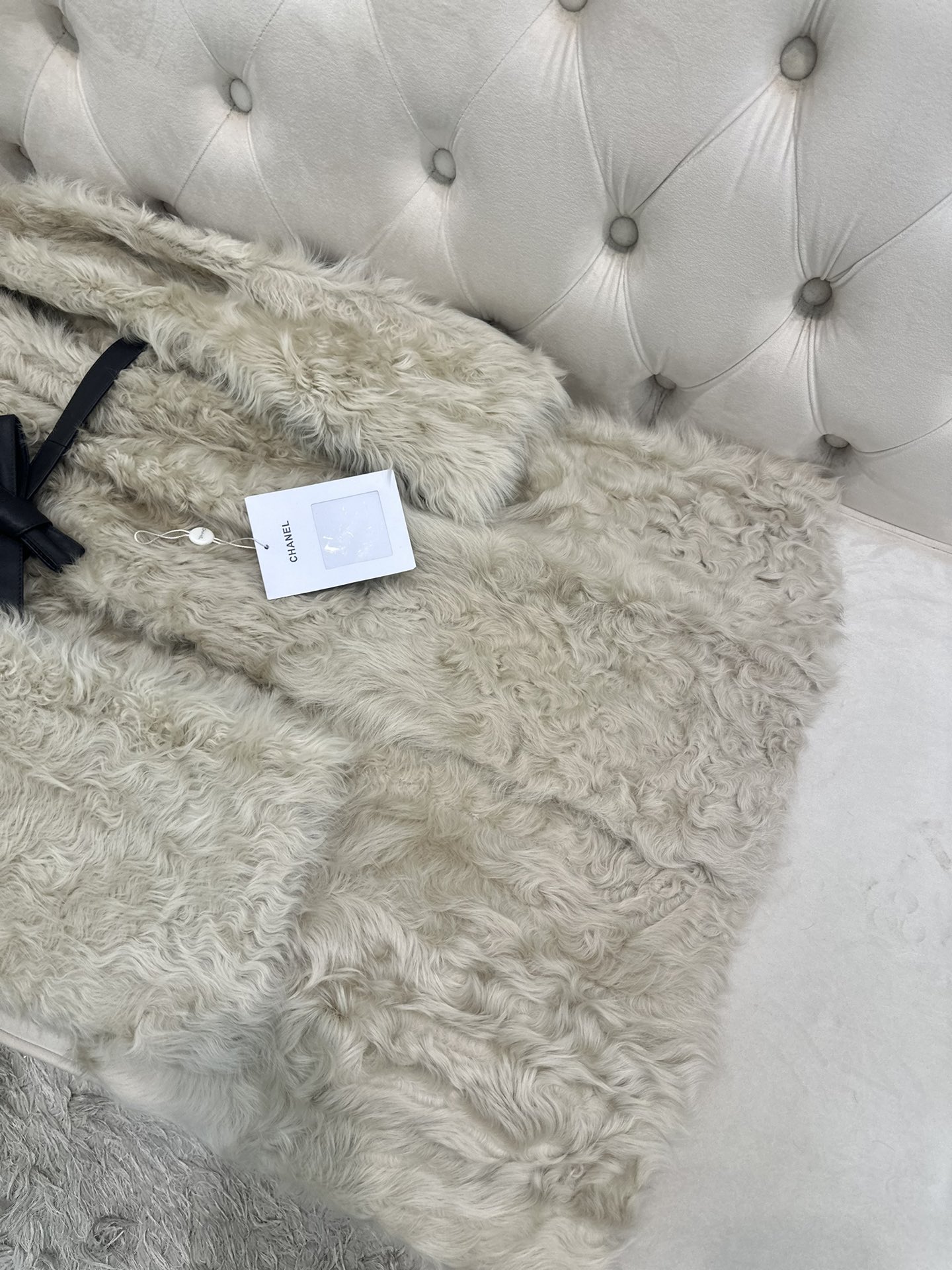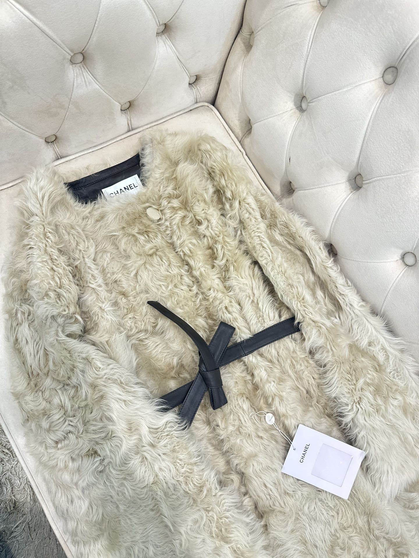 NIGO Chanel Soft Gold Little Lake Sheep Reversible Fur Coat Casual Loose Minimalist Jacket Belted Fleece Jacket #nigo332354