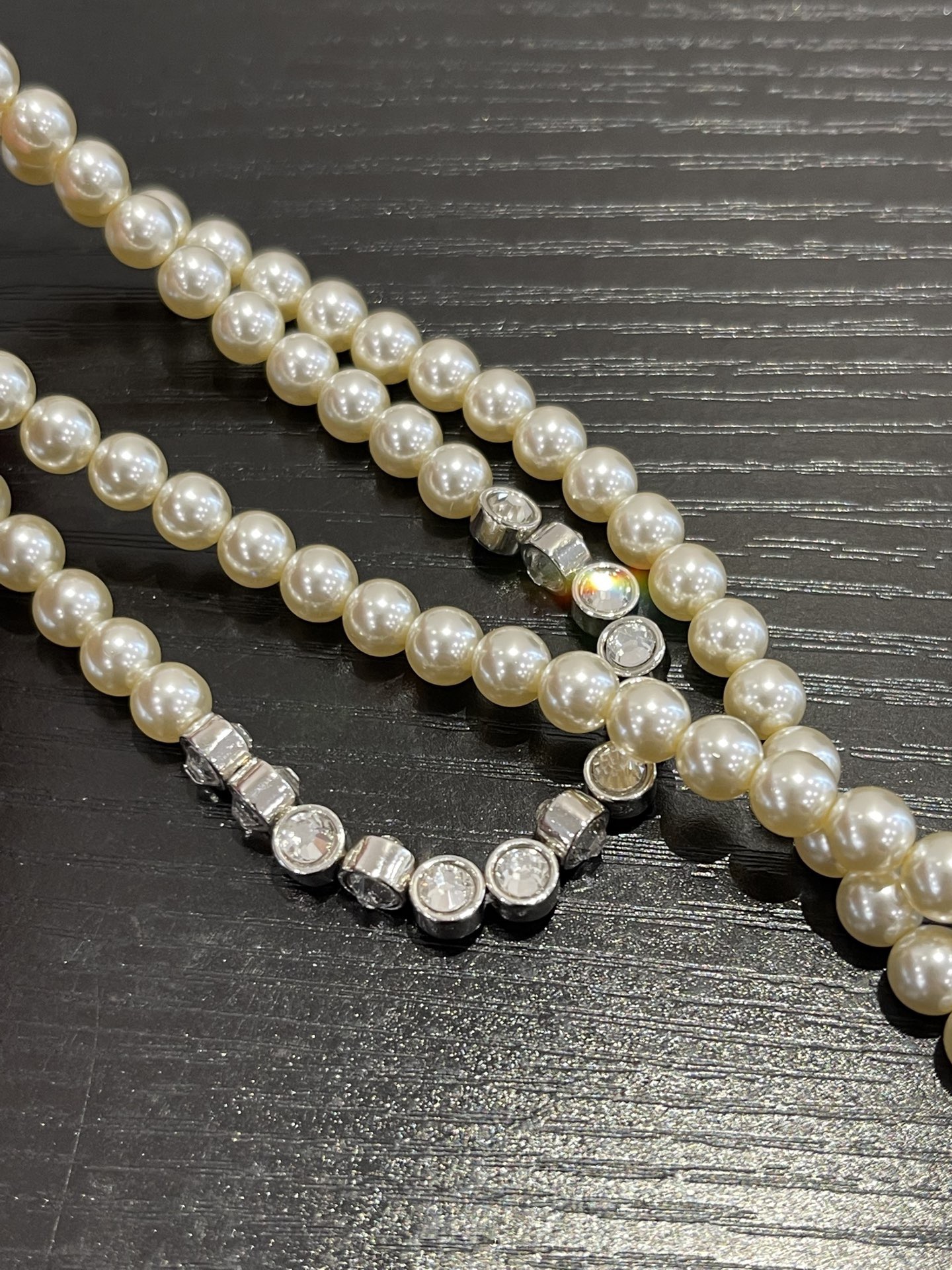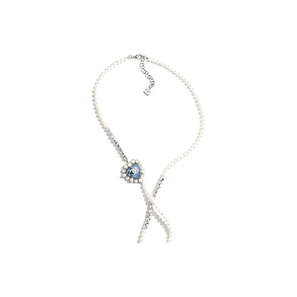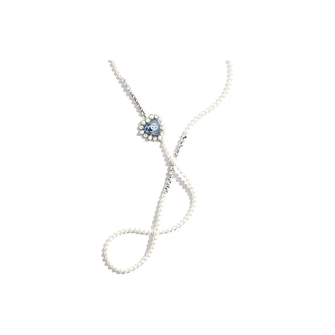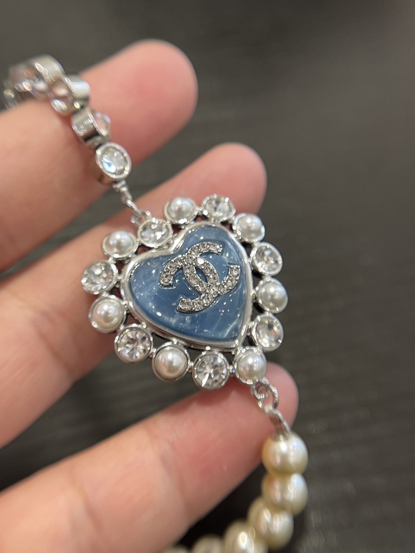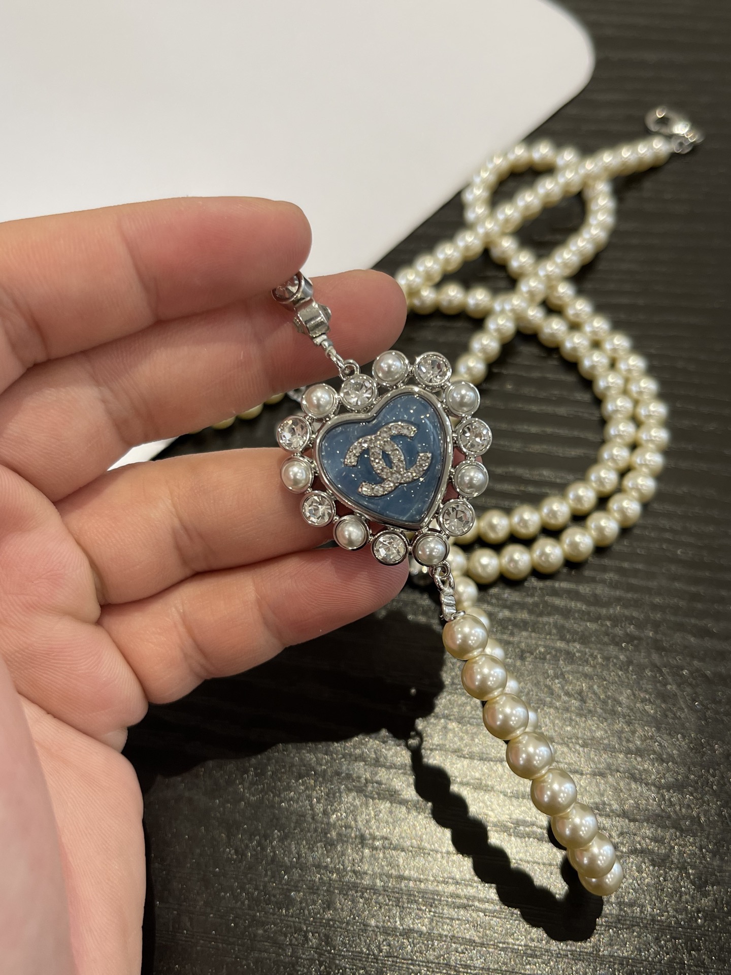 NIGO Chanel 25P New Blue Love Silver Full Diamond Double C Pearl Sweater Chain Advanced Resin #nigo317343