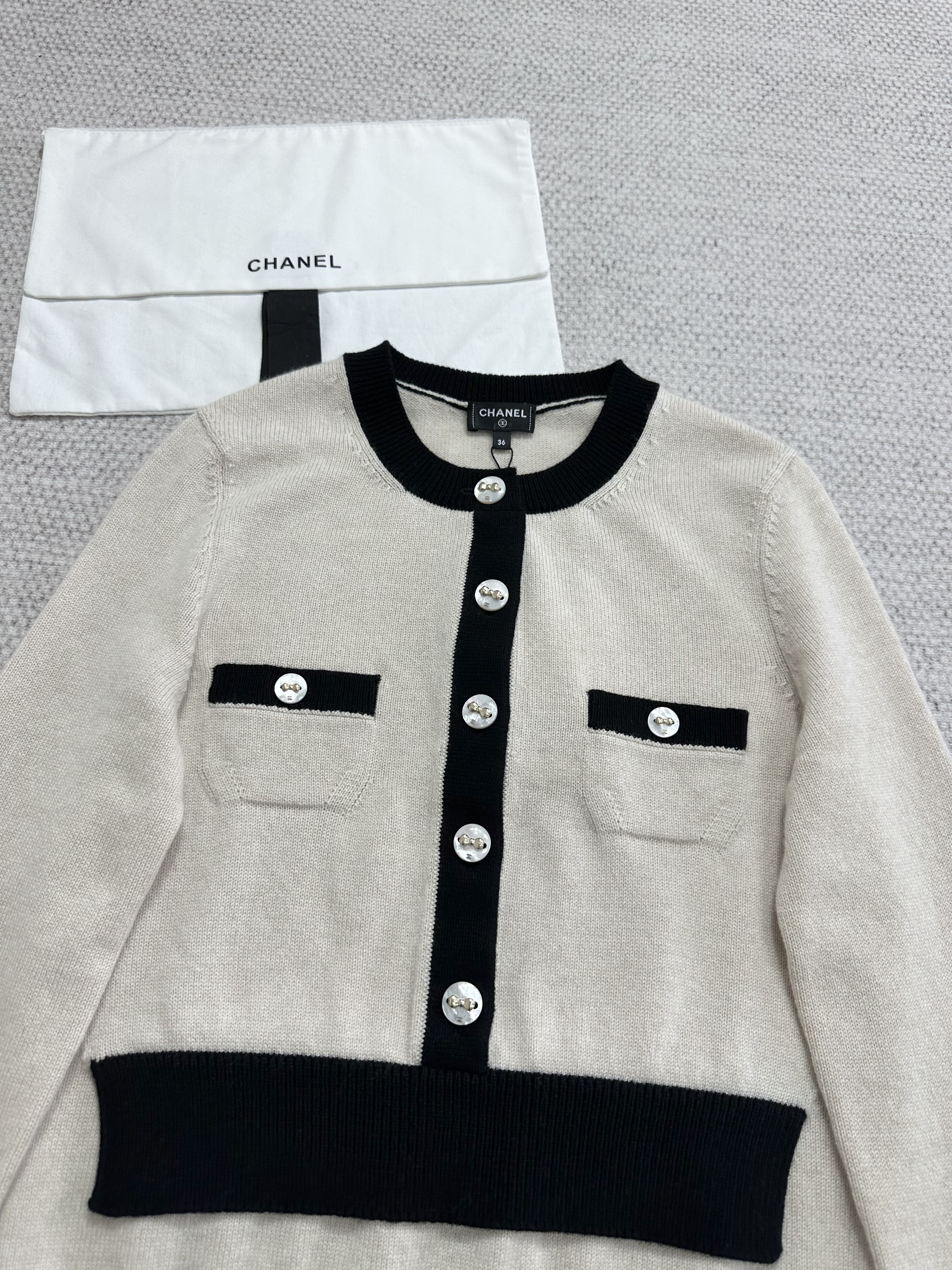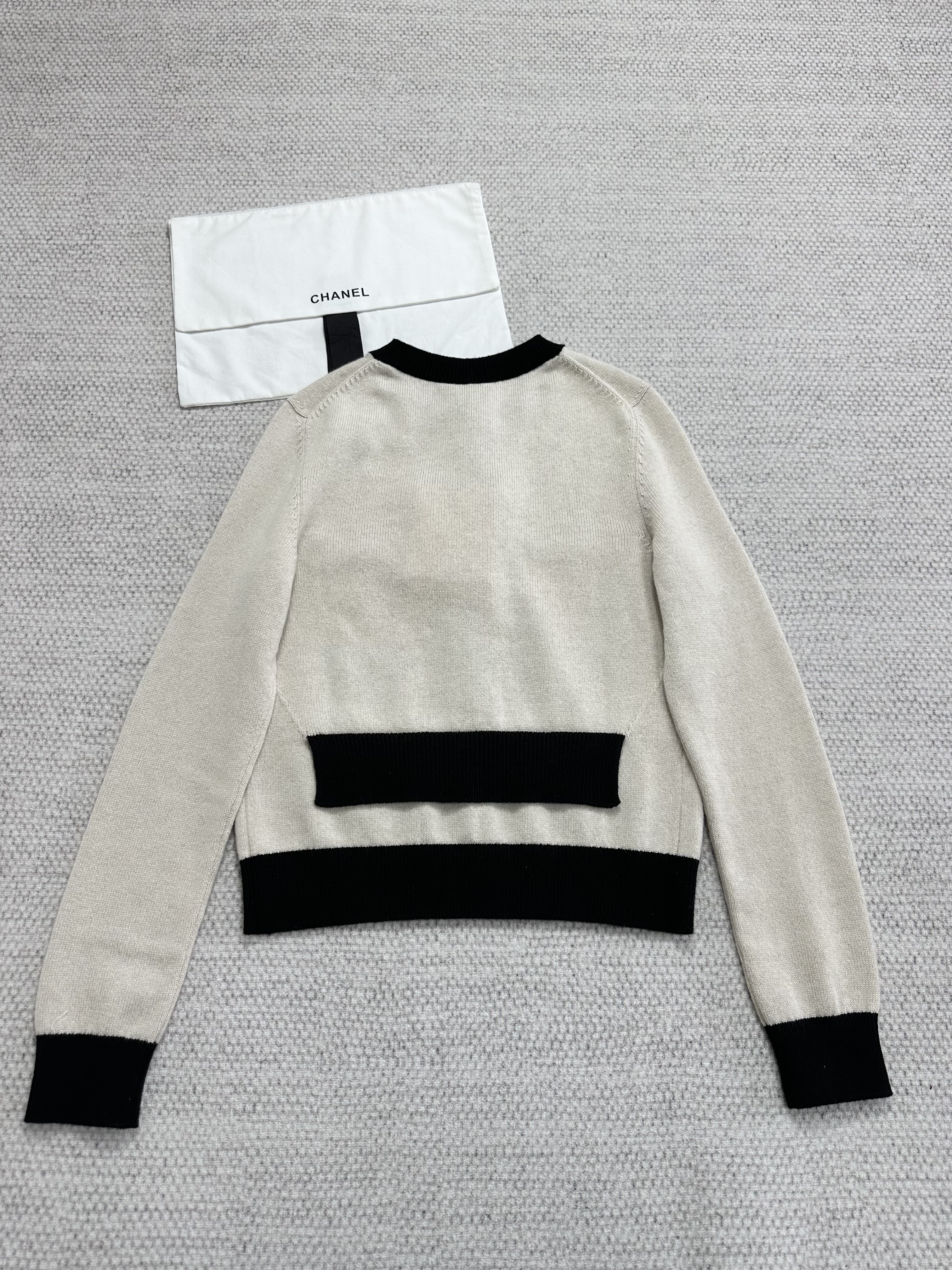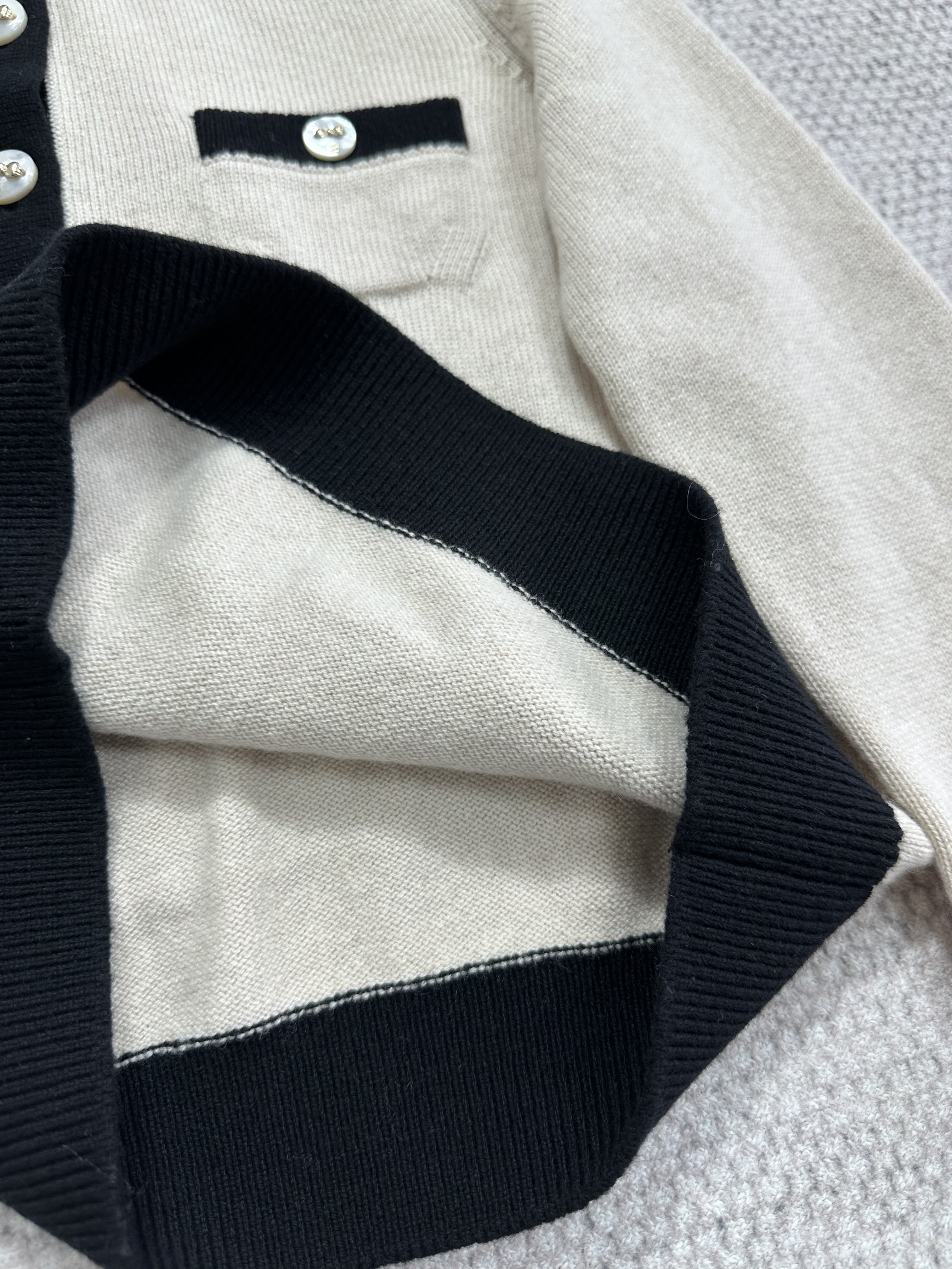 NIGO Chanel 25K Women's Little Fragrance Black and White Color Clash Button Bow Long Sleeve Knitted Cardigan #nigo332367