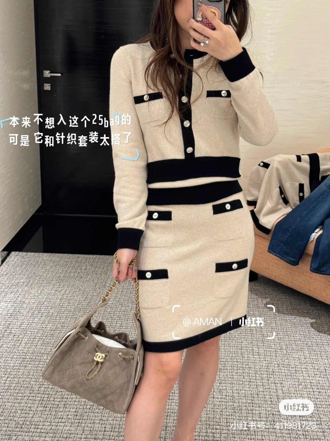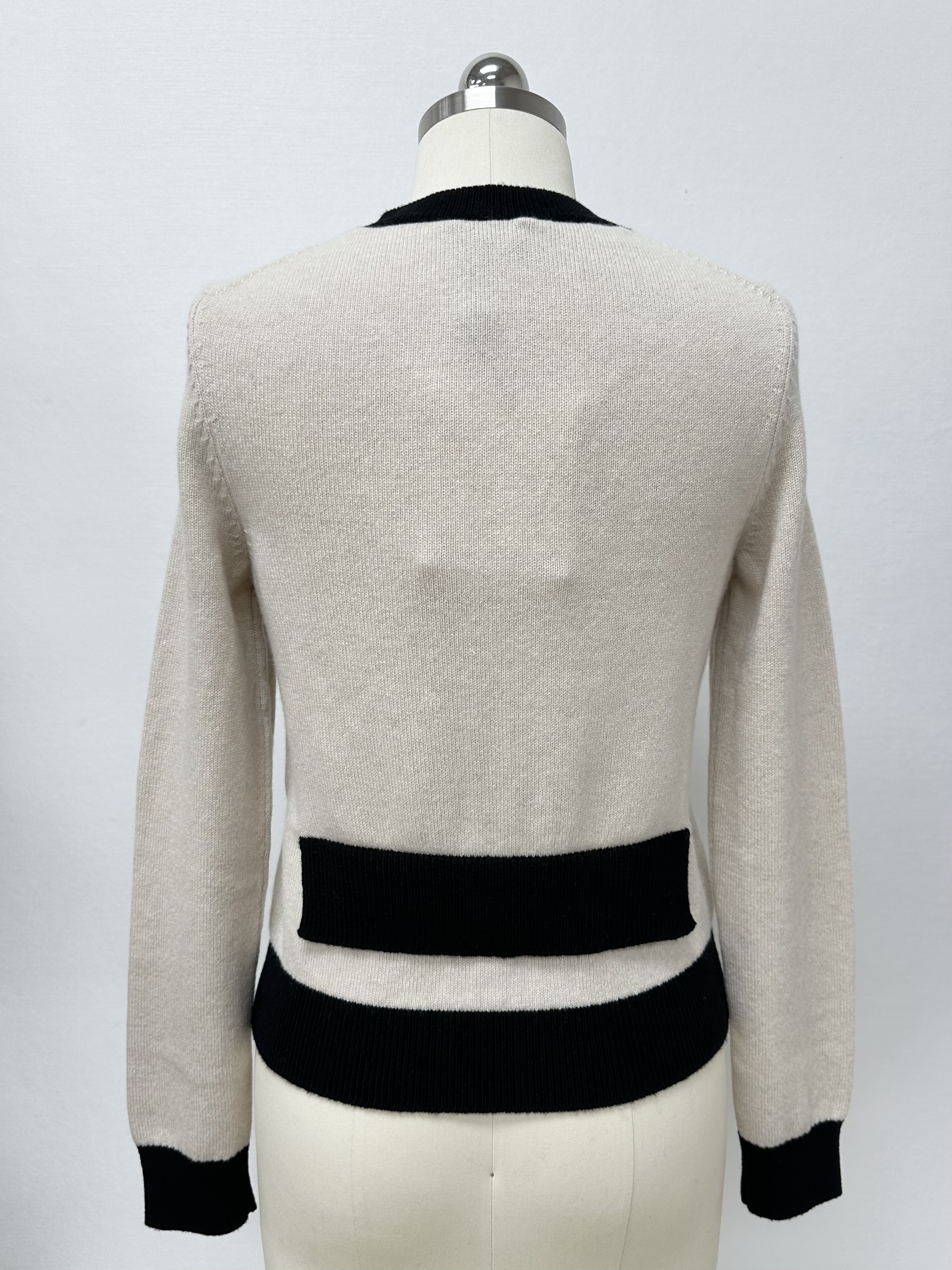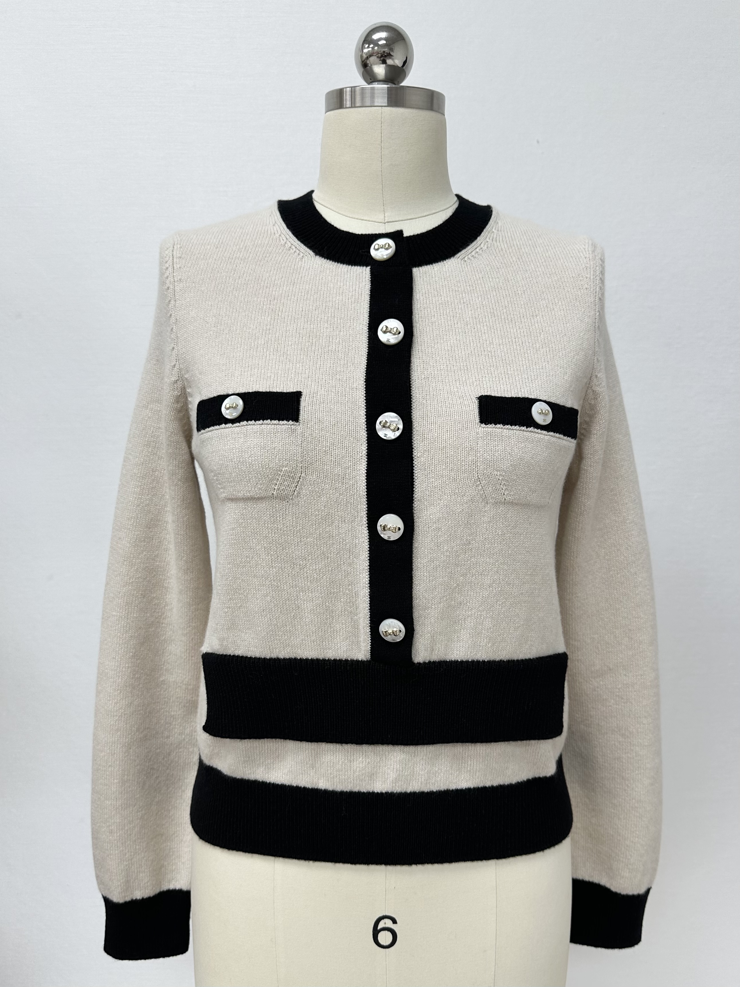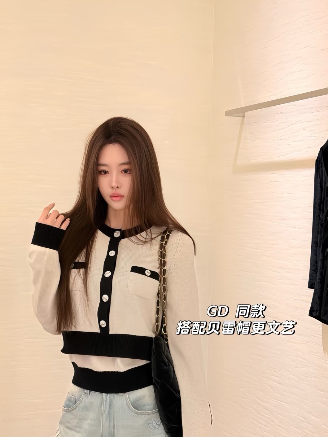 NIGO Chanel 25K Women's Little Fragrance Black and White Color Clash Button Bow Long Sleeve Knitted Cardigan #nigo332367