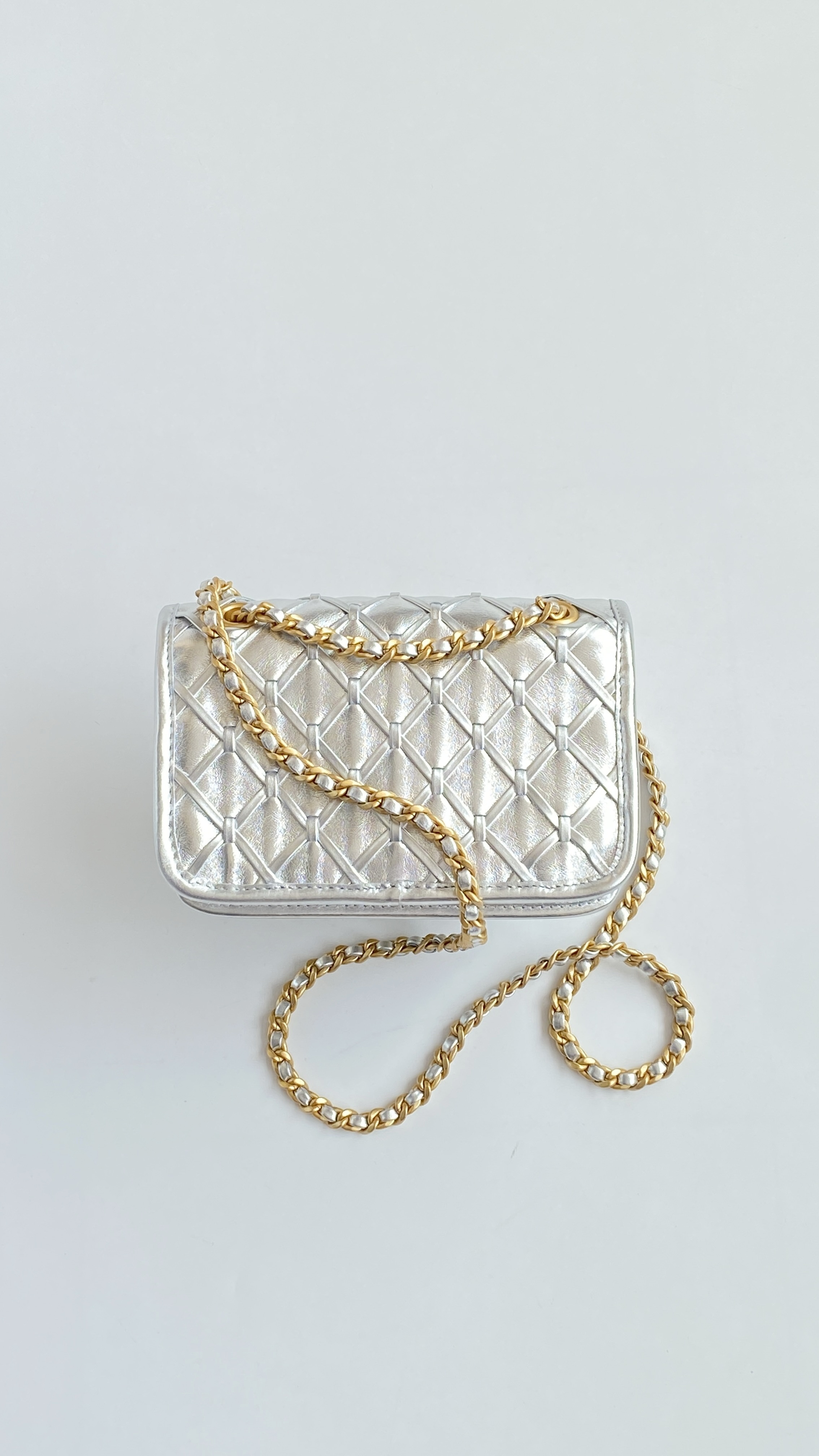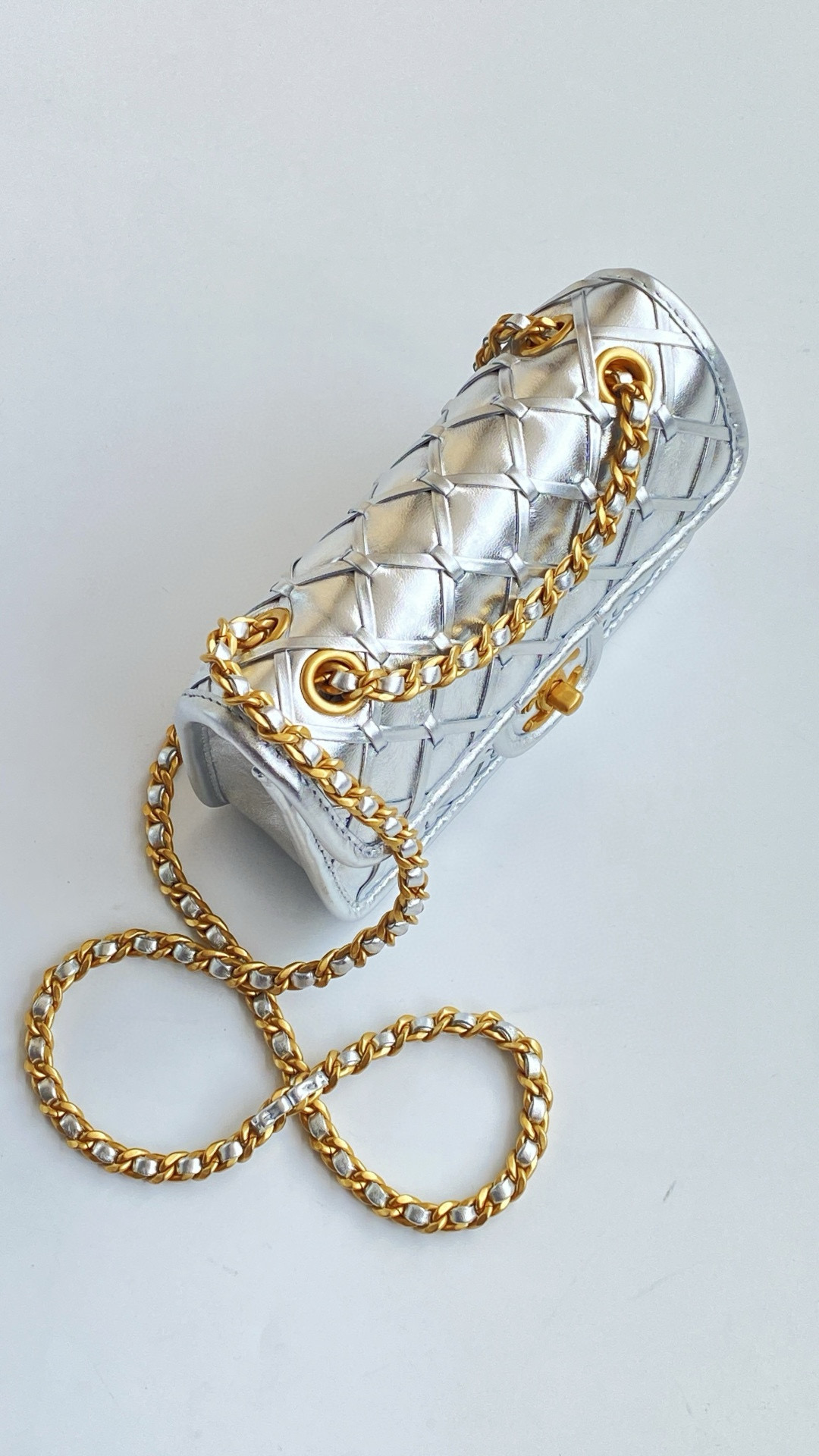 NIGO Chanel Women's Silver Lattice Chain Metallic Mirror Calfskin Shoulder Crossbody Bag Bags #nigo76372