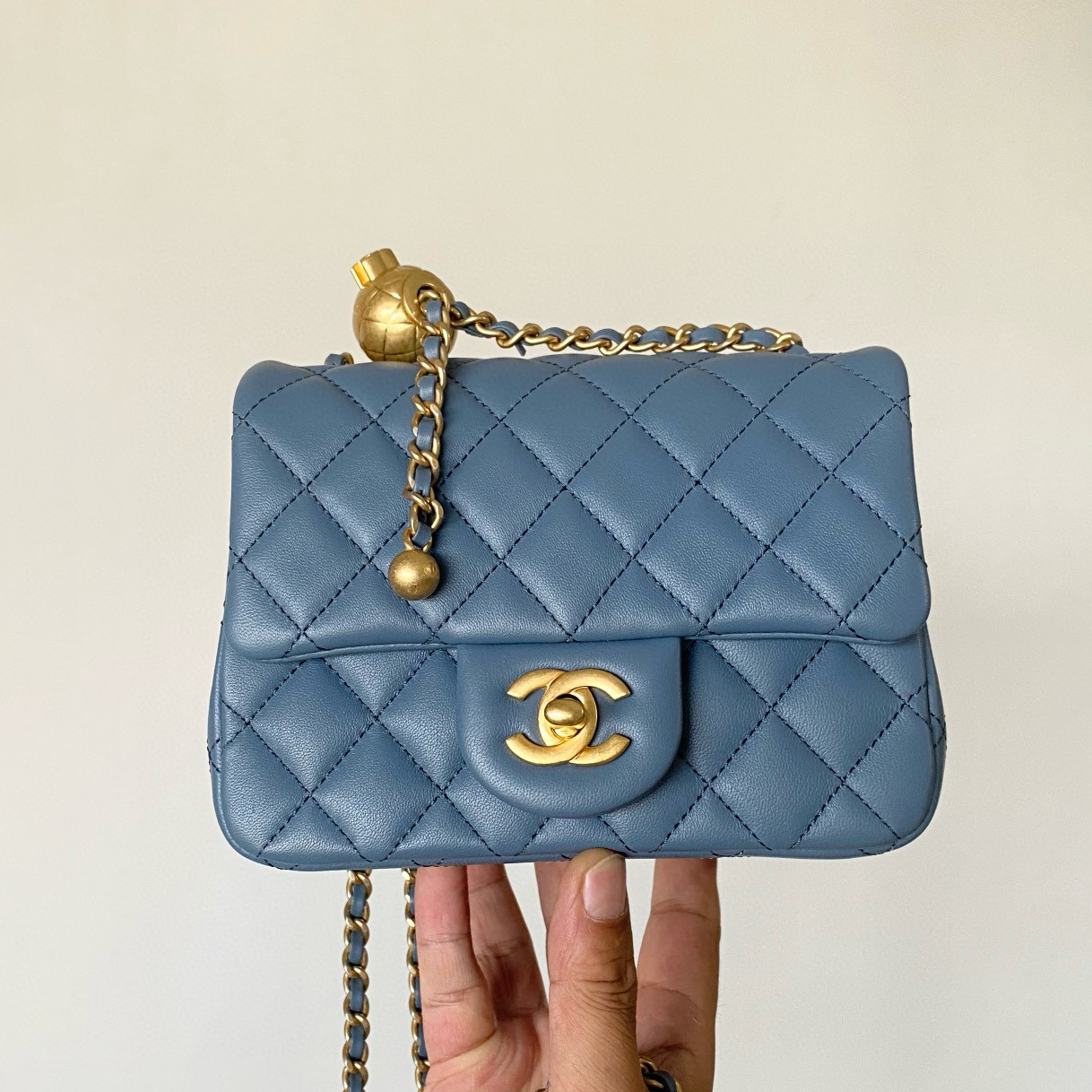 NIGO Chanel Women's Four Seasons Pearl Chain Print Cotton Casual Solid Color Straight Jeans Denim Pants #nigo76229