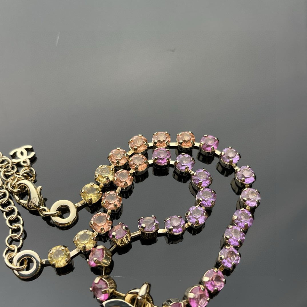 NIGO Chanel Women's Rainbow Gradient Color Double C Decoration Rhinestone Metal Necklace Ngvp #nigo1393