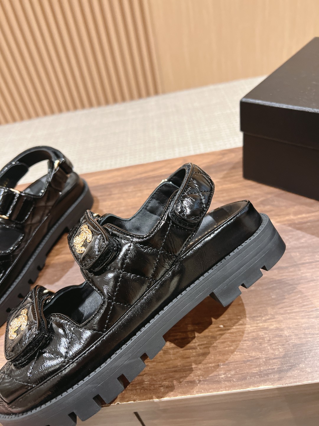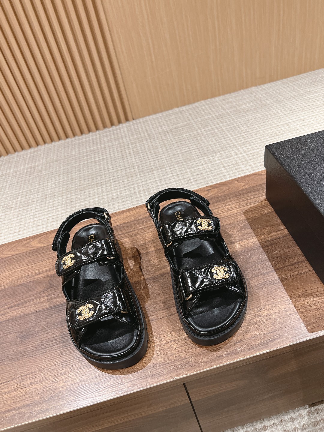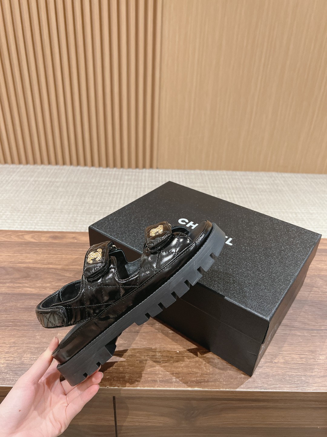 NIGO Chanel Women's Summer Fashion Logo Leather Solid Color Thick Bottom Casual Beach Shoes Sandals #nigo76221