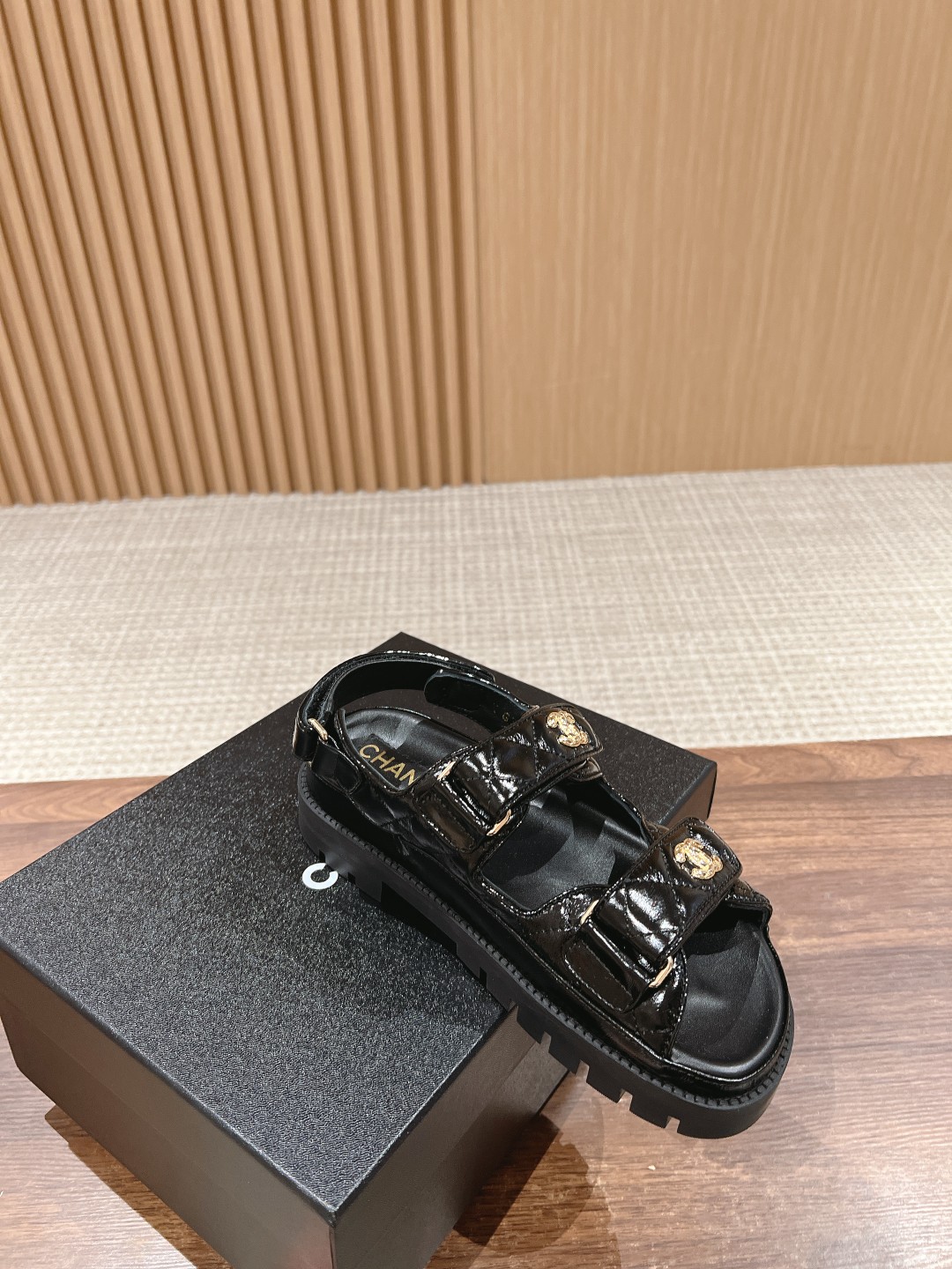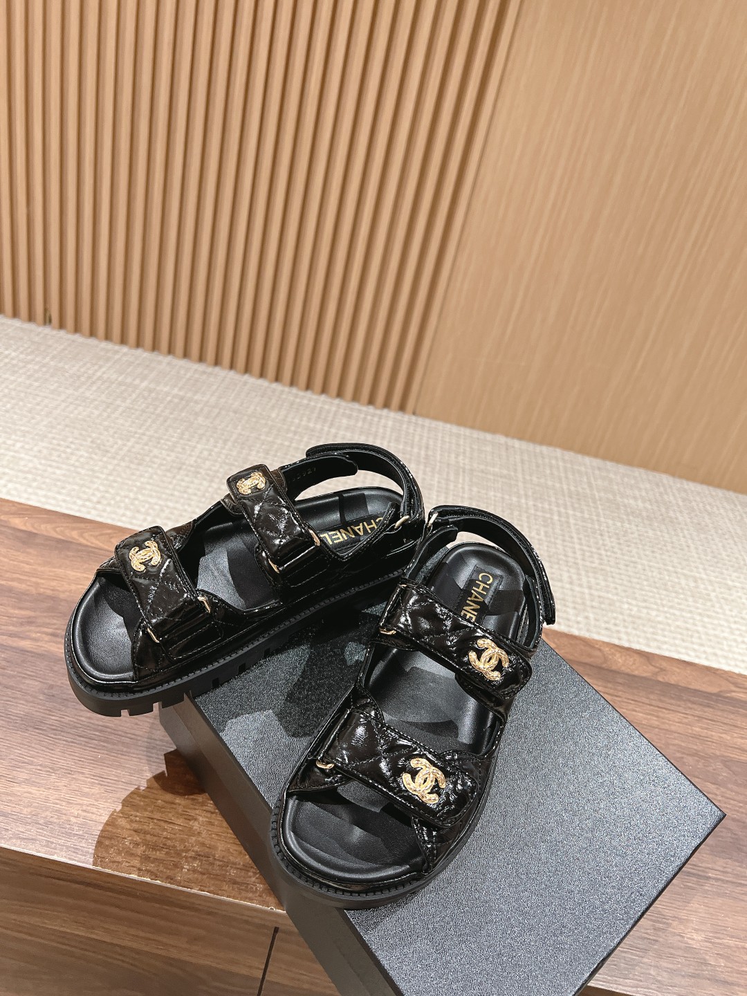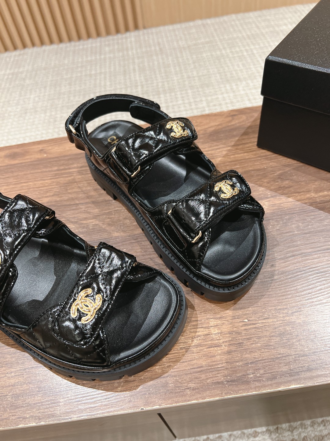 NIGO Chanel Women's Summer Fashion Logo Leather Solid Color Thick Bottom Casual Beach Shoes Sandals #nigo76221