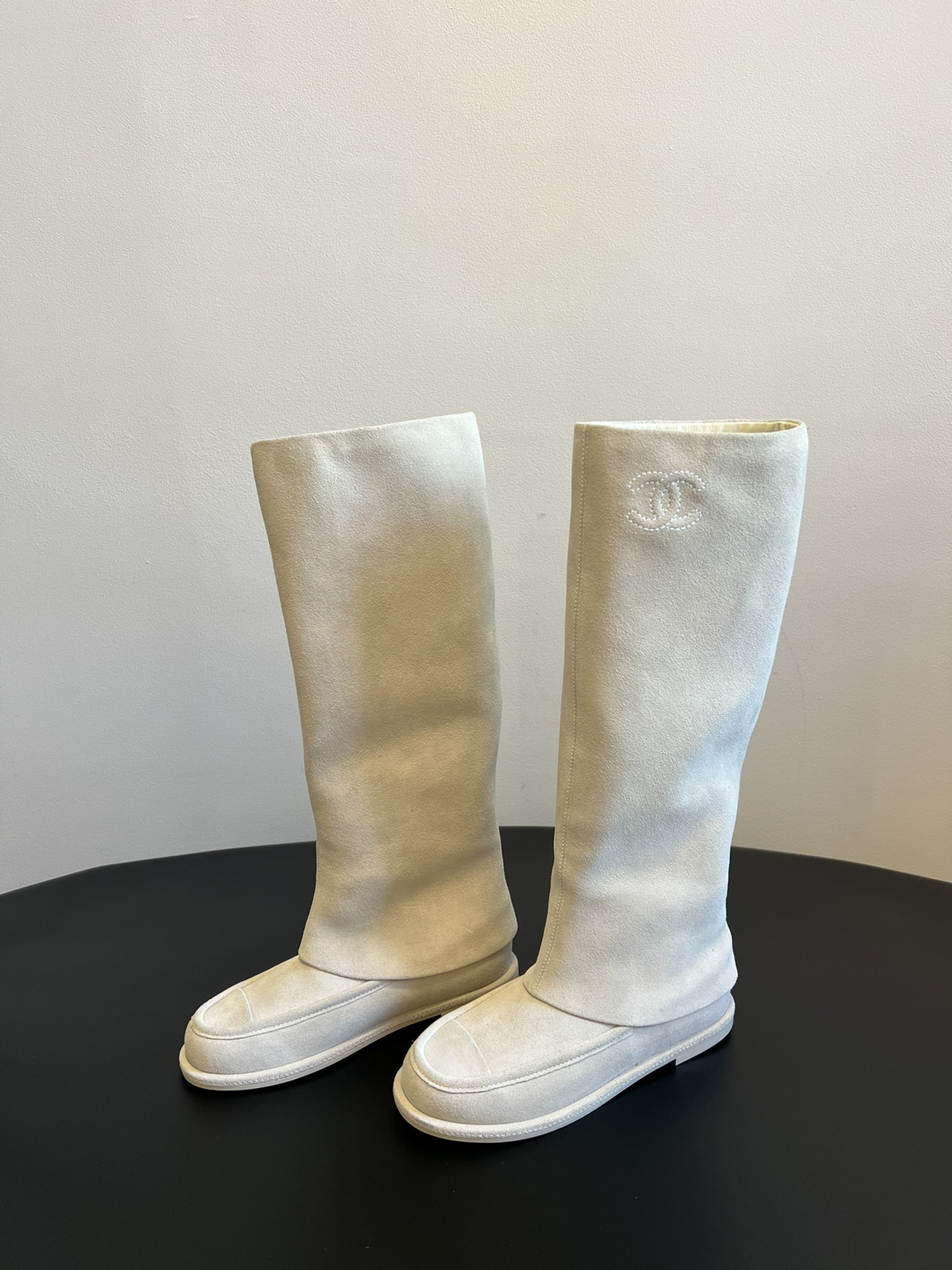 NIGO Chanel Women's Autumn and Winter Solid Color Suede Fabric Sheepskin Lining Tall Boots Shoes #nigo74848
