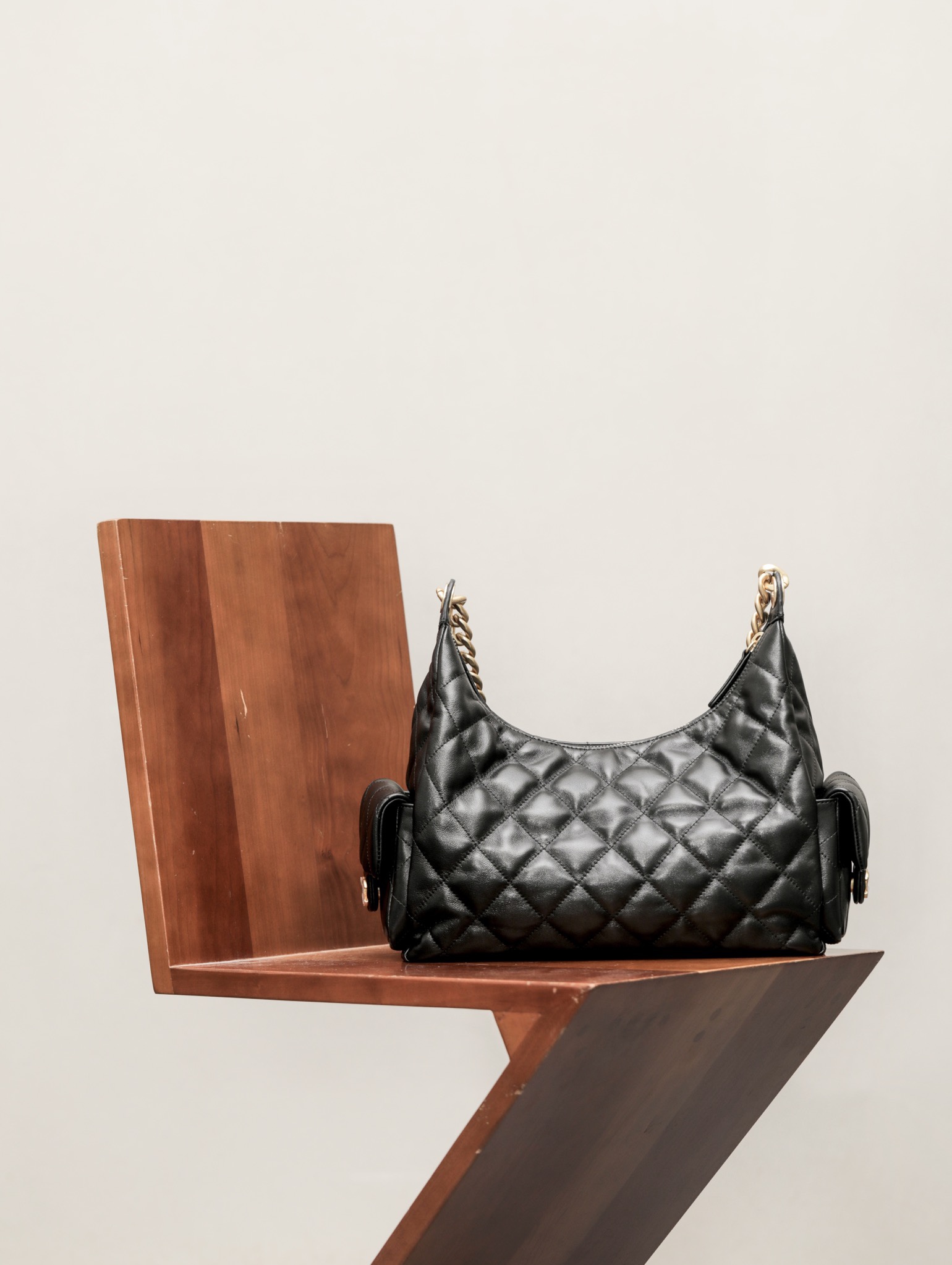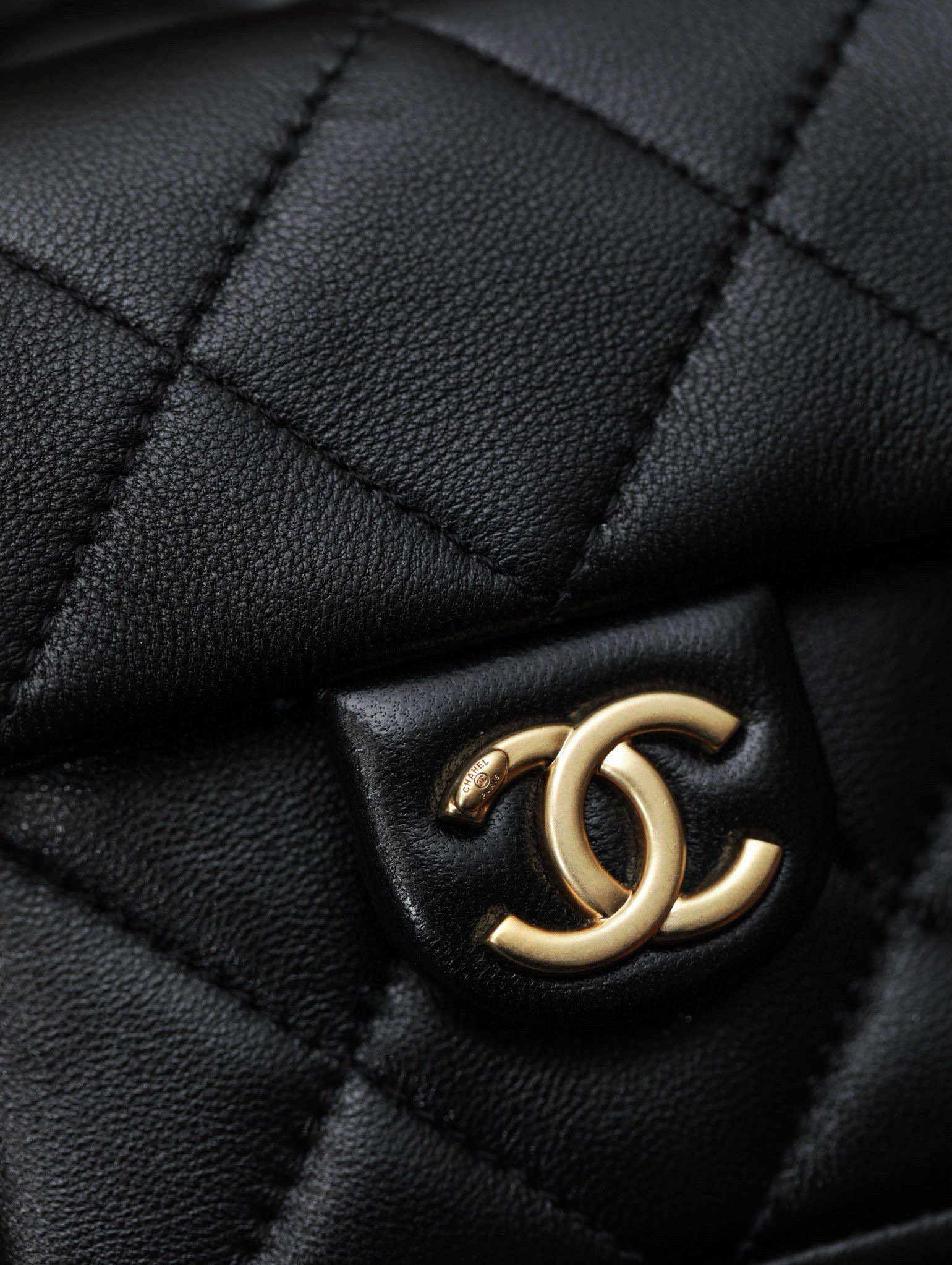 NIGO Chanel Women's Black Gold Buckle Zipper Closure Lambskin Tote Shoulder Bag Bags #nigo74229