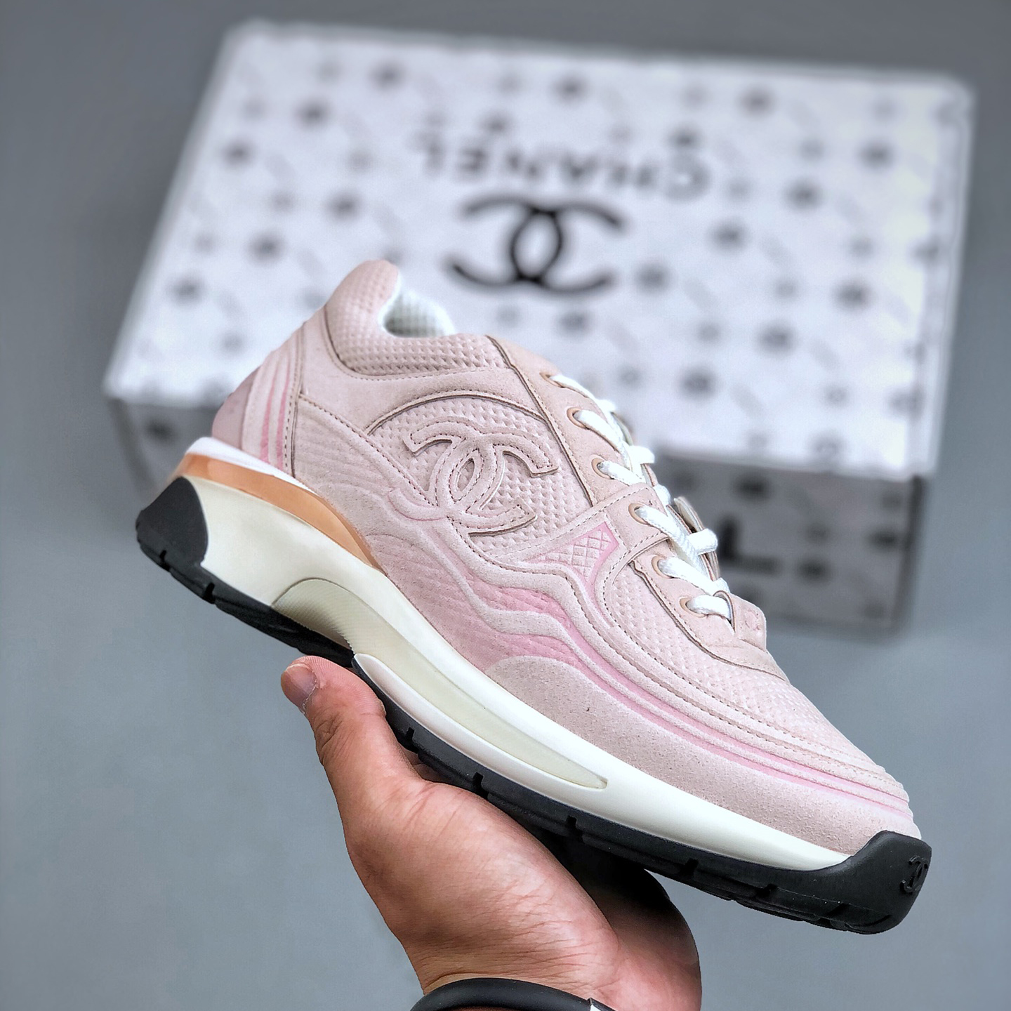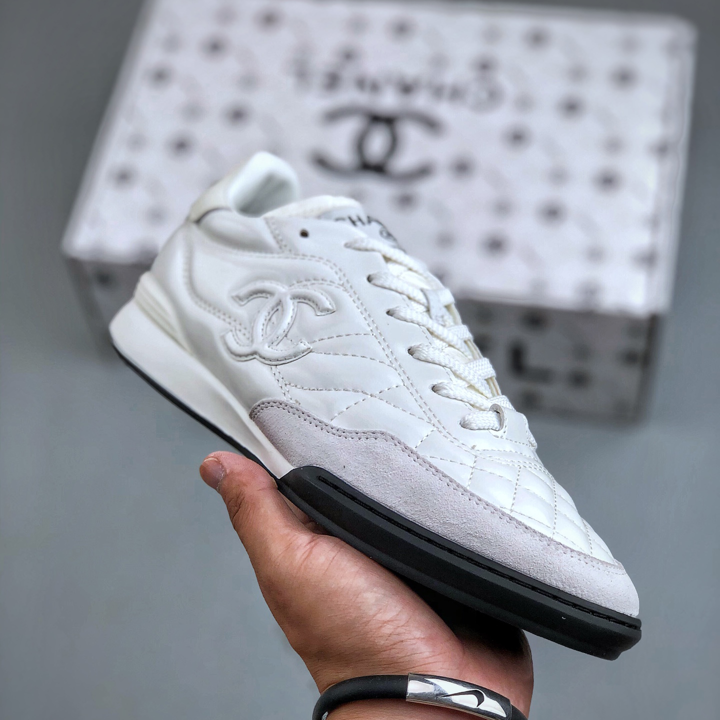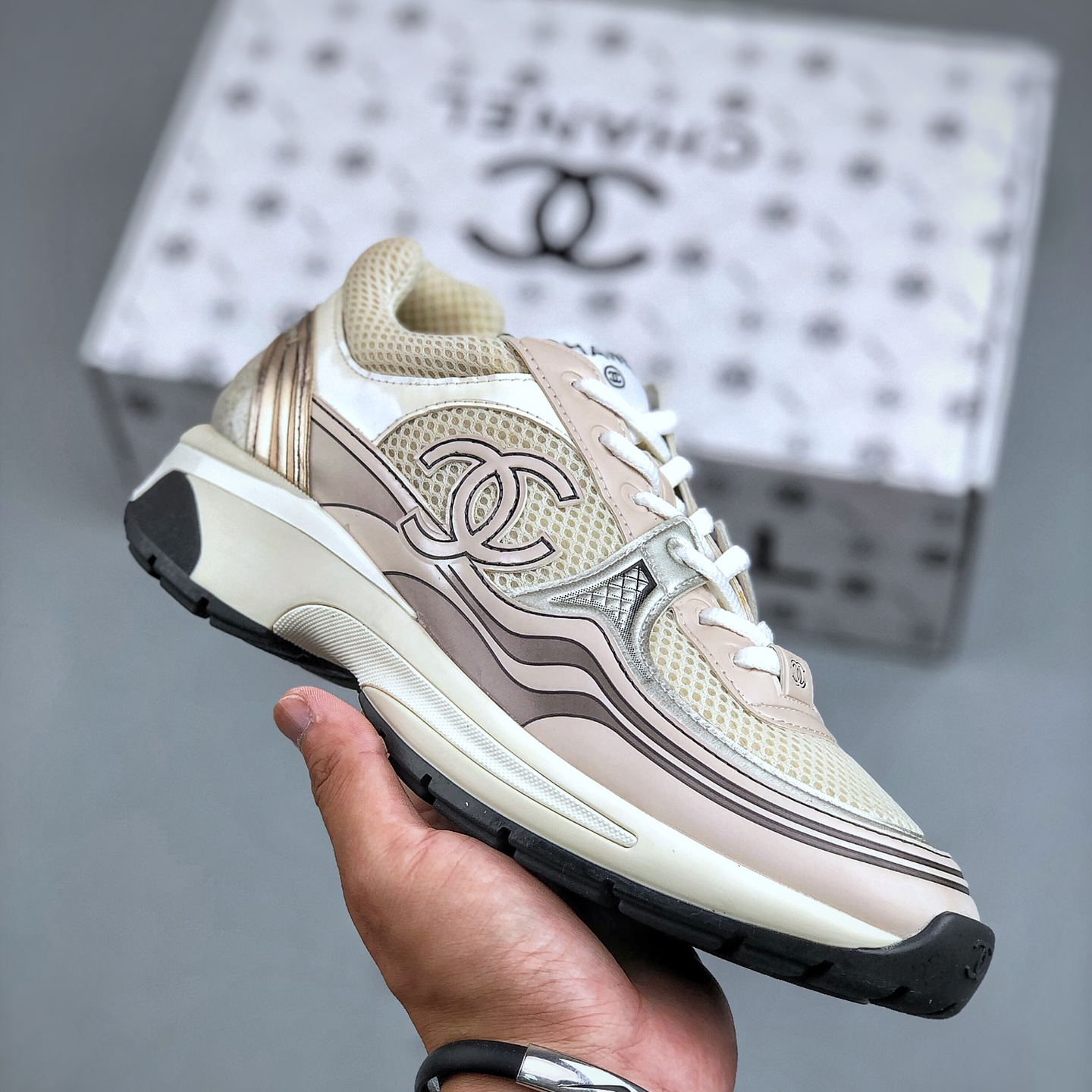 NIGO Chanel Women's Four Seasons Solid Color Logo Mesh Leather Low Top Round Toe Lace Up Sneakers Casual Shoes #nigo73862