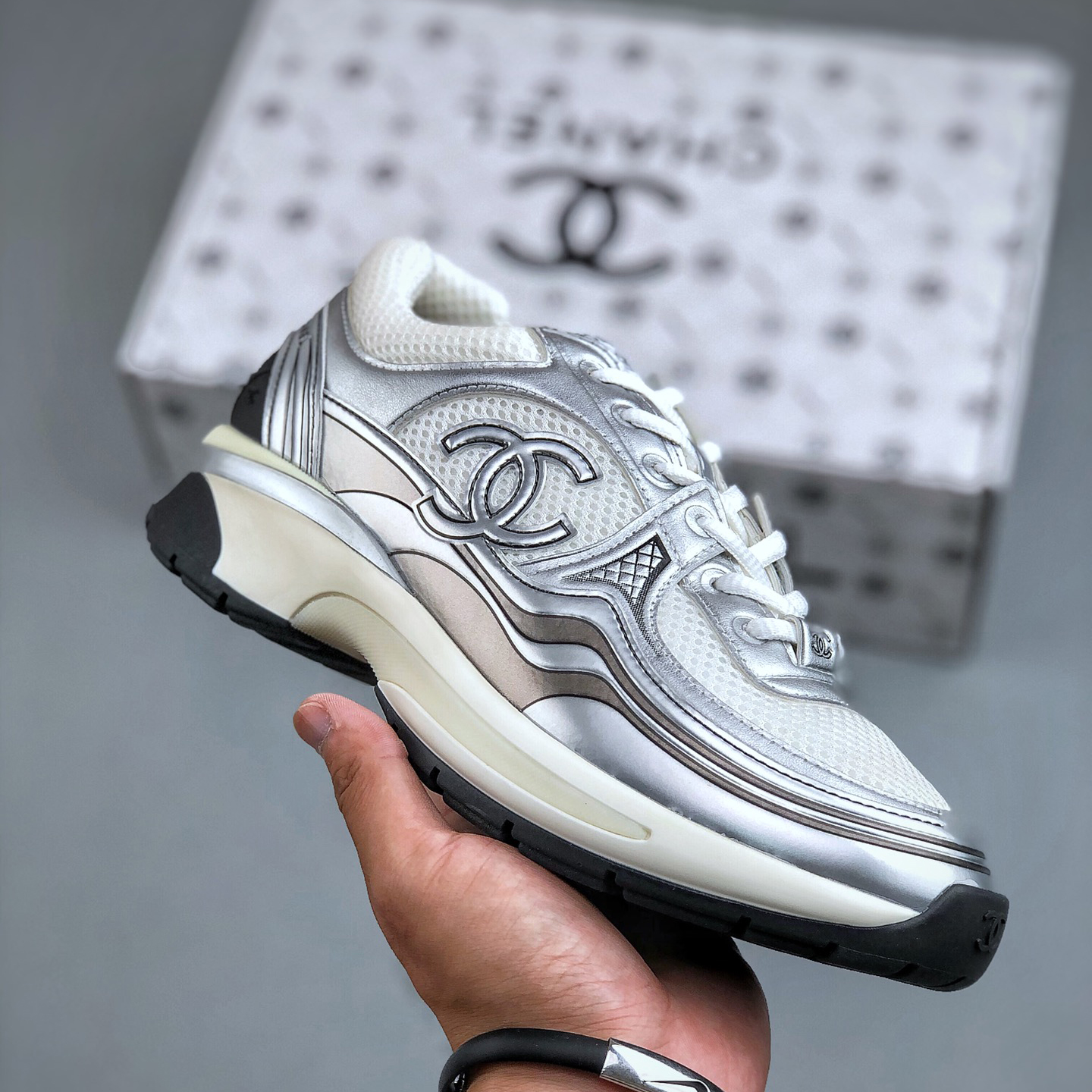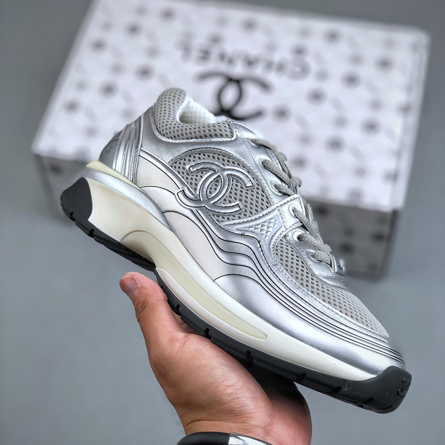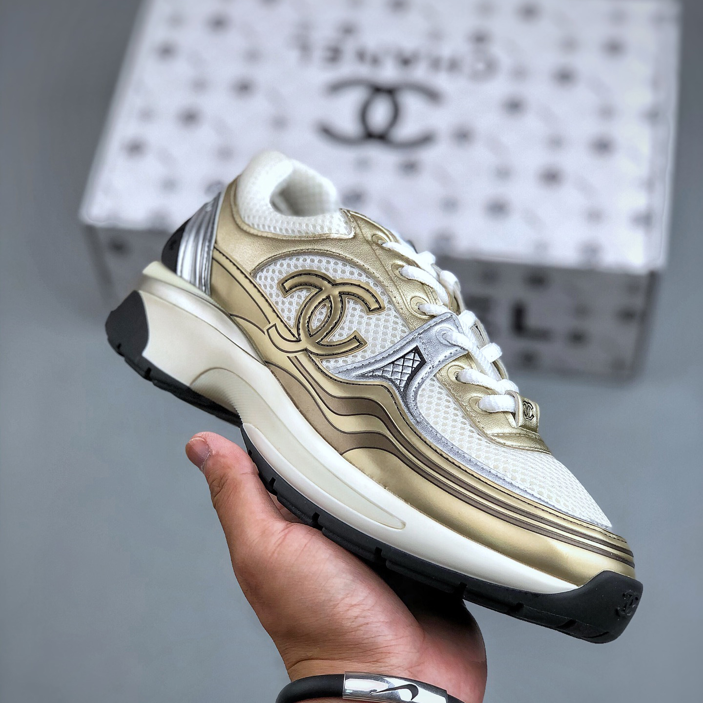NIGO Chanel Women's Four Seasons Solid Color Logo Mesh Leather Low Top Round Toe Lace Up Sneakers Casual Shoes #nigo73862