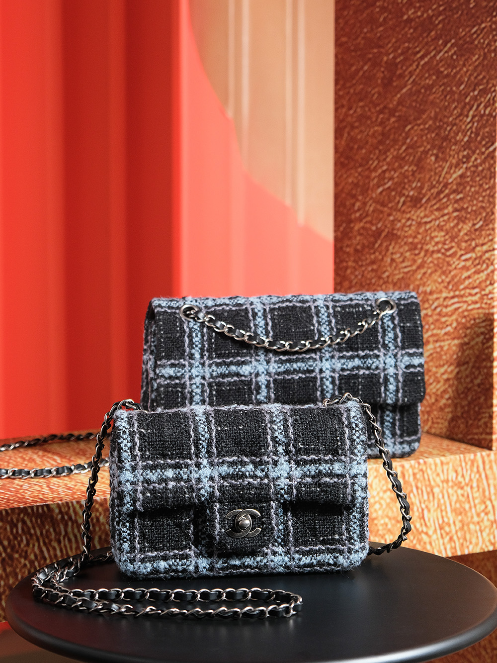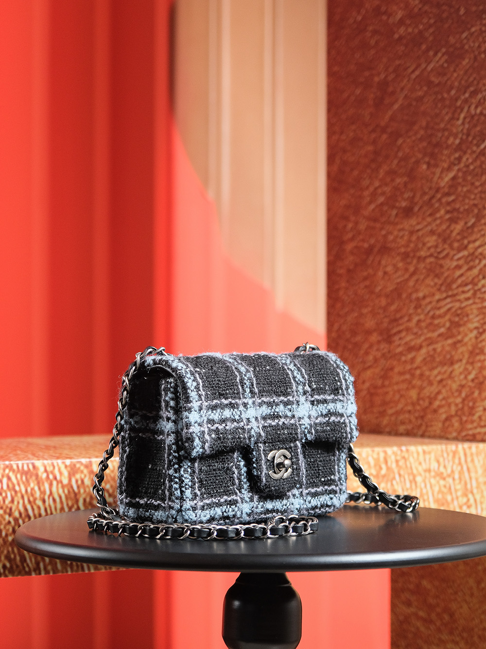 NIGO Chanel Women's Colorblocked Plush Metal Chain Shoulder Strap Wool Tweed Shoulder Crossbody Bag Bags #nigo73959