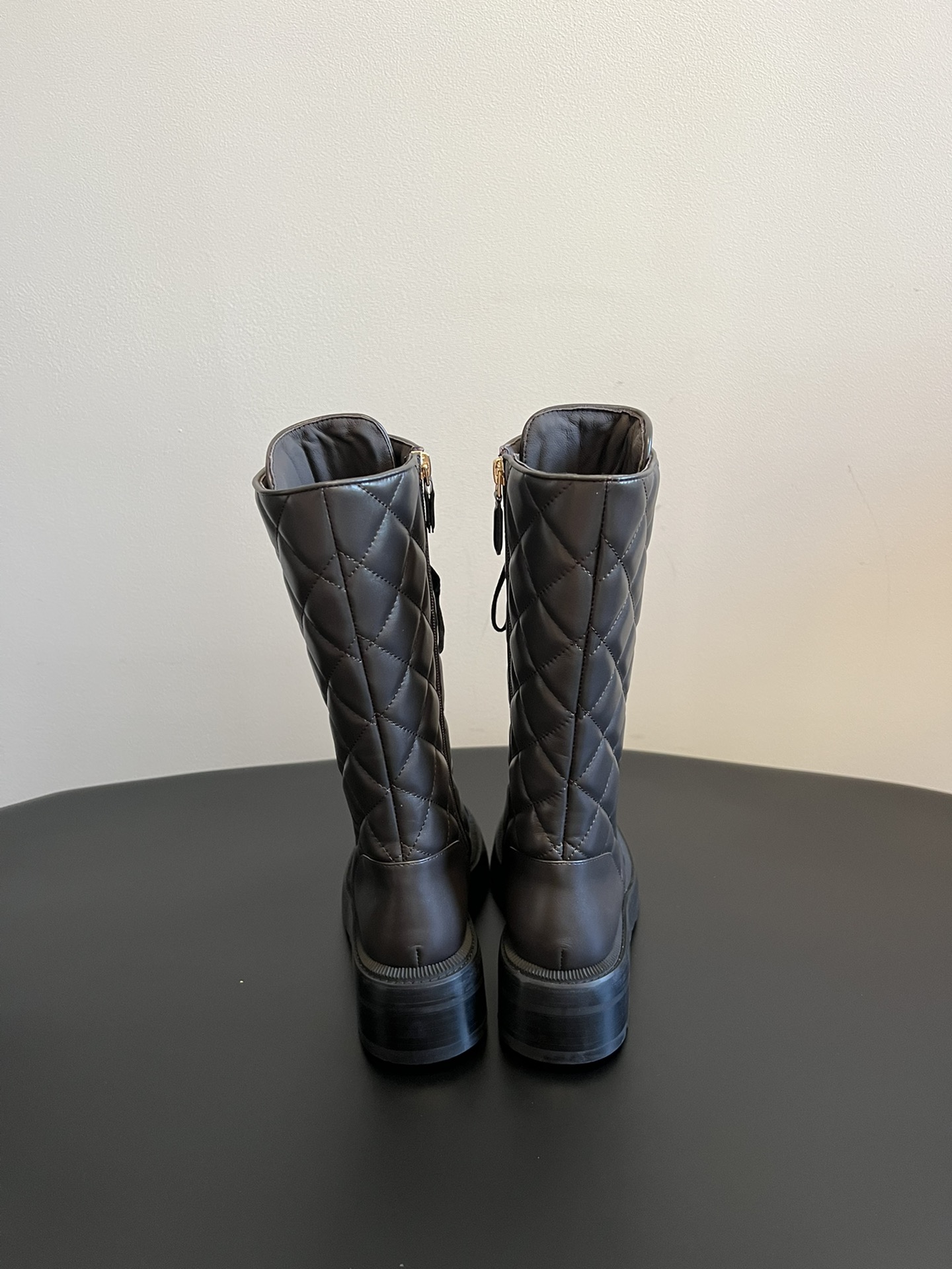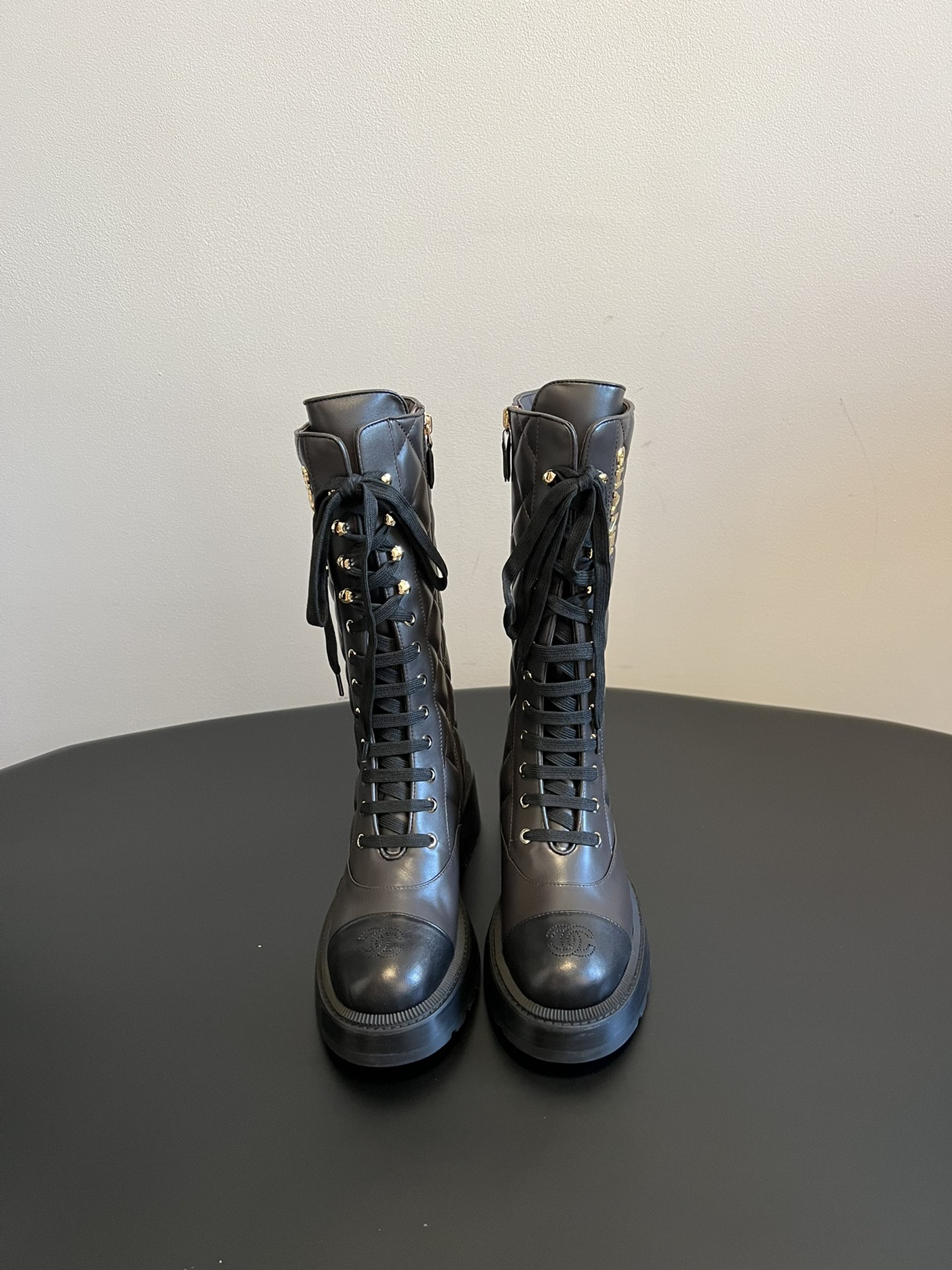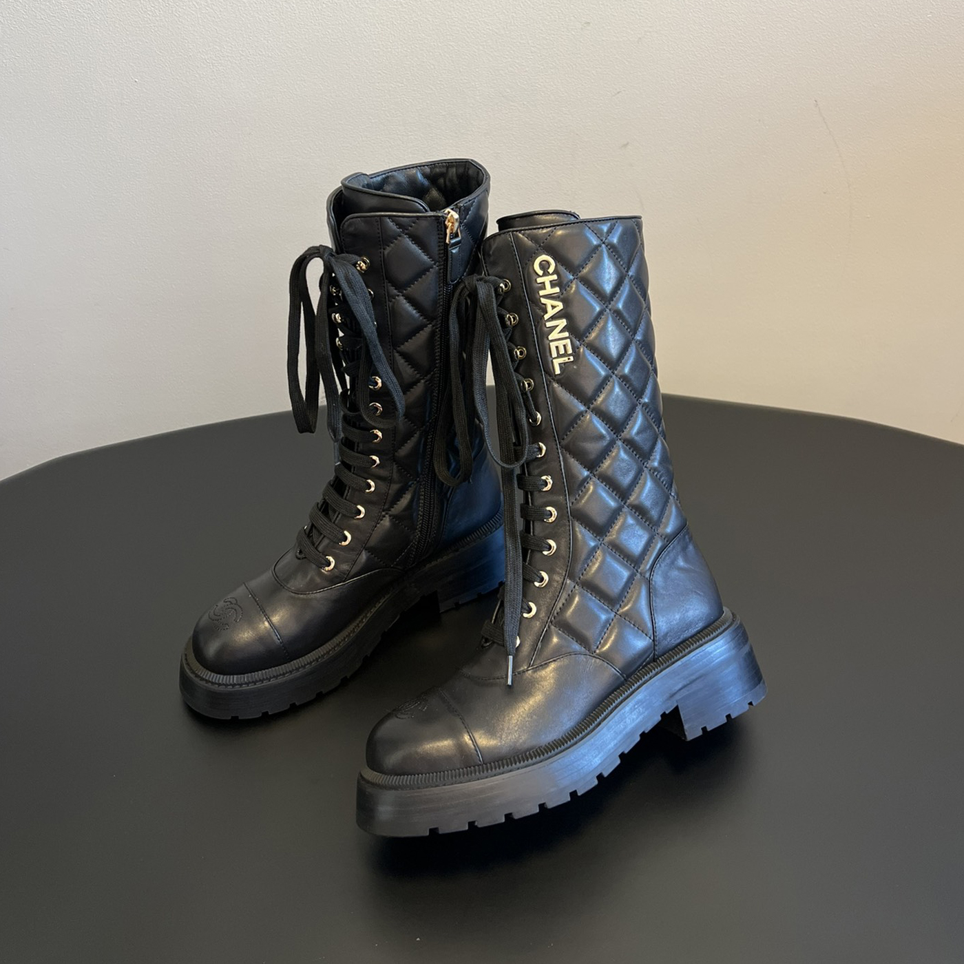 NIGO Chanel Women's Fall And Winter Black Lace-up Mid-calf Thick-soled Knight Boots Shoes #nigo73772