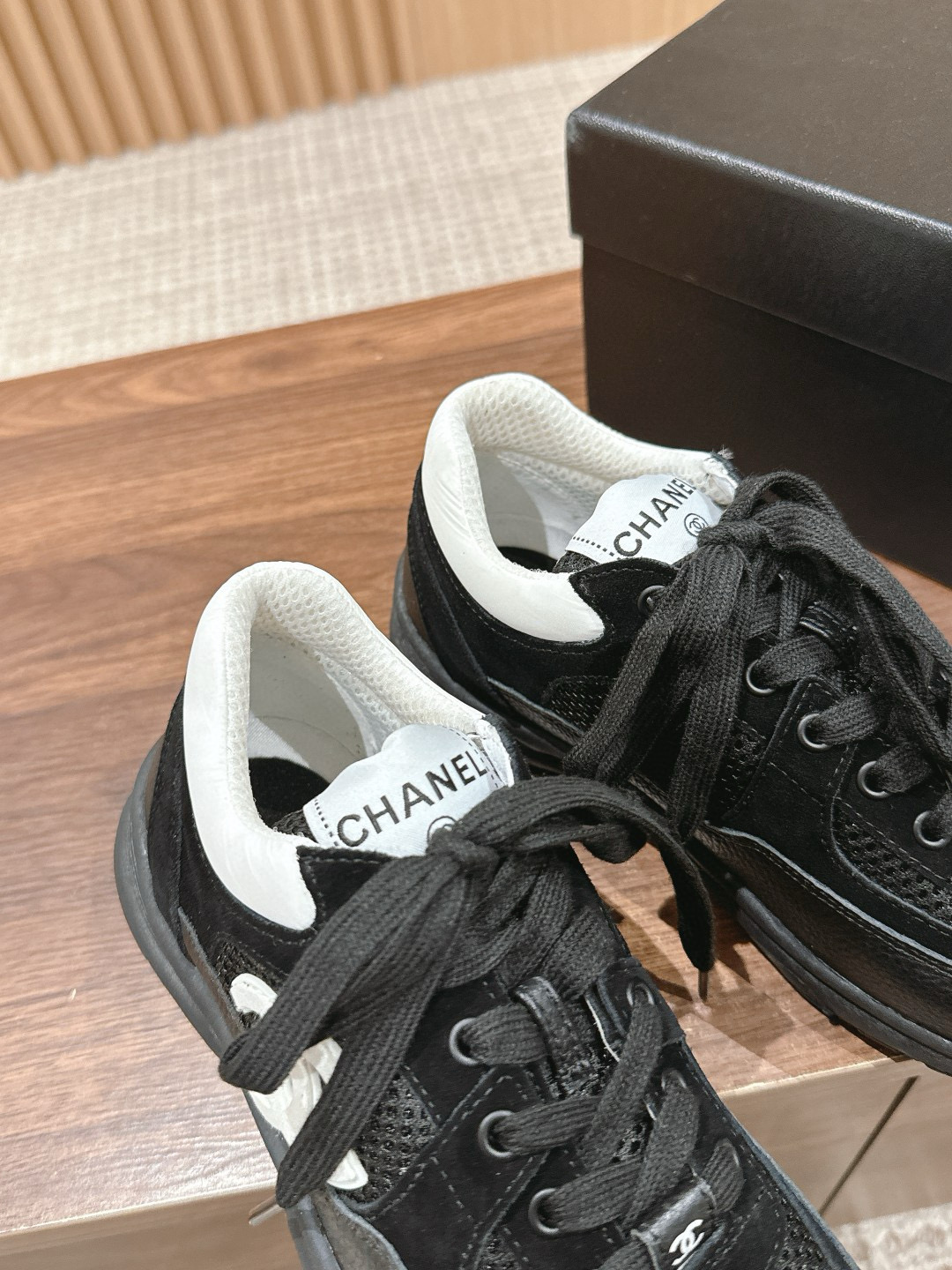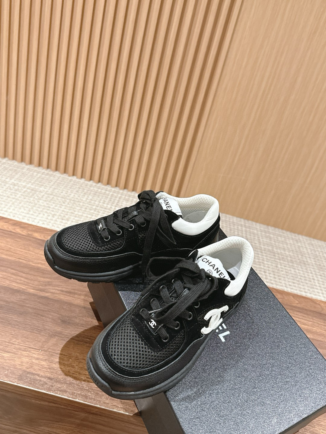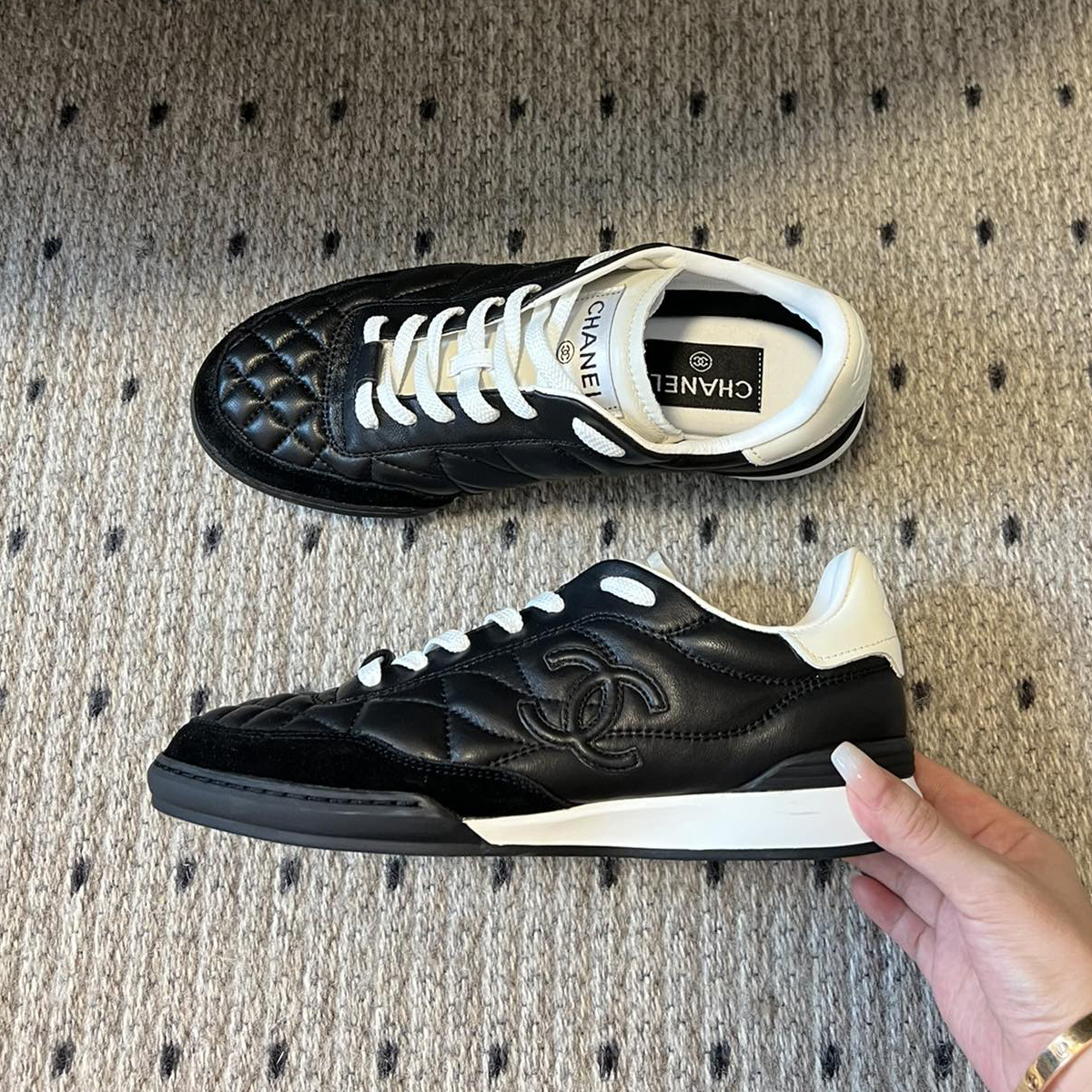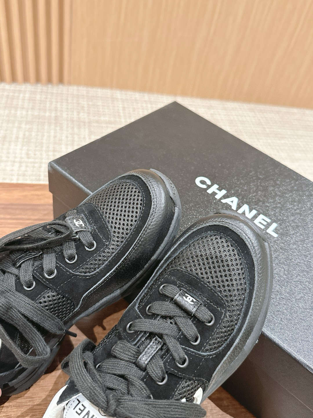 NIGO Chanel Women's Four Seasons Solid Color Logo Mesh Leather Low Top Round Toe Lace Up Sneakers Casual Shoes #nigo71629