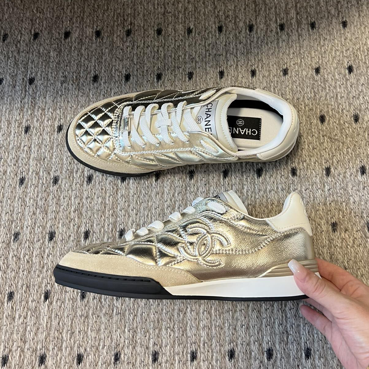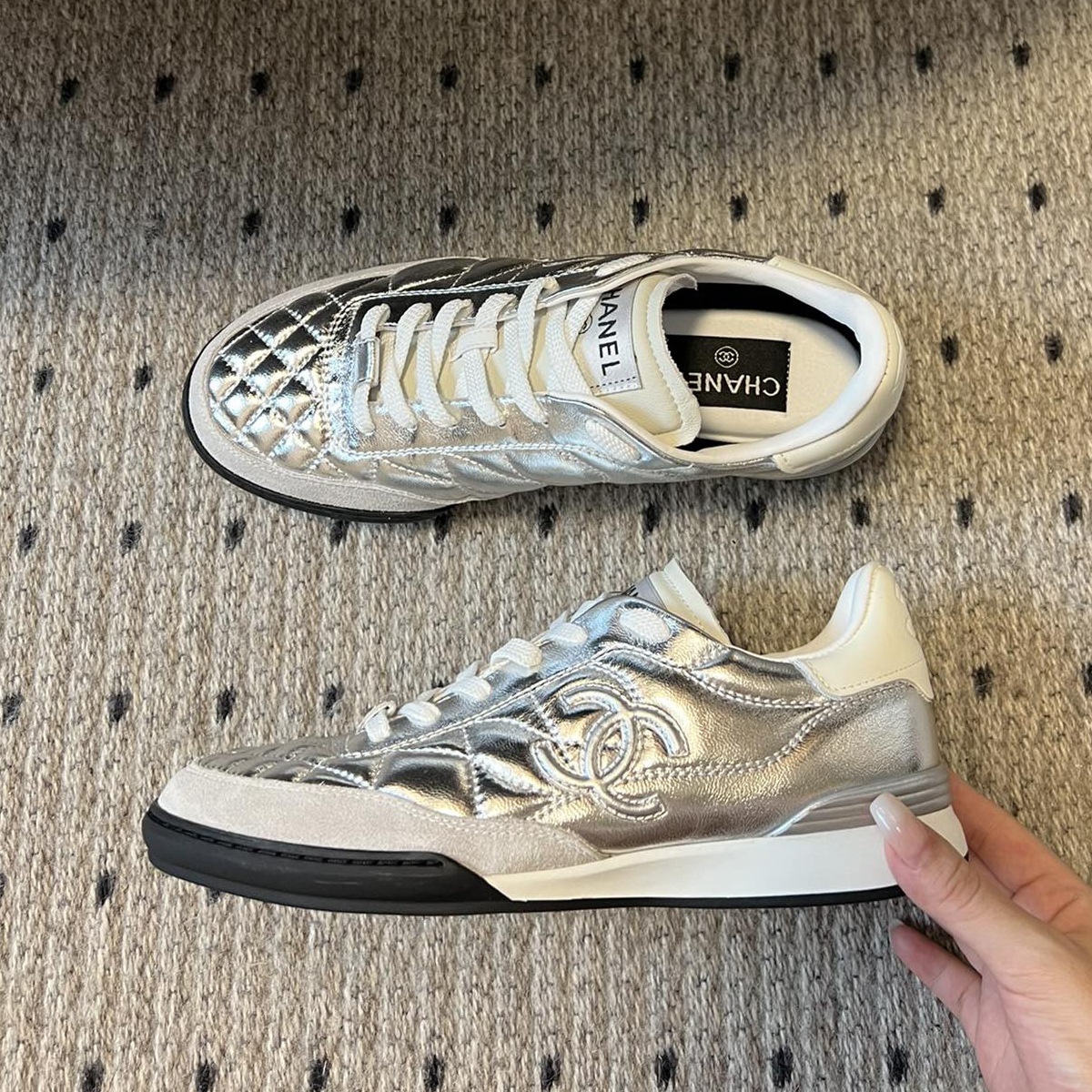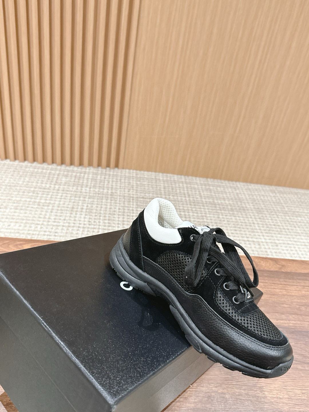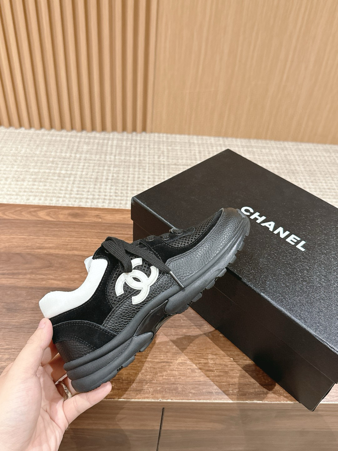 NIGO Chanel Women's Four Seasons Solid Color Logo Mesh Leather Low Top Round Toe Lace Up Sneakers Casual Shoes #nigo71629