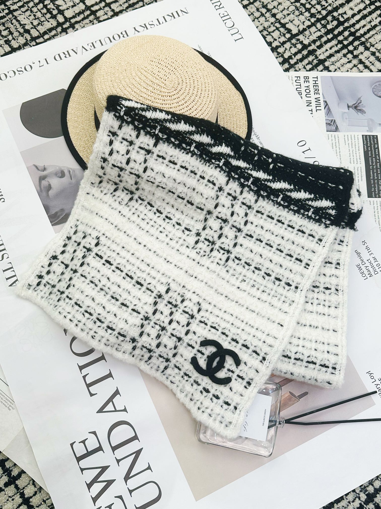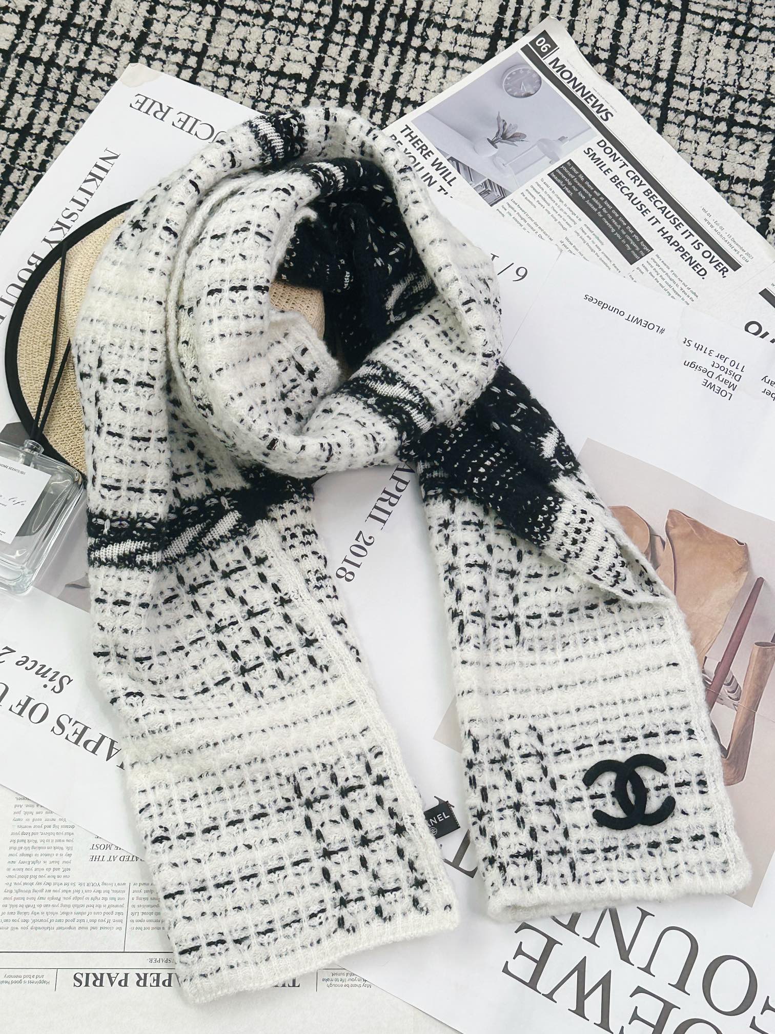 NIGO Chanel Women's Winter Black and White Wool Knitted Scarf #nigo73138