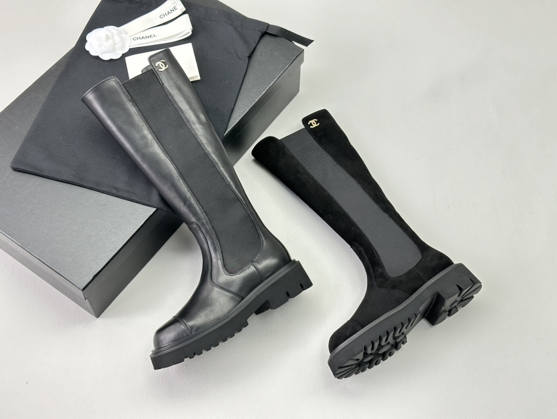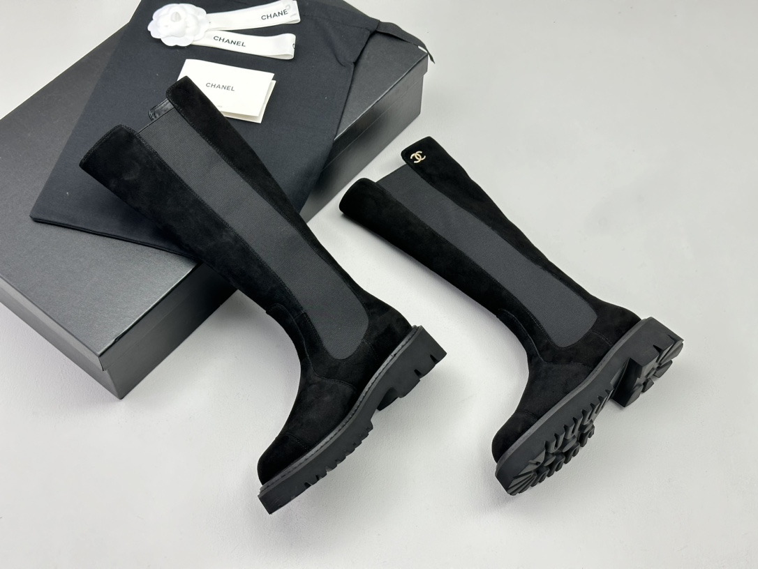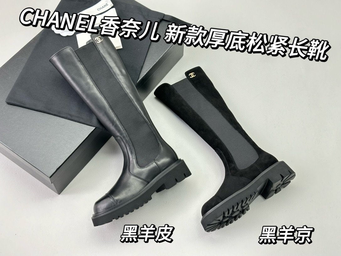 NIGO Chanel Women's Fall and Winter Black Calfskin Long Knight Boots Shoes #nigo73157