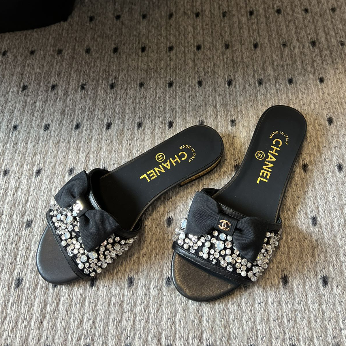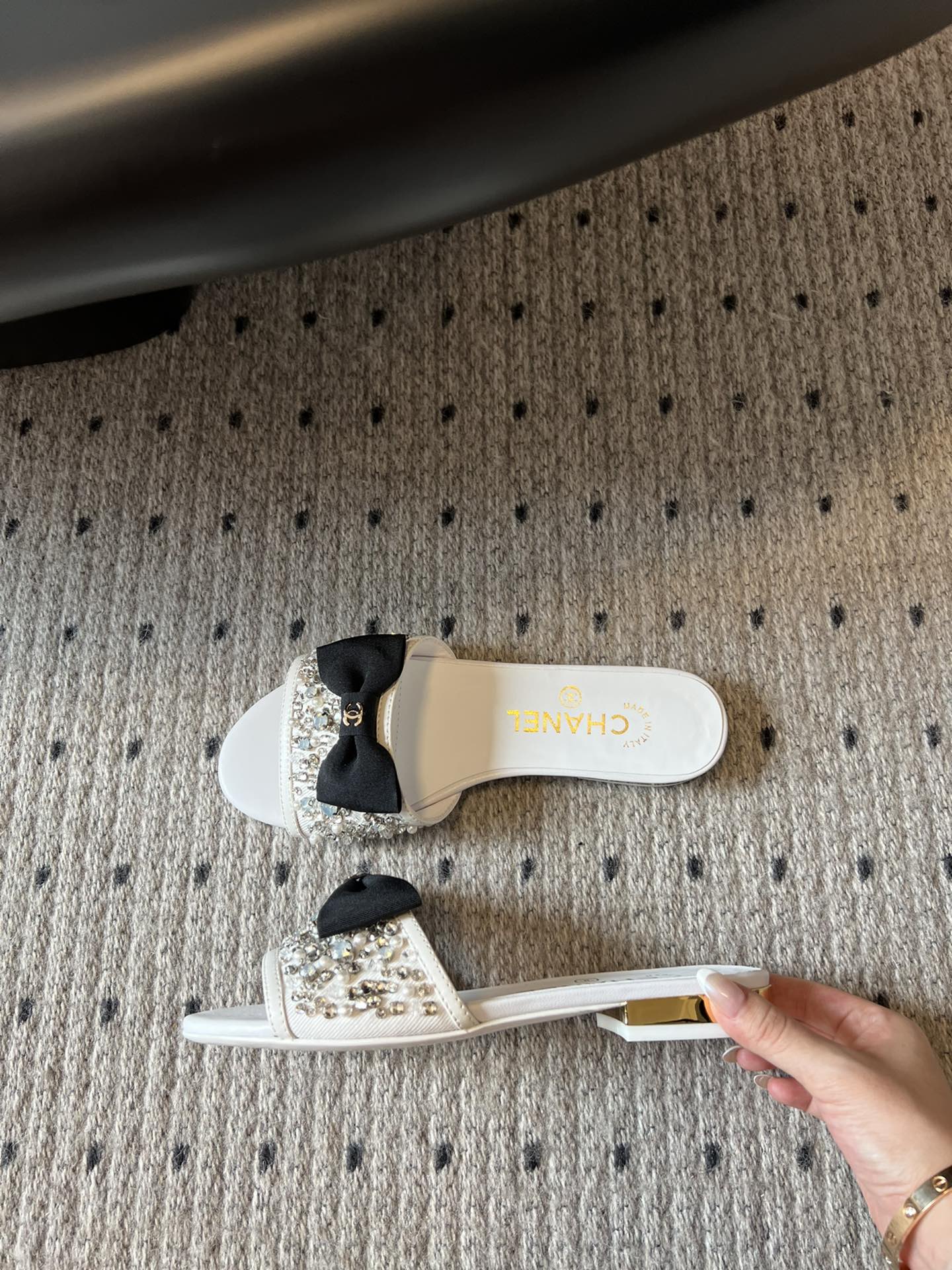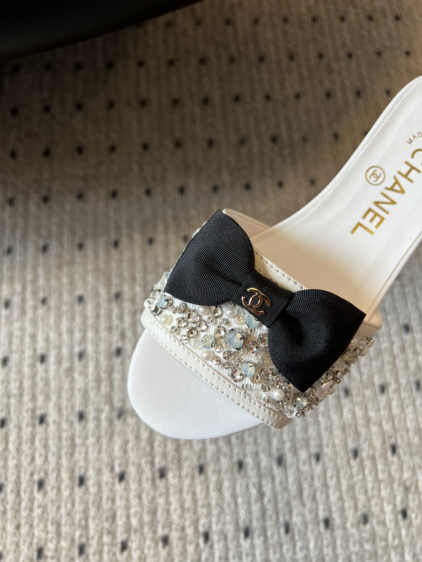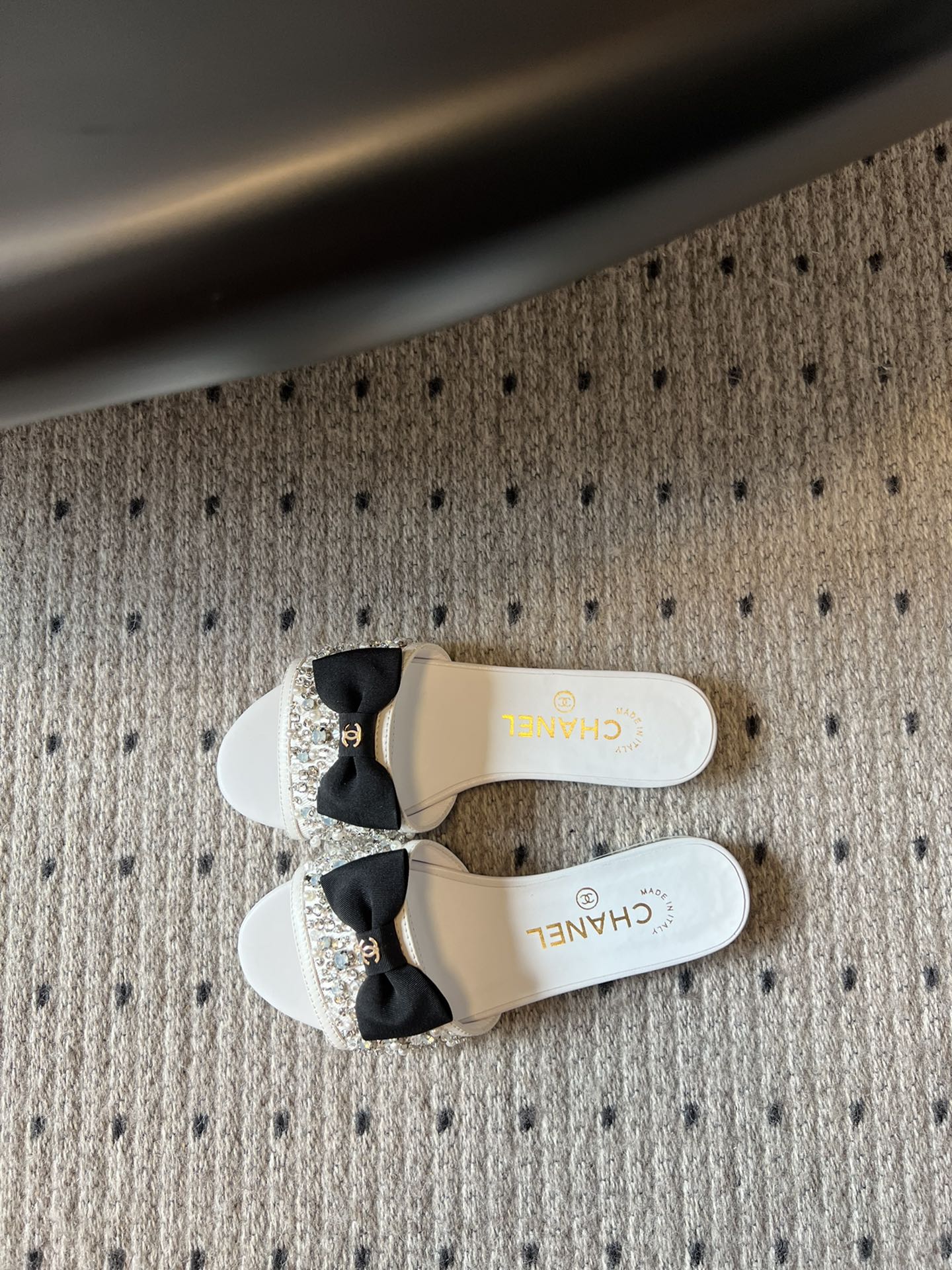 NIGO Chanel Women's Summer Bow Pearl Embellished Leather Sandals Slippers Shoes #nigo72352