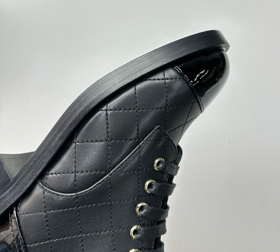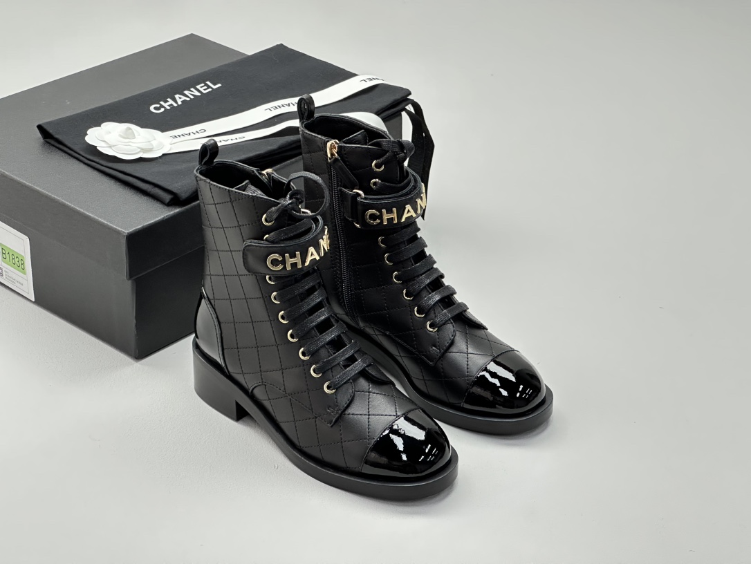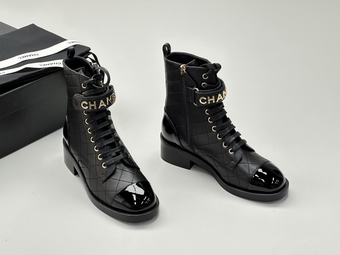NIGO Chanel Women's Black Round Toe Lace Up Sheepskin Side Zipper Martin Boots Shoes #nigo72547
