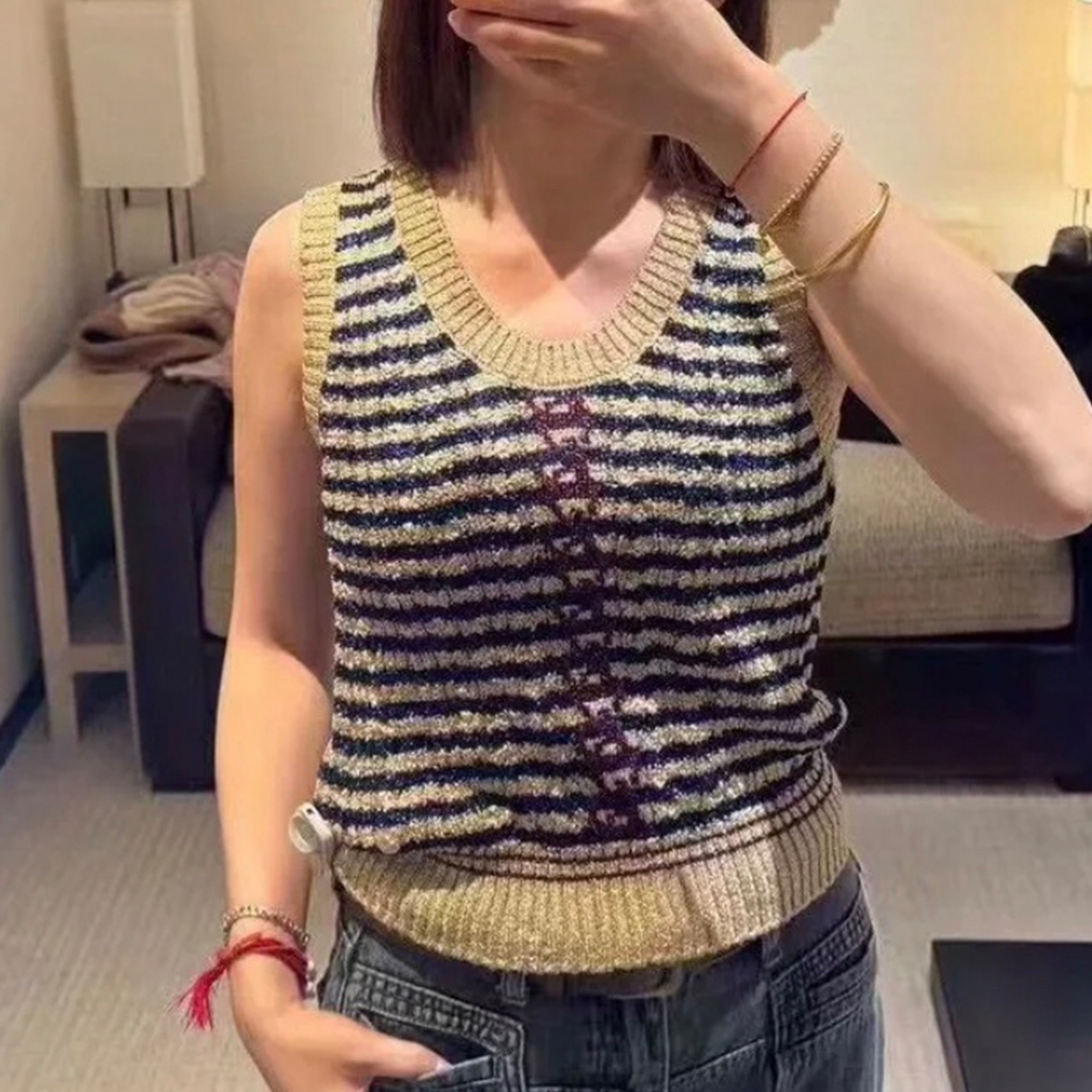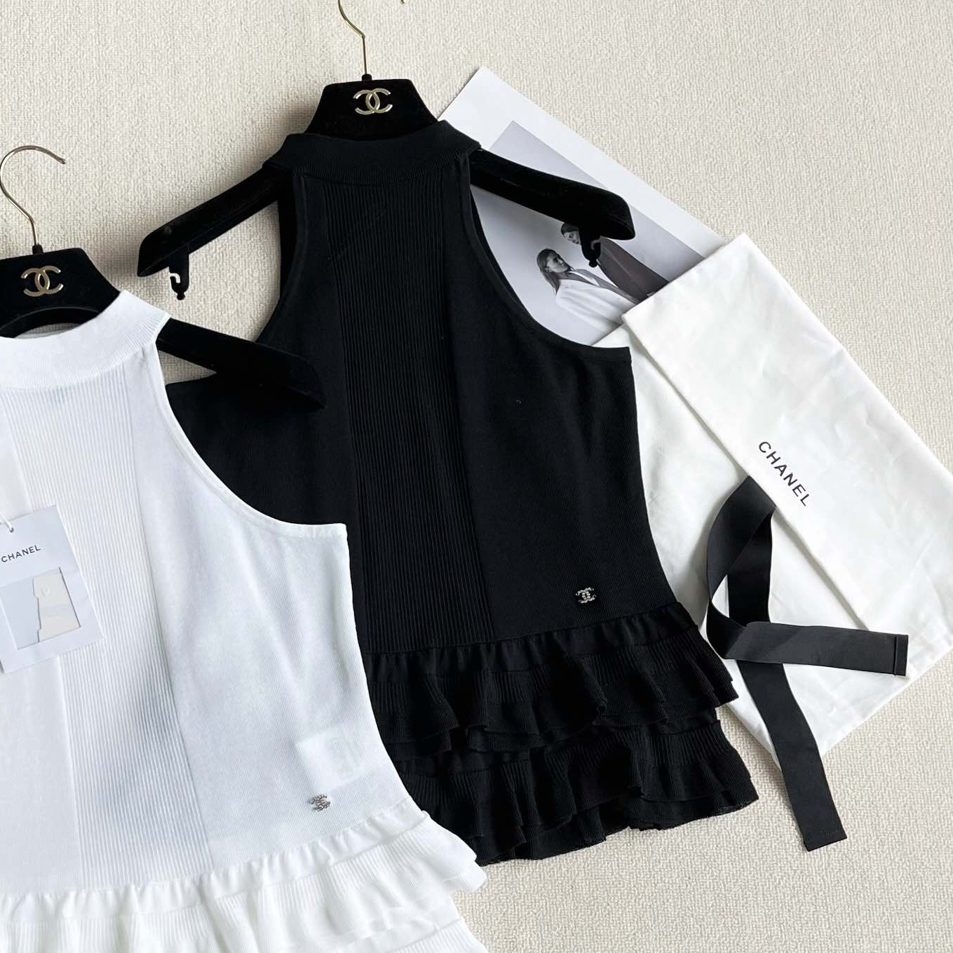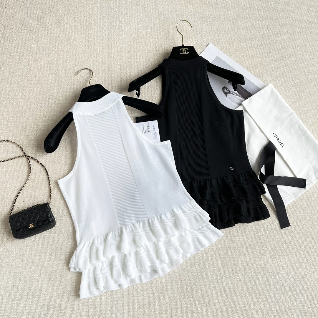 NIGO Chanel Women's Summer Solid Color Cotton Knit Ruffle Sleeveless Tank Top Vest #nigo99911