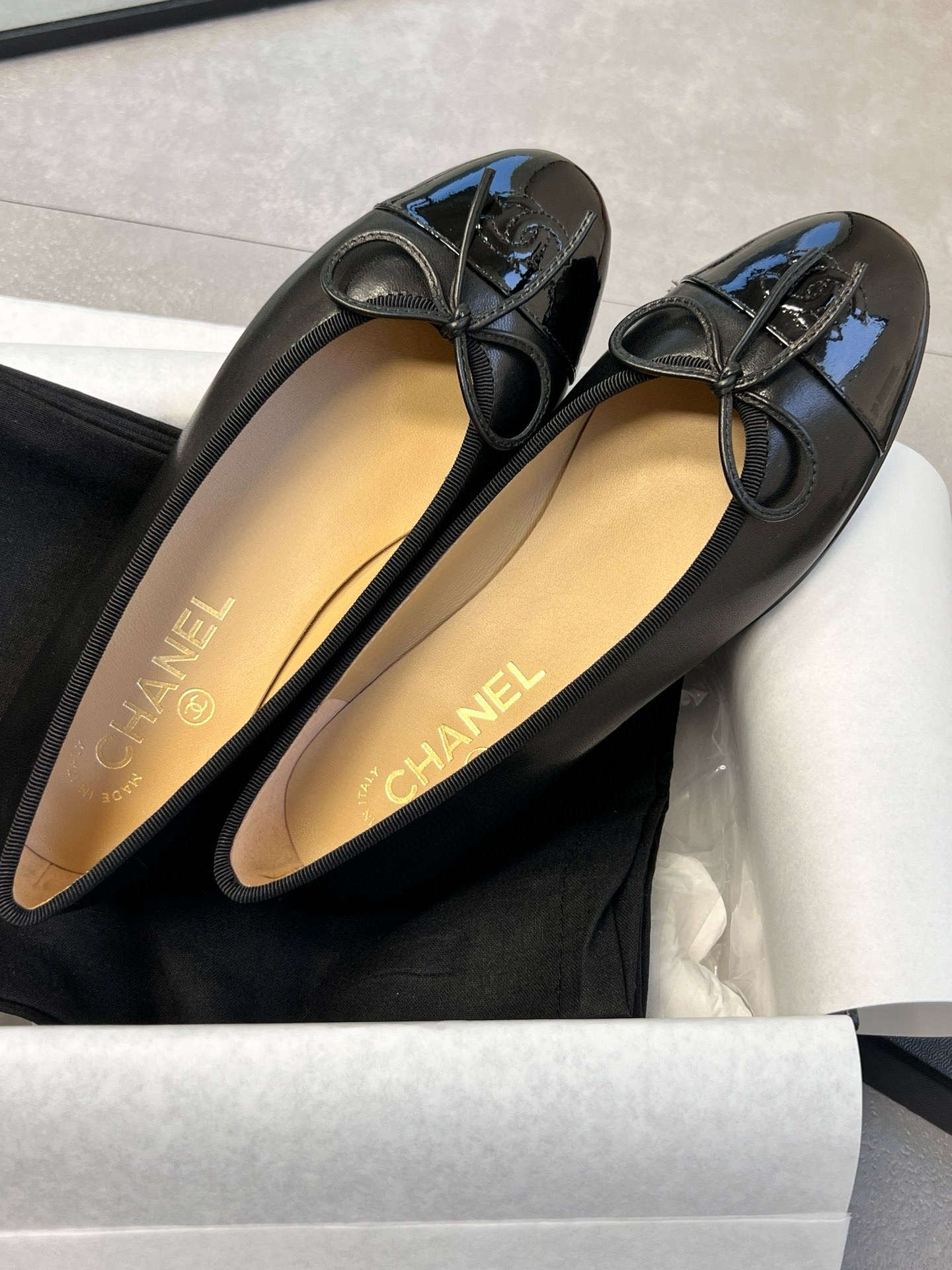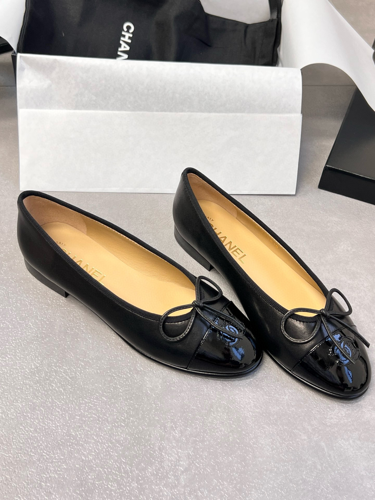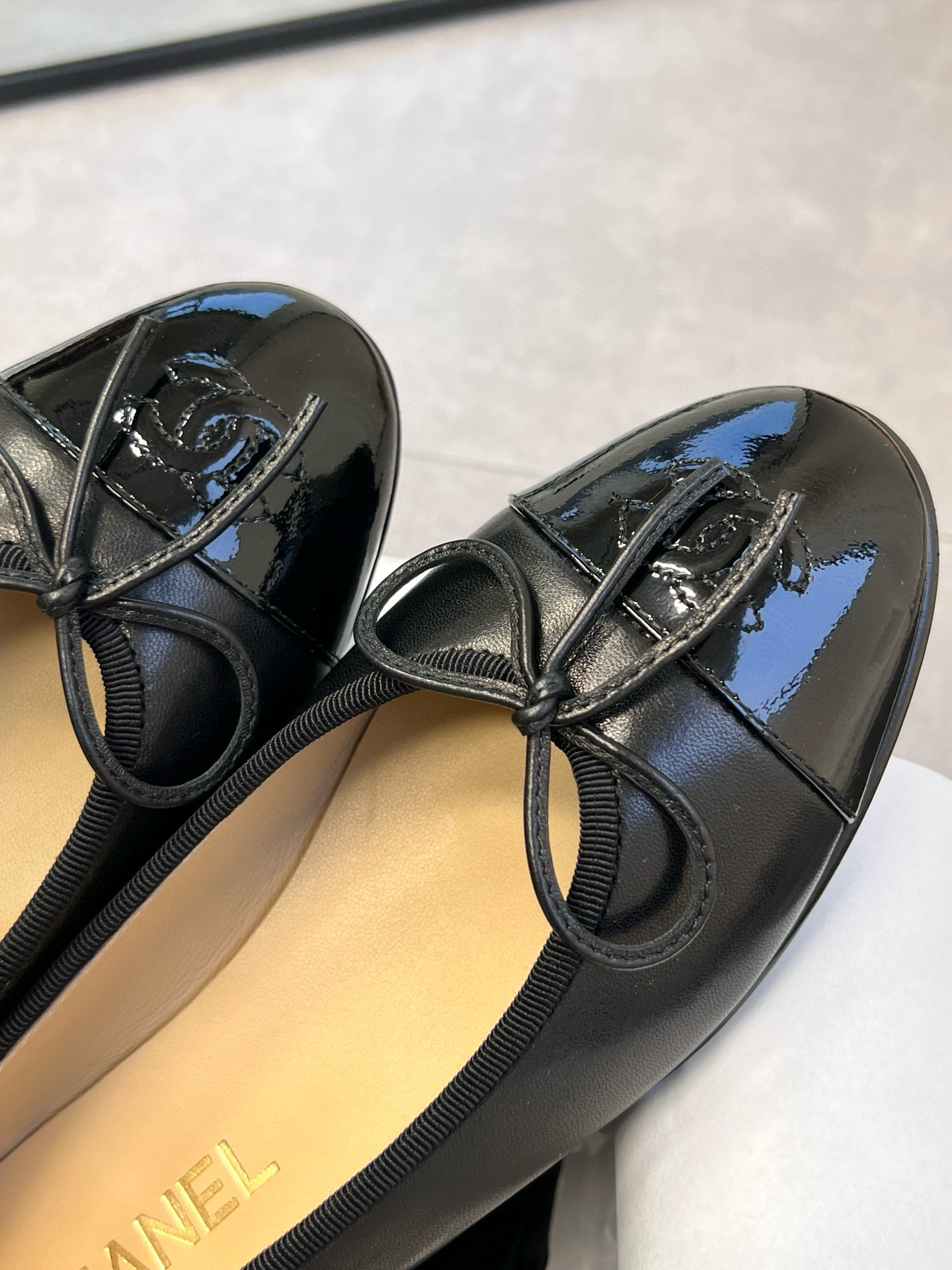 NIGO Chanel Women's Black Leather Bow Classic Ballet Shoes #nigo72139