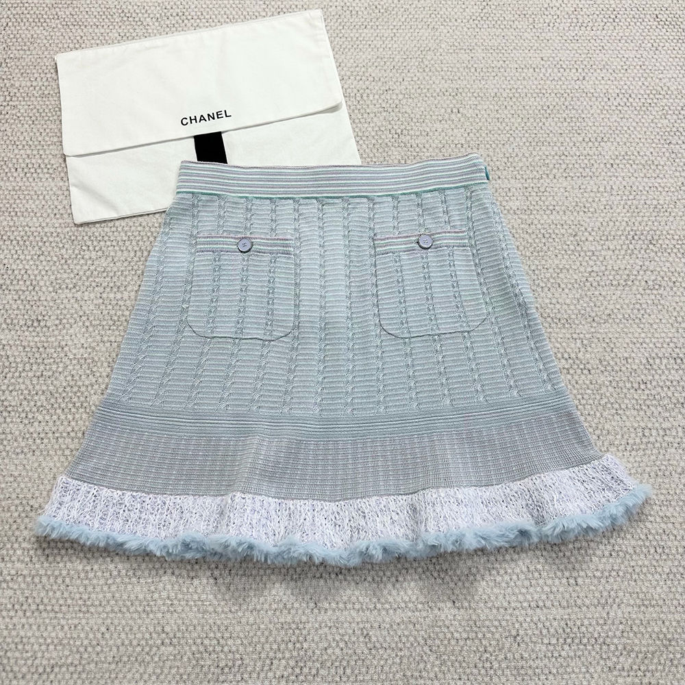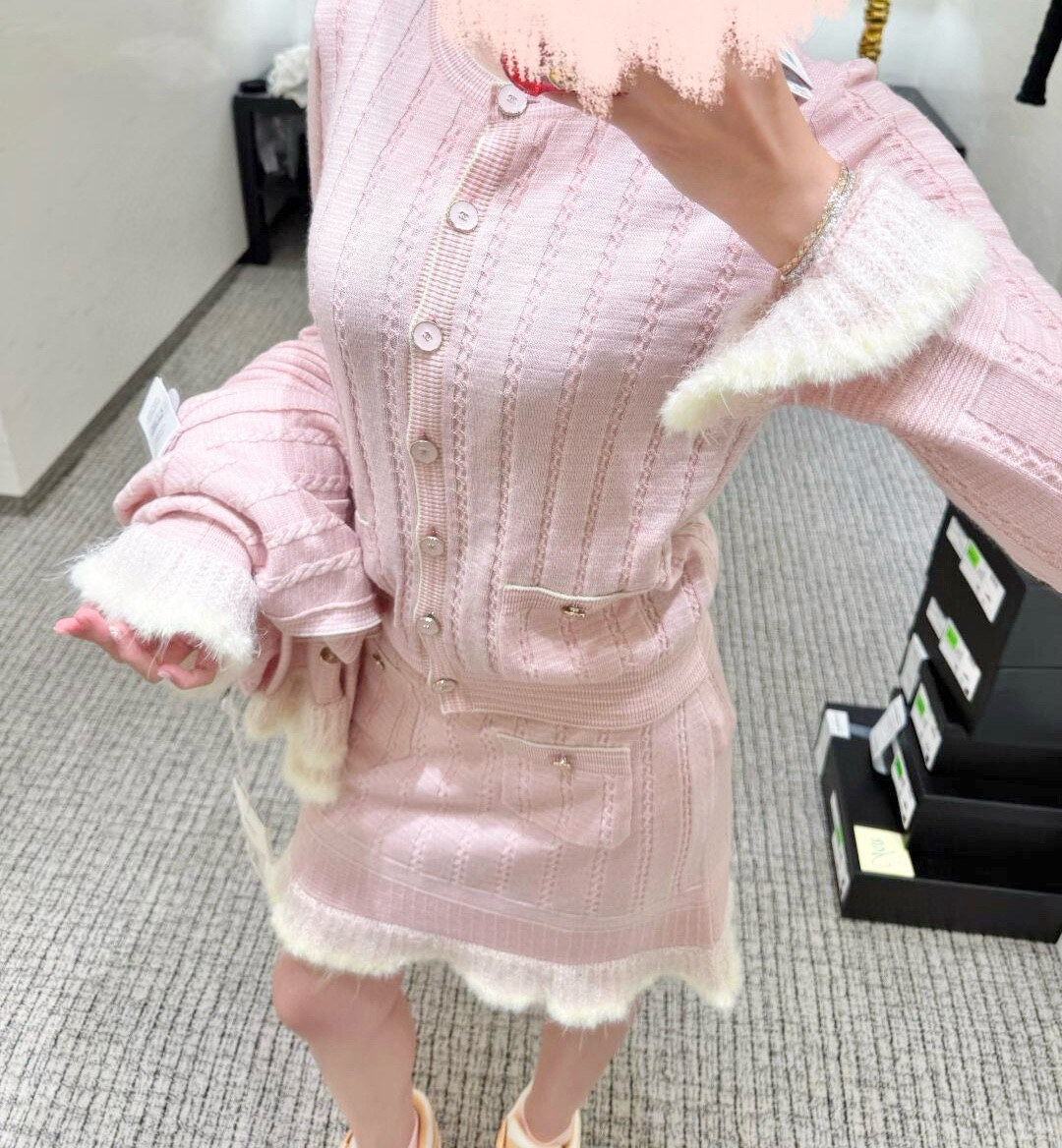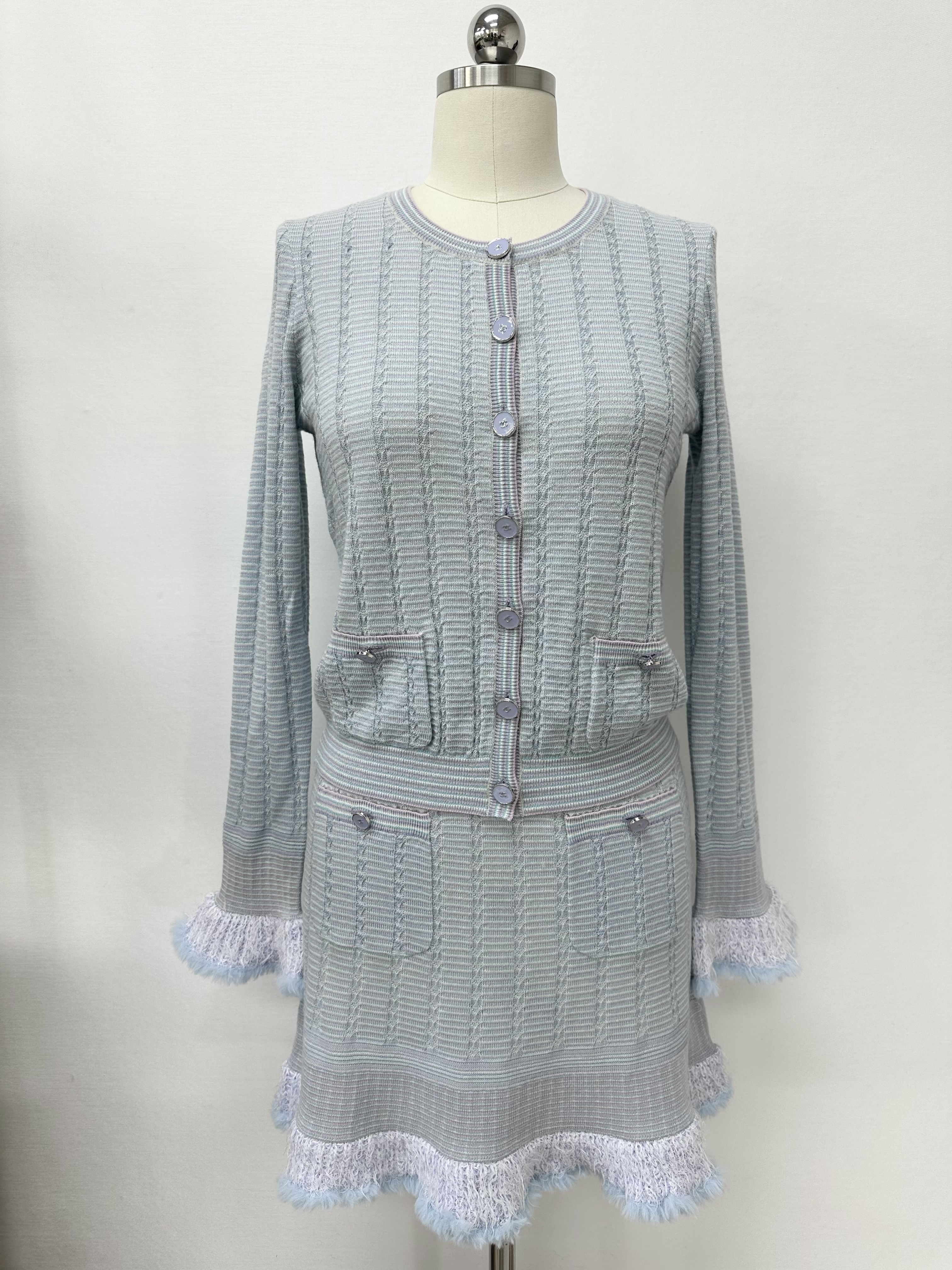 NIGO Chanel Cardigan Short Skirt Cashmere Cotton Feathers Light Blue Purple Pink #nigo334186